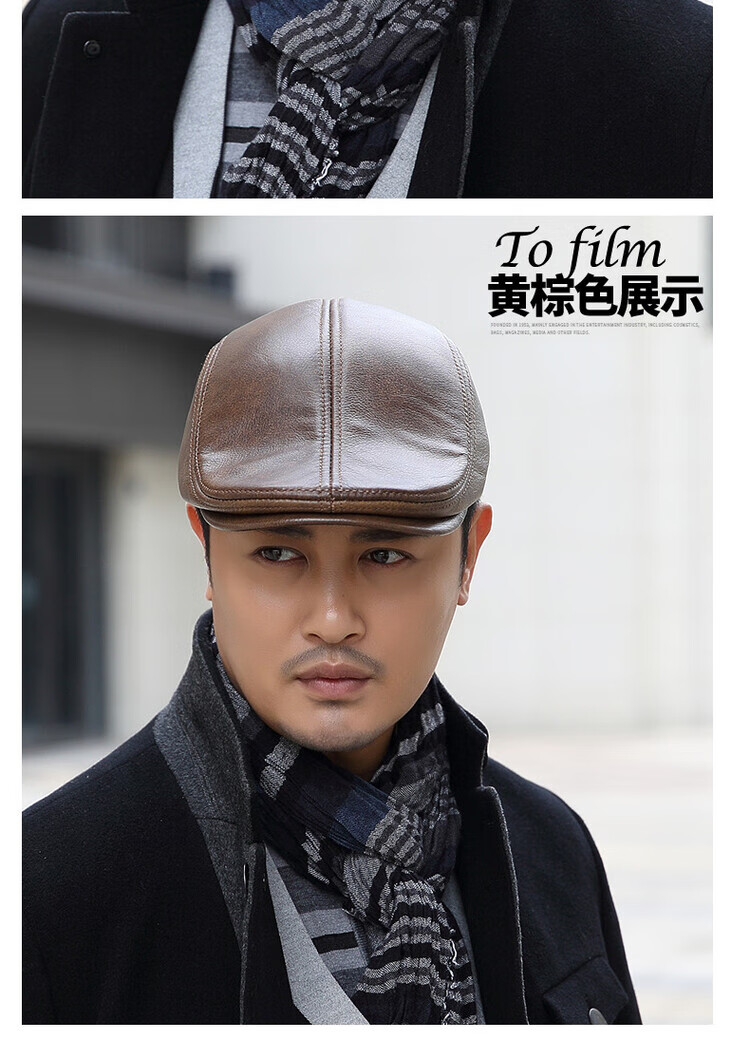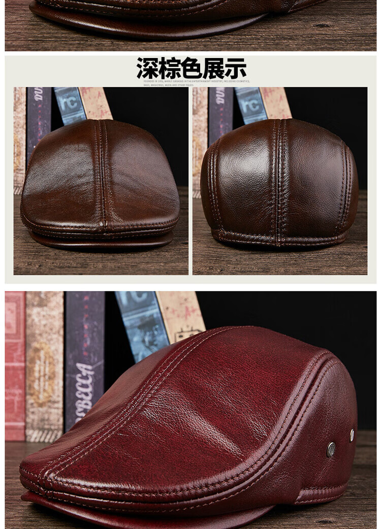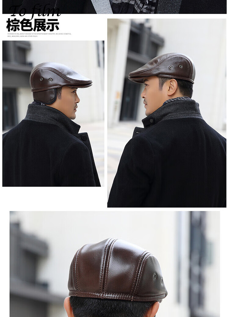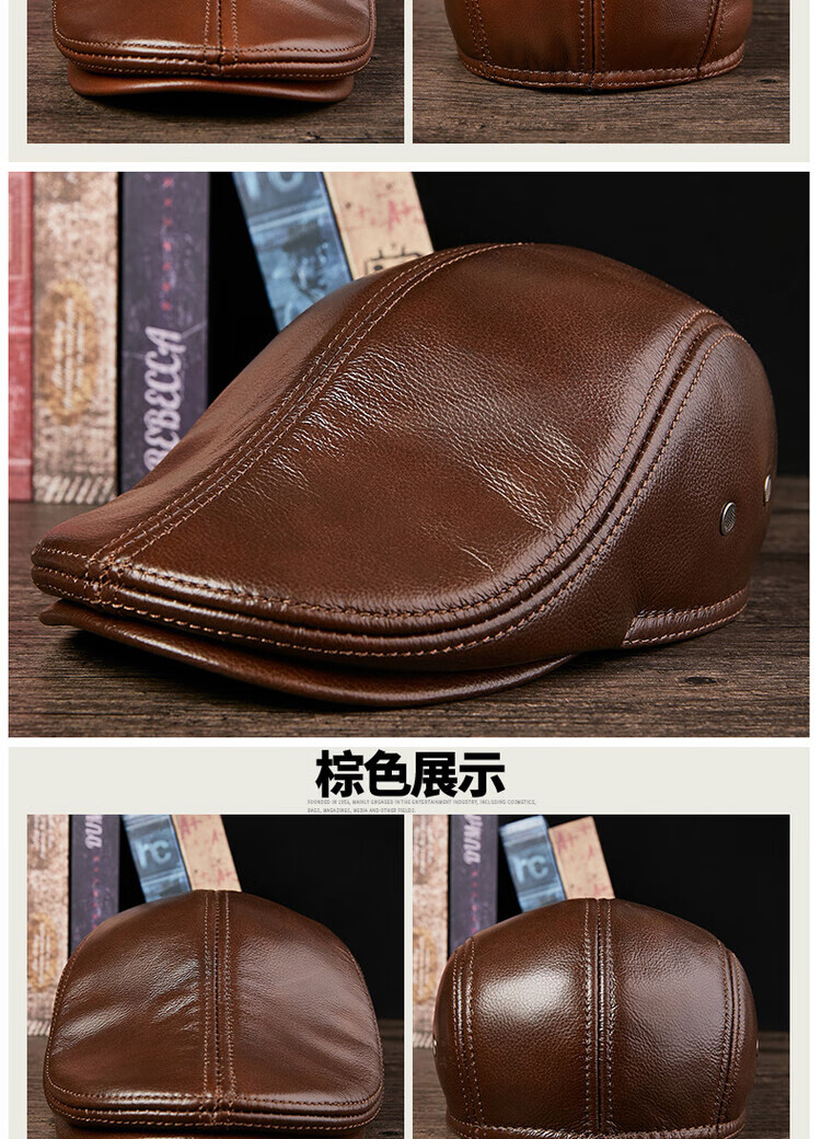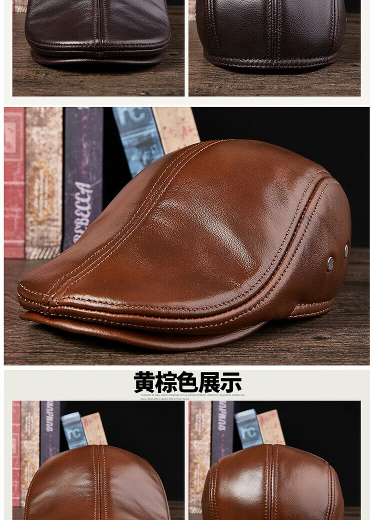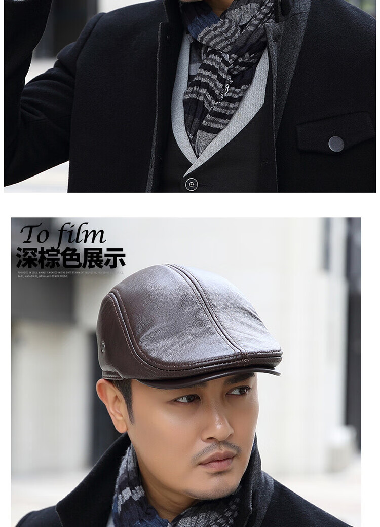 Xue Che Autumn and Winter Genuine Leather Duck Hat for Middle-aged and Elderly Men Fashionable Warmth forward Cowhide Hat Thickened Beret British Black First Layer Cowhide M (53-54cm)