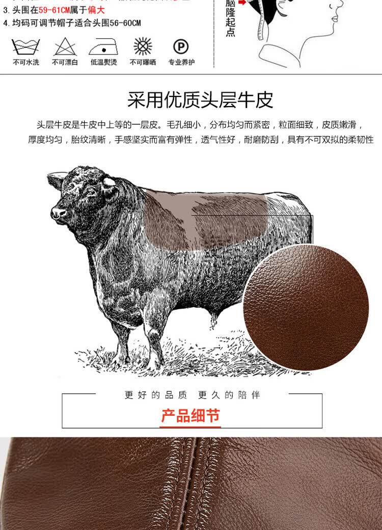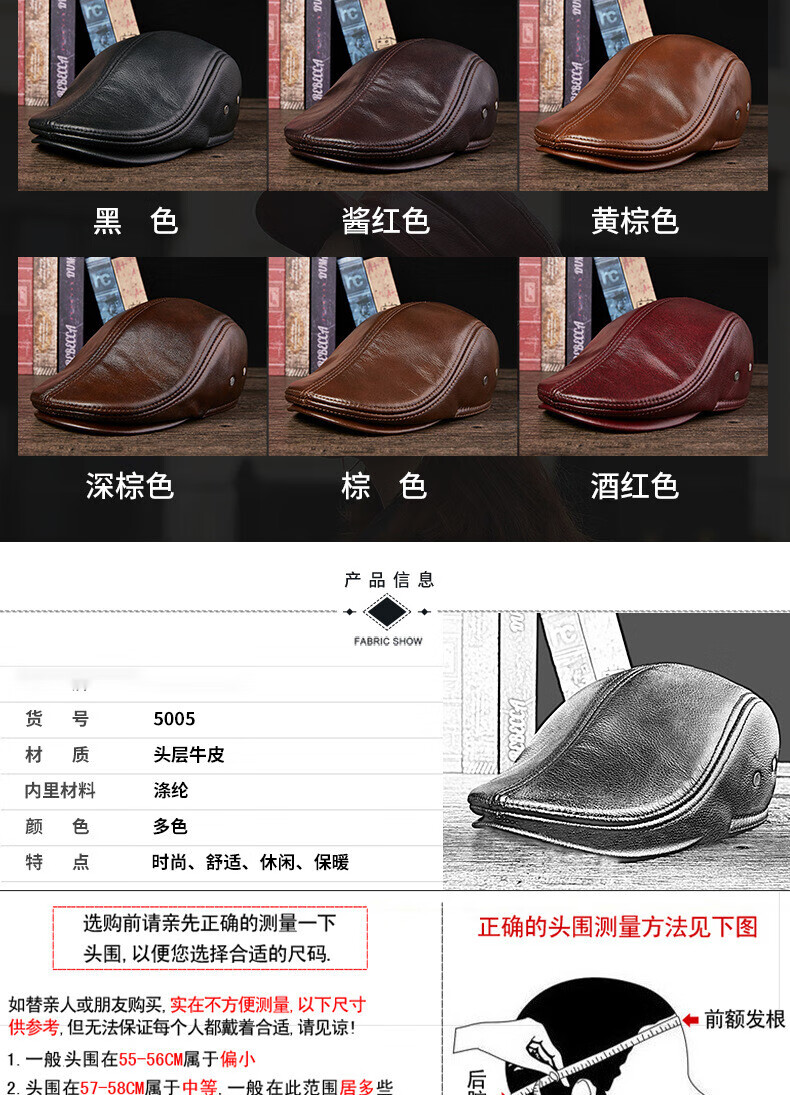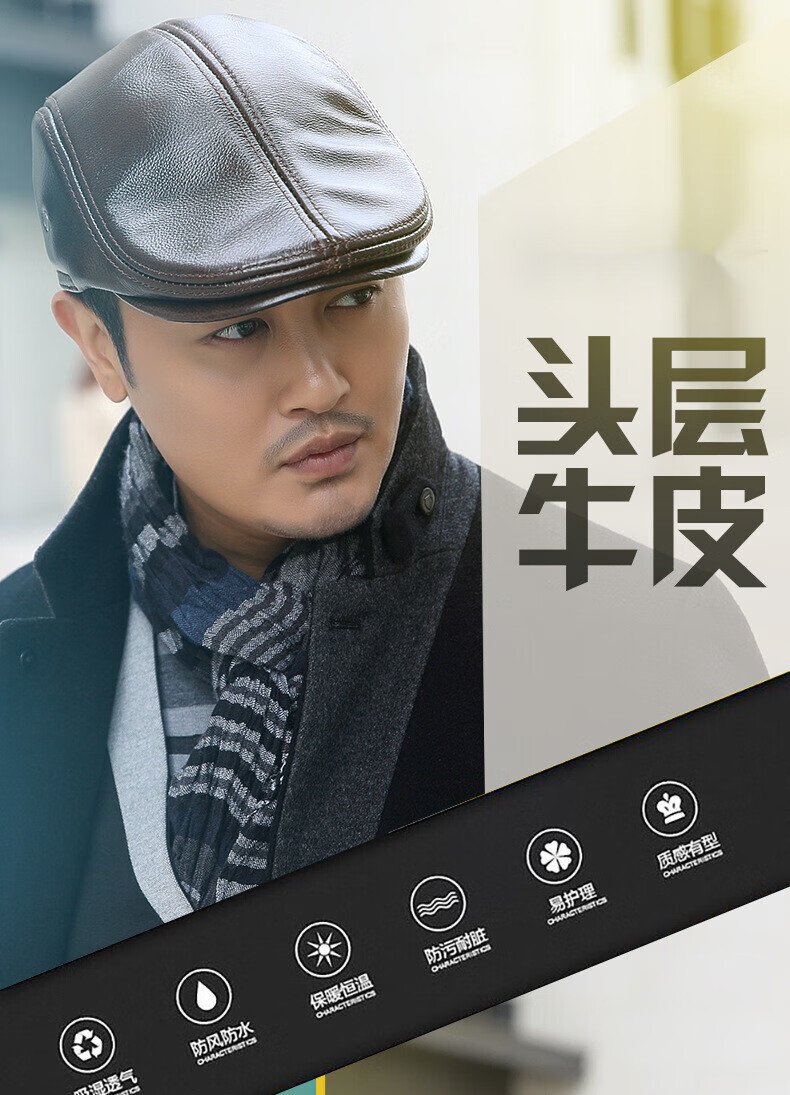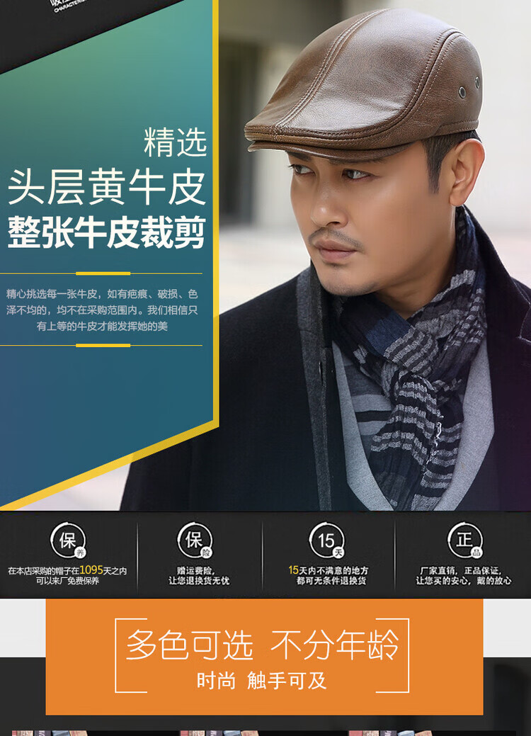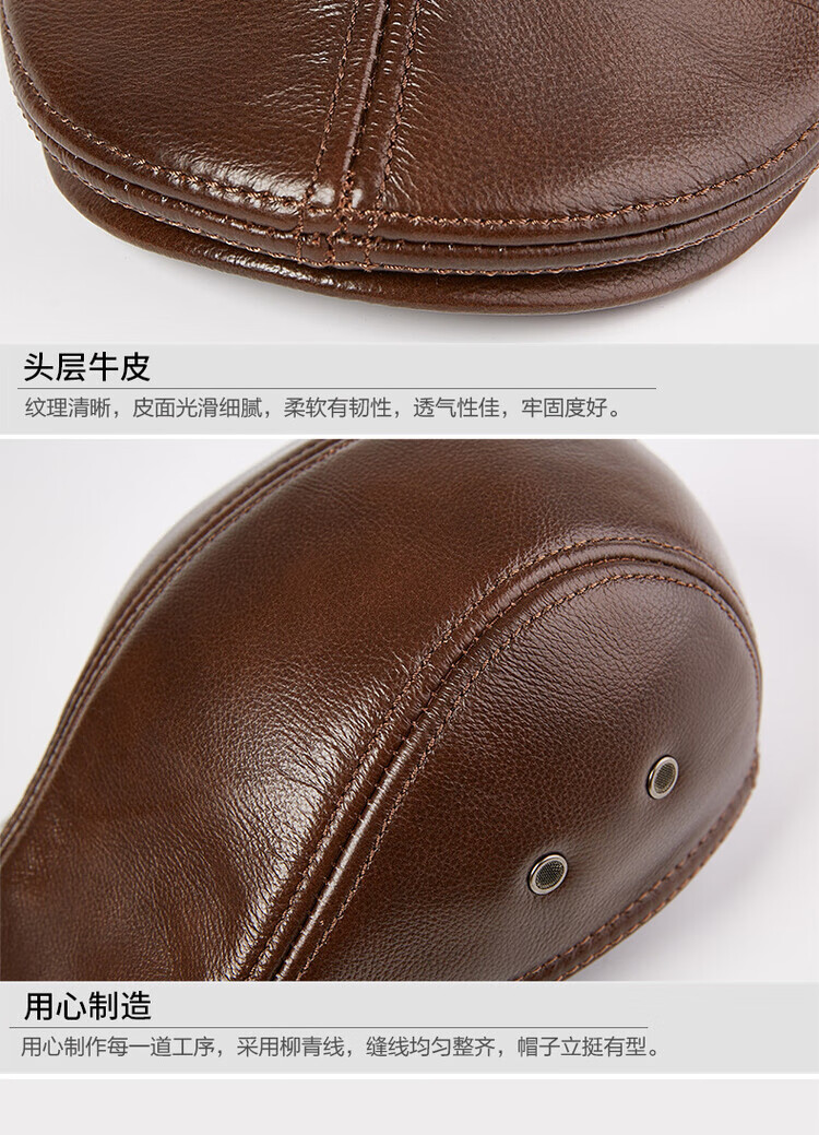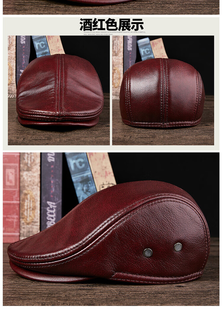 Xue Che Autumn and Winter Genuine Leather Duck Hat for Middle-aged and Elderly Men Fashionable Warmth forward Cowhide Hat Thickened Beret British Black First Layer Cowhide M (53-54cm)