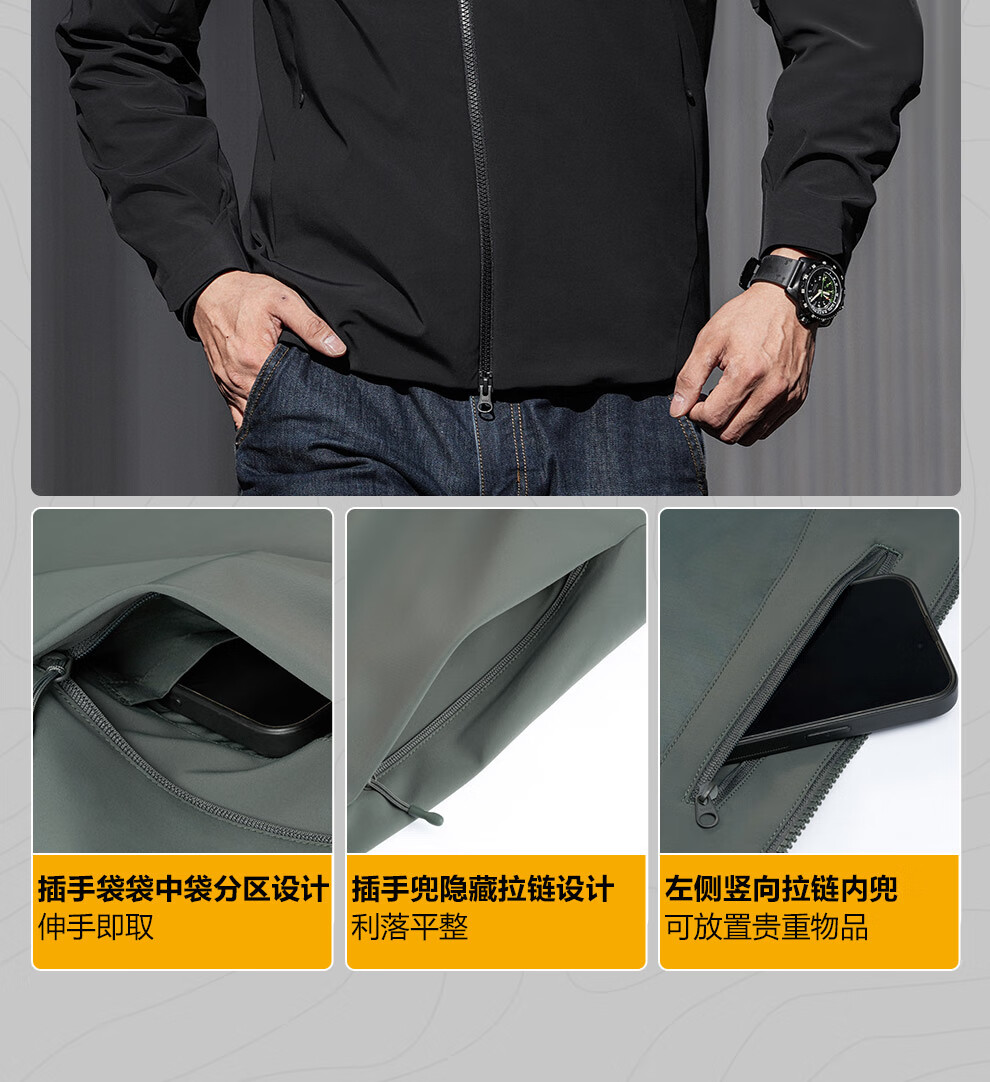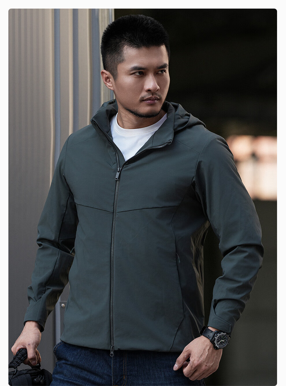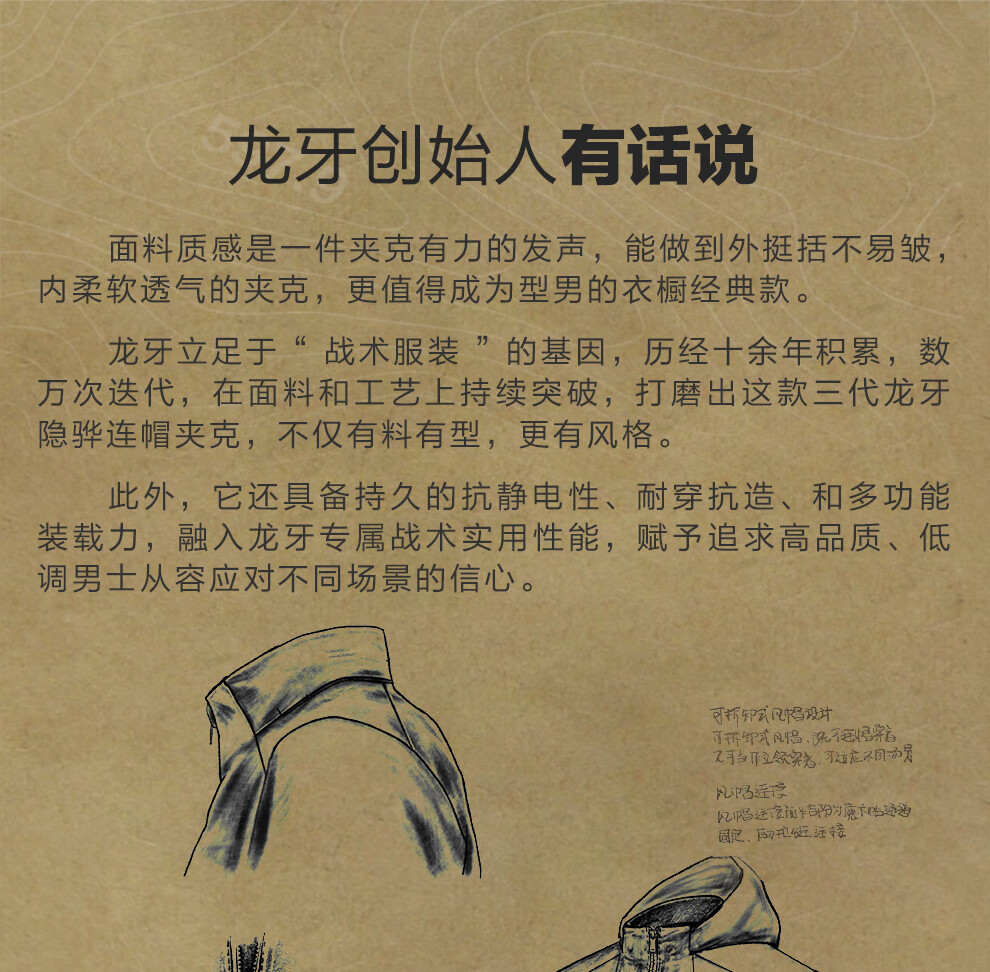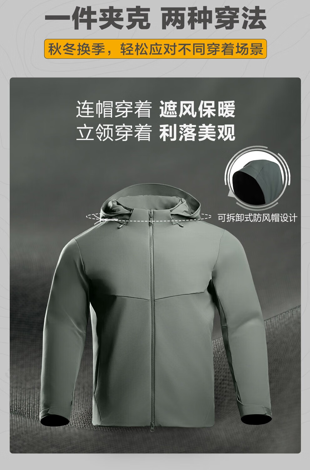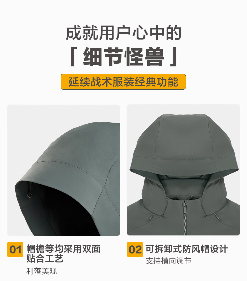 Dragon Tooth third generation Dragon Tooth Hidden Hua hooded jacket for men, comfortable and versatile casual jacket for business commuting, dark gray green 170/92A, height 168-173, weight 125-140