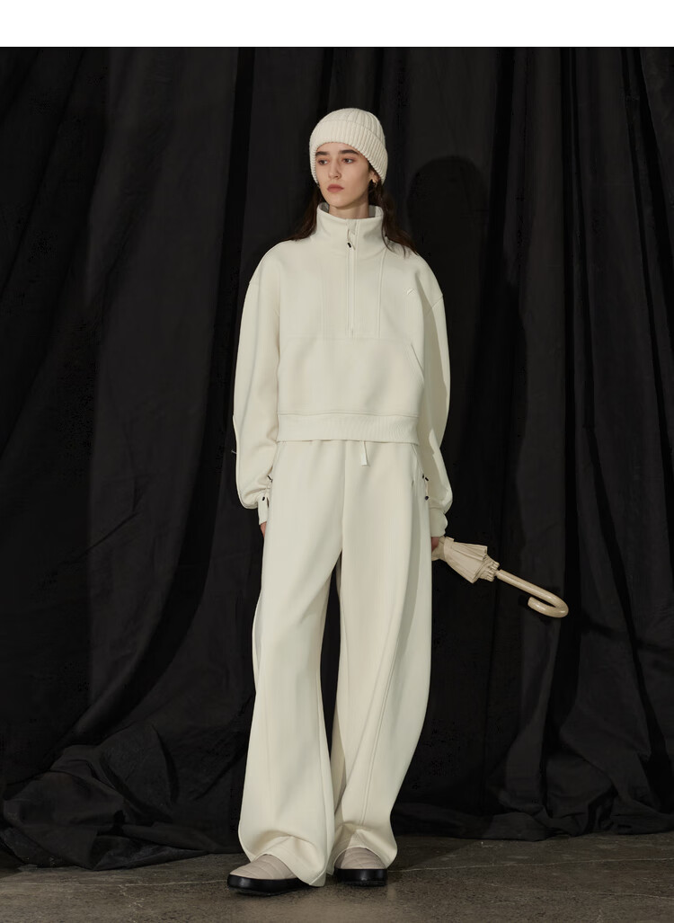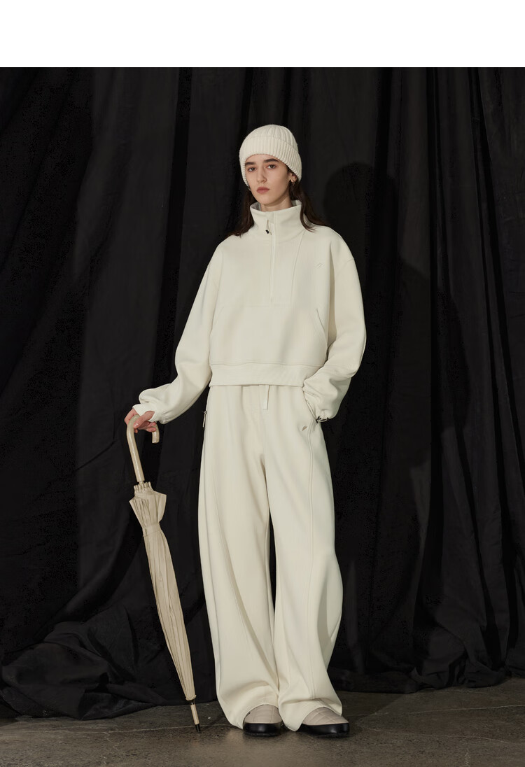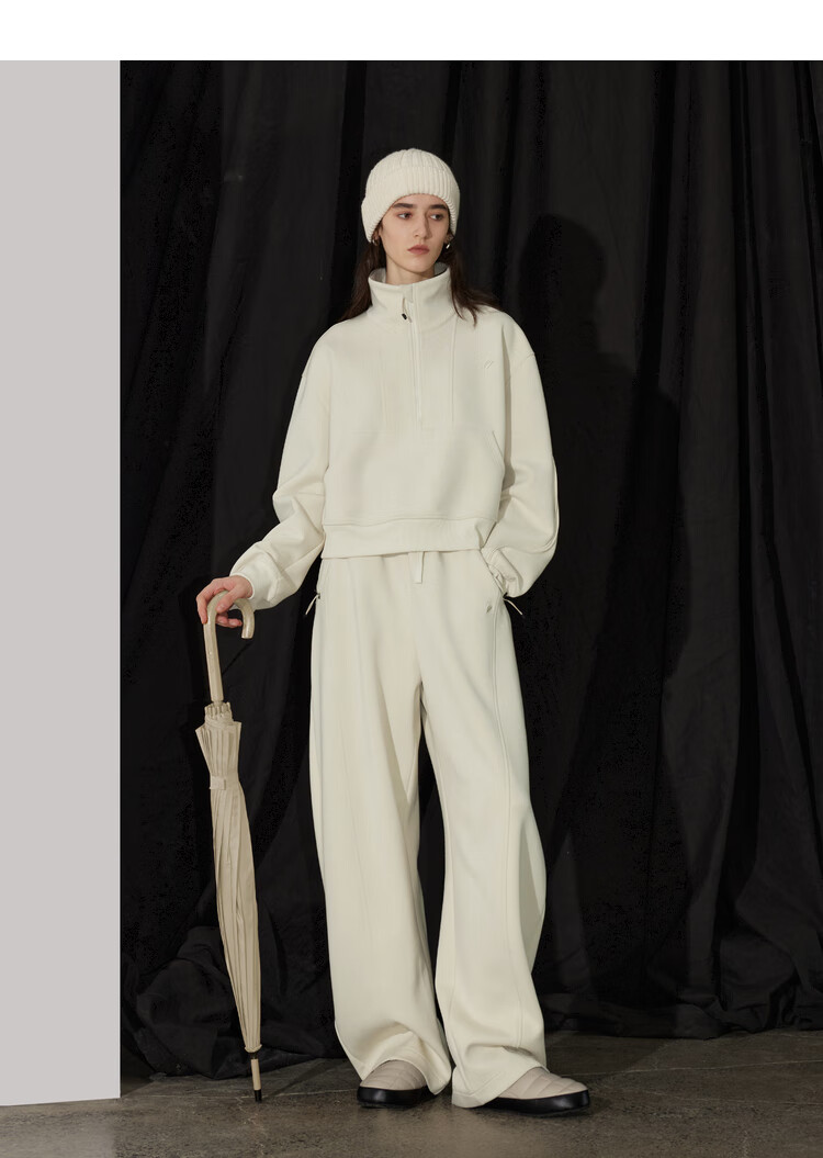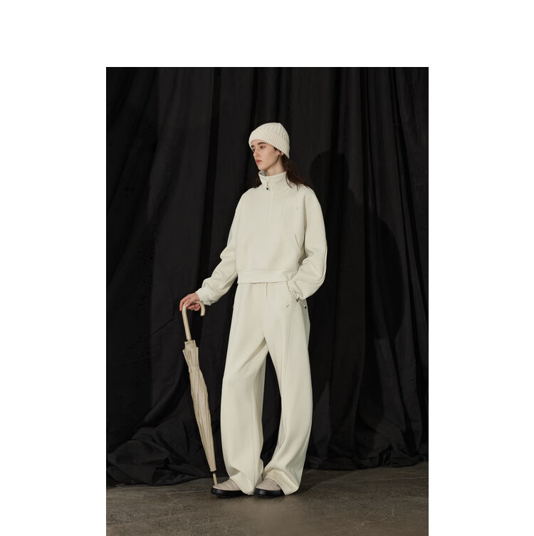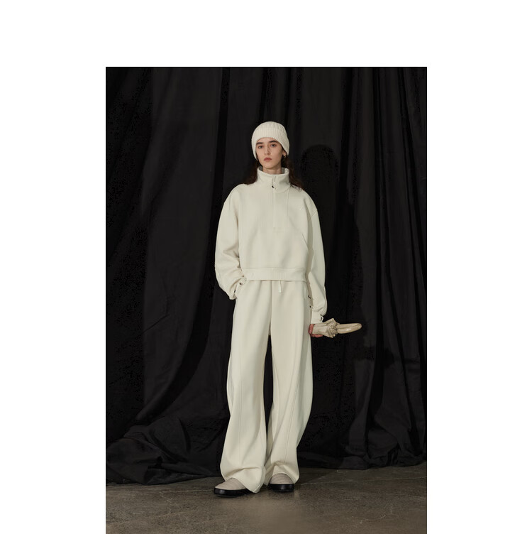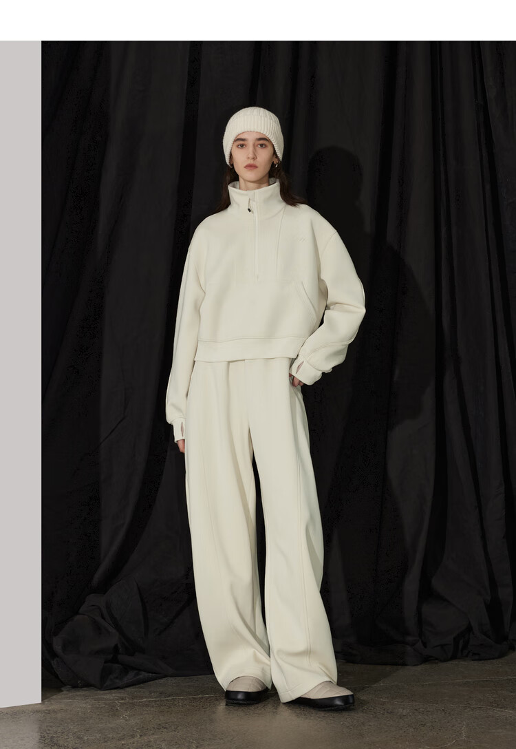Semi-circle and semi-circle women's sports 2025 autumn and winter velvet thickened short asymmetrical loose sweatshirt women's pants suit sweatshirt (beige) L