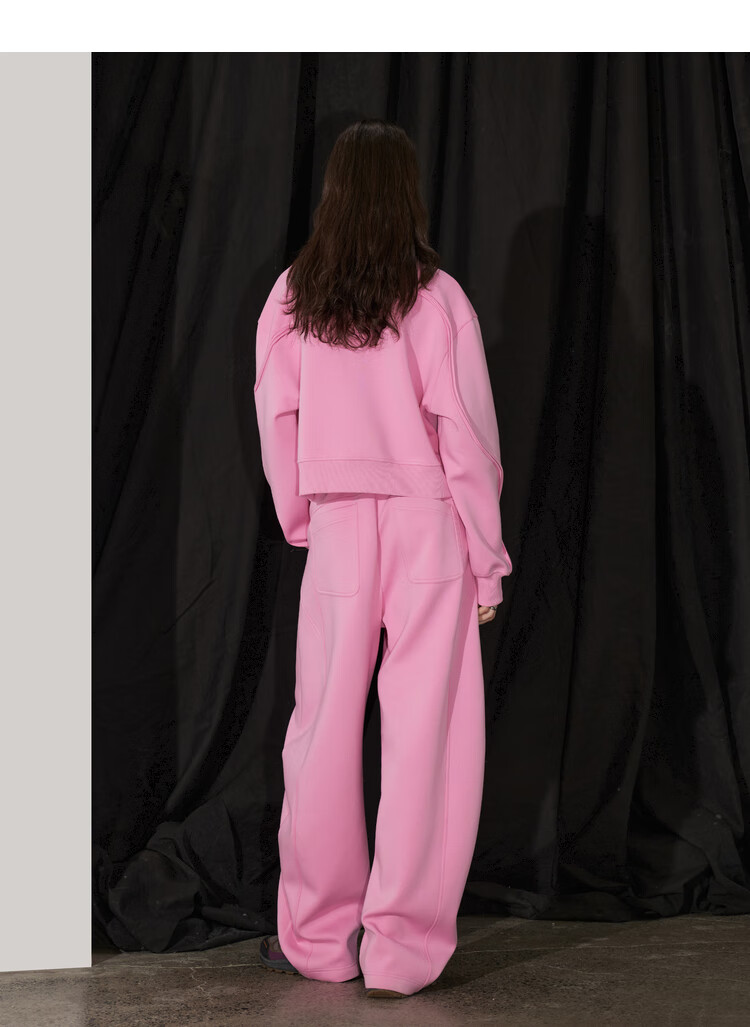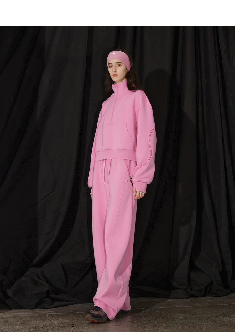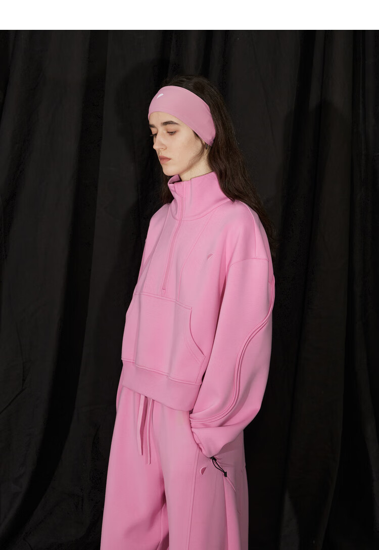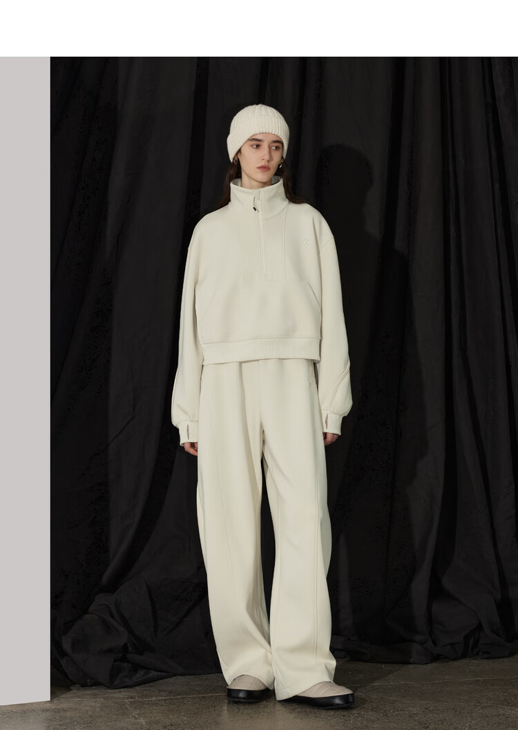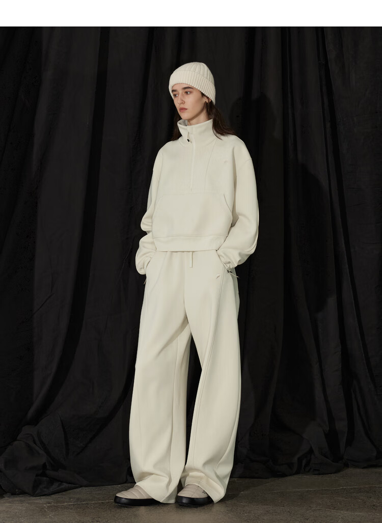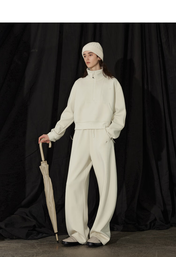 Semi-circle and semi-circle women's sports 2025 autumn and winter velvet thickened short asymmetrical loose sweatshirt women's pants suit sweatshirt (beige) L