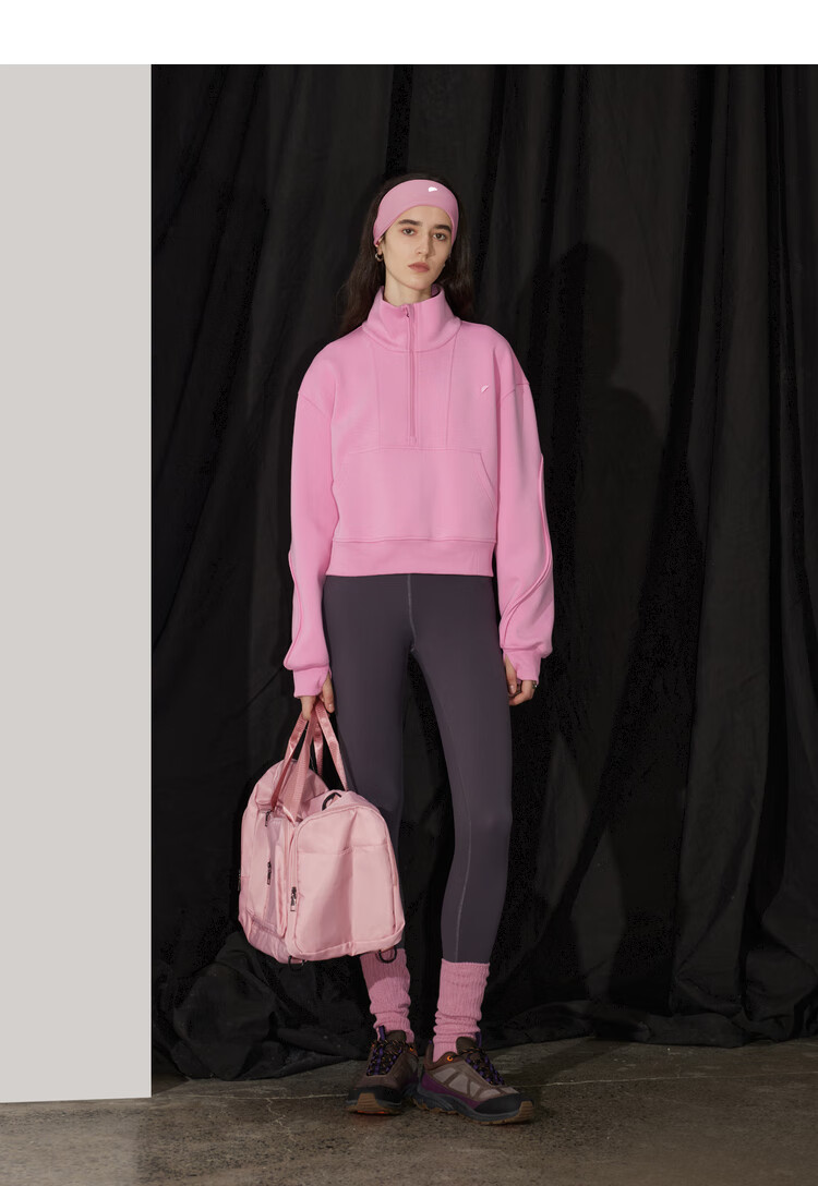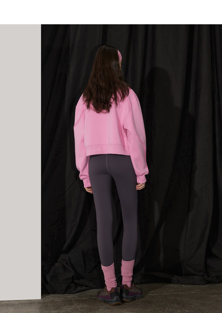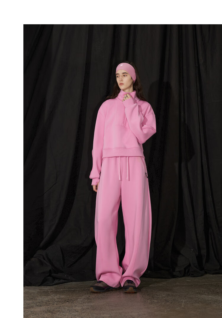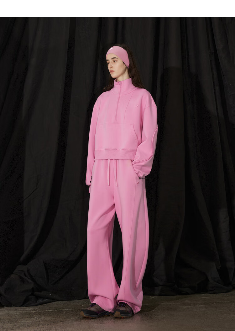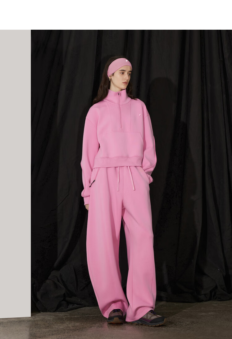 Semi-circle and semi-circle women's sports 2025 autumn and winter velvet thickened short asymmetrical loose sweatshirt women's pants suit sweatshirt (beige) L