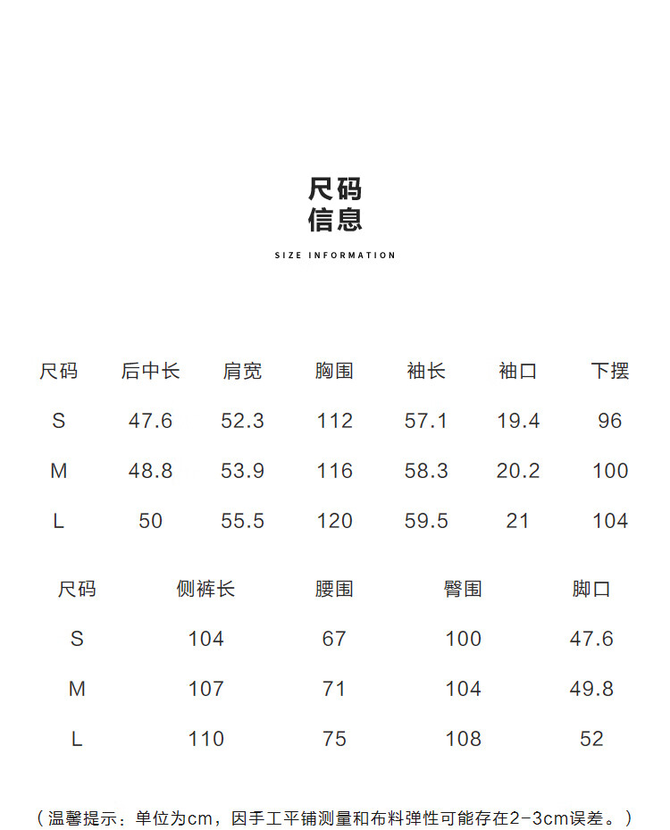 Outseam (cm) 99 cm 101.5 cm 104 cm 106.5 cm 109 cm