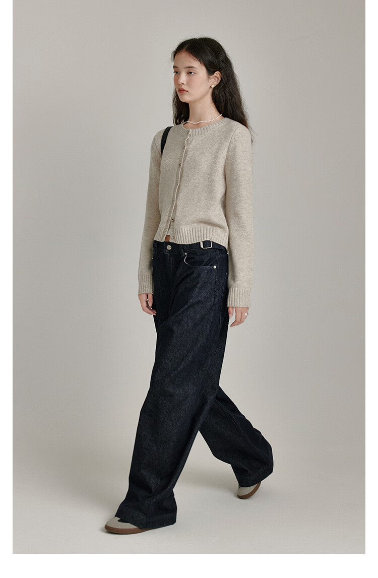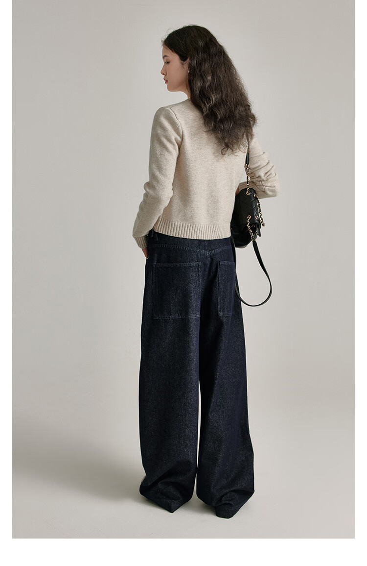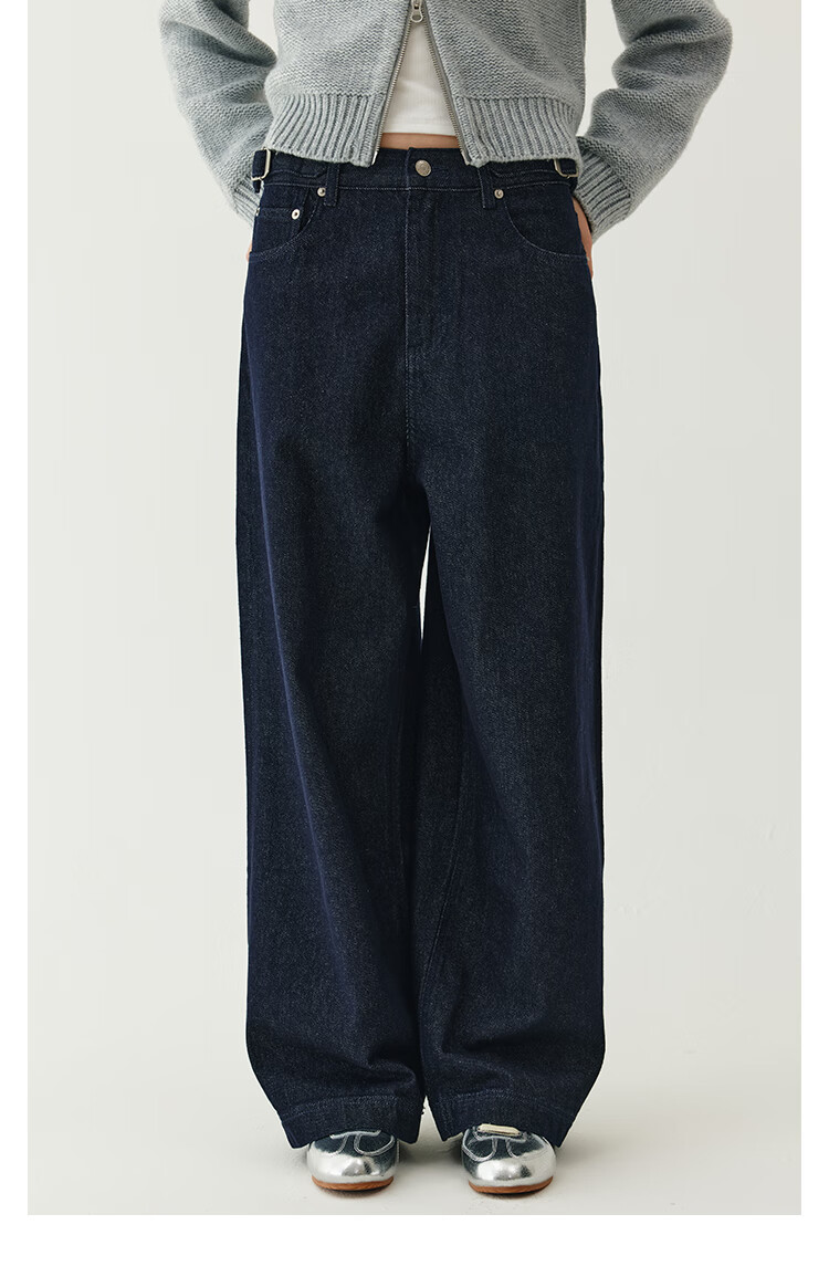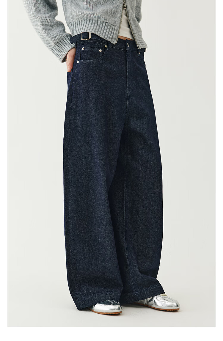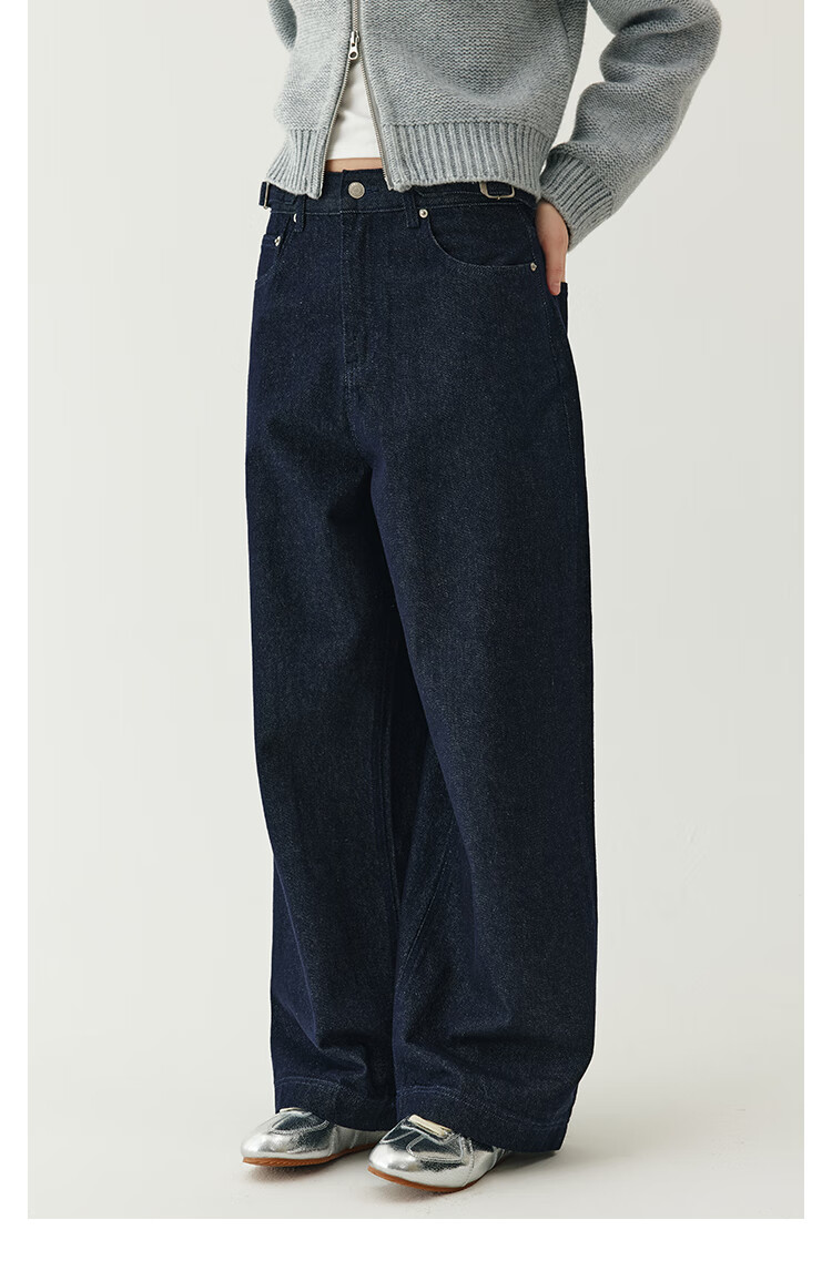 Fano studios Fan Luo Cocoon Style Very Wide Feeling Original Color Jeans Women's 2025 Autumn New Metal Buckle Waist Slimming Wide Leg Pants Original Color Denim Blue L (Second Batch)
