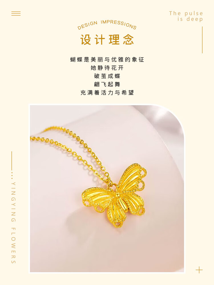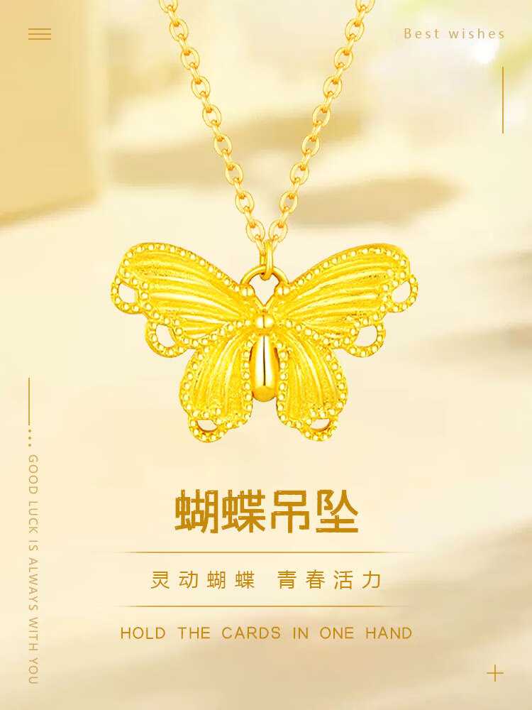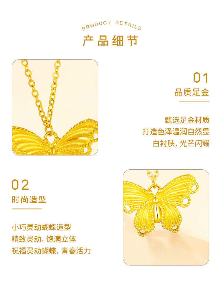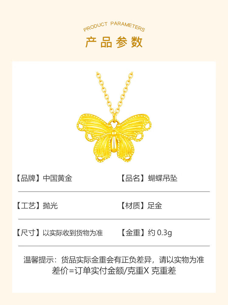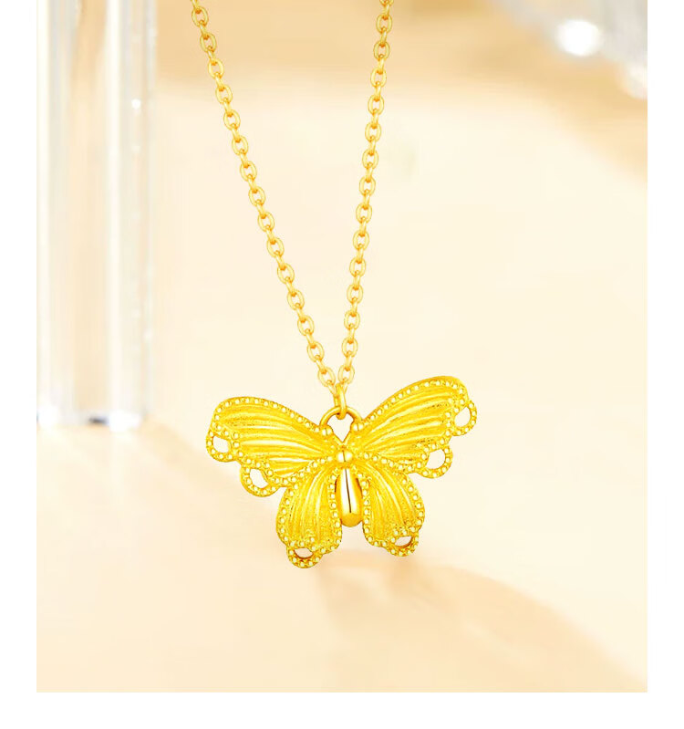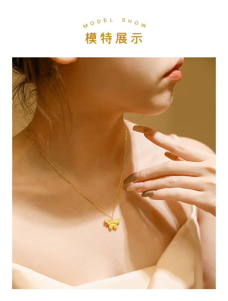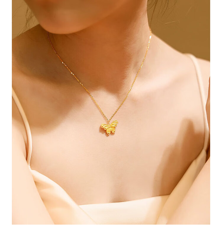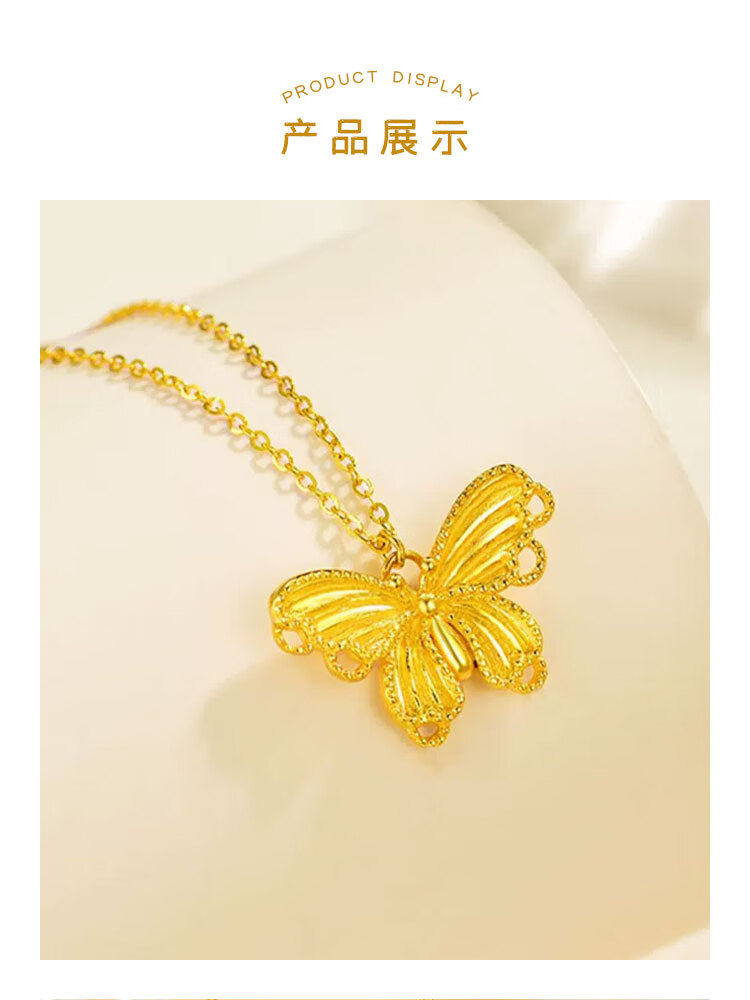 CHINA GOLD Butterfly Gold Necklace for Women Simple Pure Gold Pendant Jewelry Mid-Autumn Festival Birthday 520 Gift for Wife and Girlfriend Rose Gift Box + Butterfly Pendant with S925 Chain About 0.3g