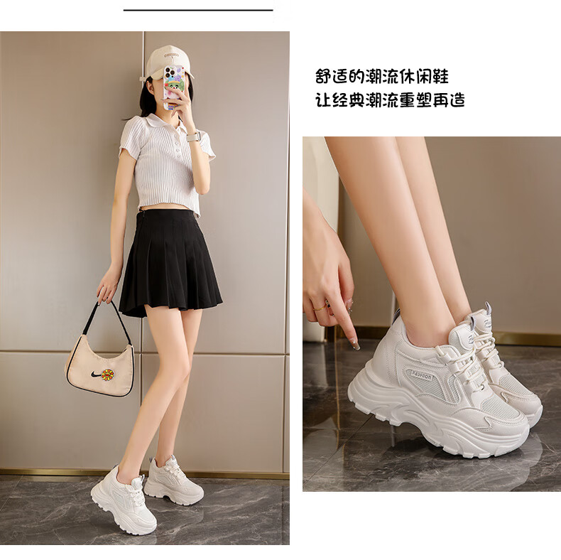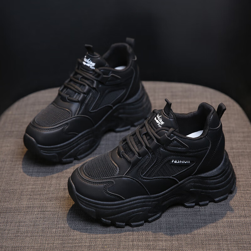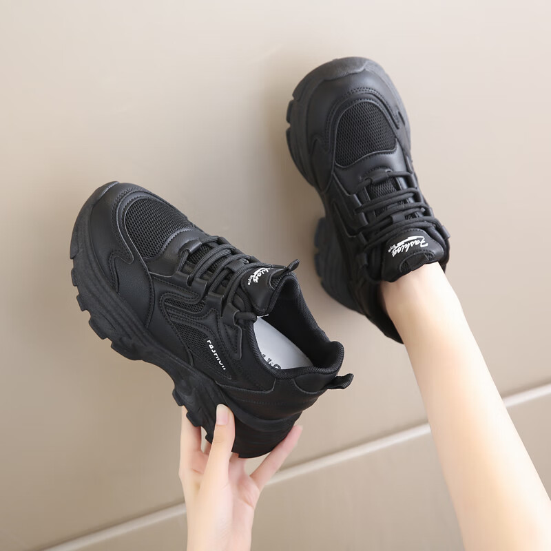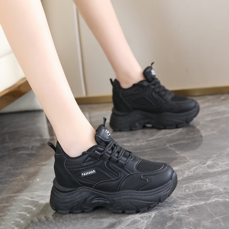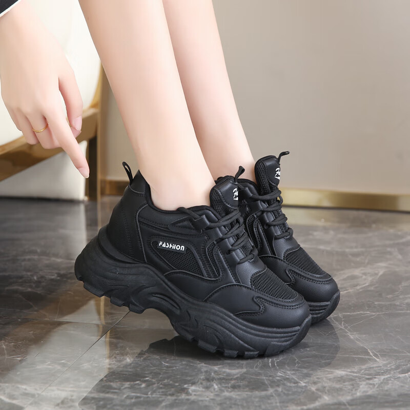 CARTELO crocodile (CARTELO) inner height increasing women's shoes 2025 new small high heels 8CM sports casual shoes wedge heel slim dad shoes black mesh 35