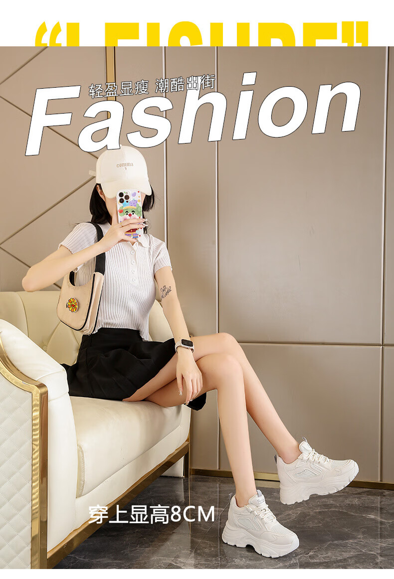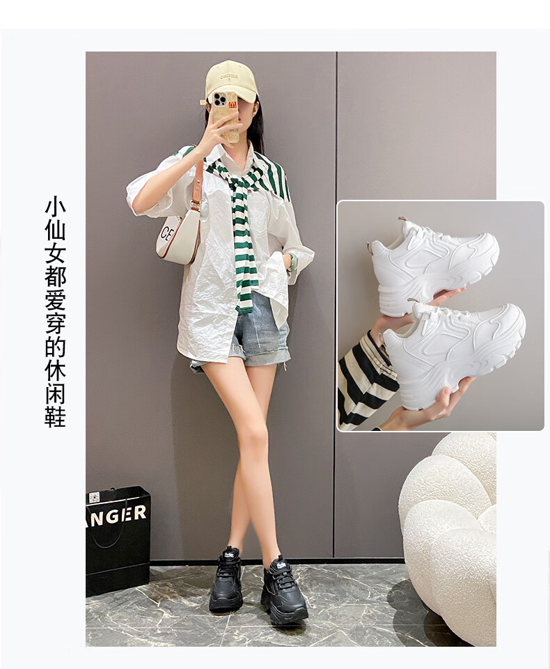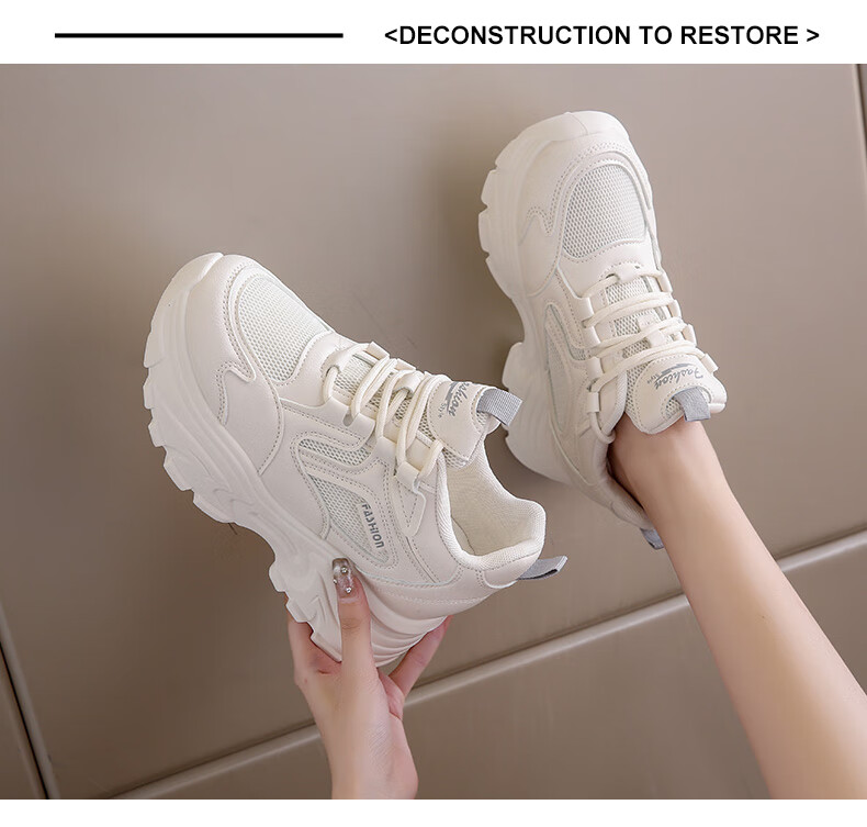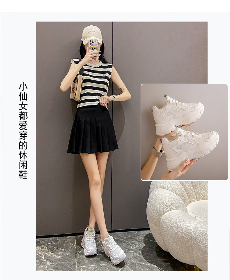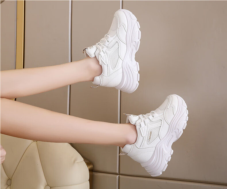 CARTELO crocodile (CARTELO) inner height increasing women's shoes 2025 new small high heels 8CM sports casual shoes wedge heel slim dad shoes black mesh 35
