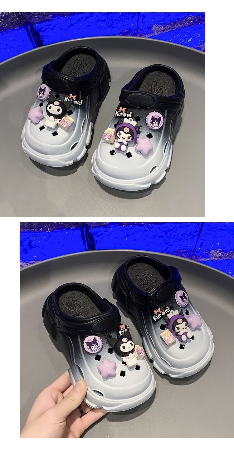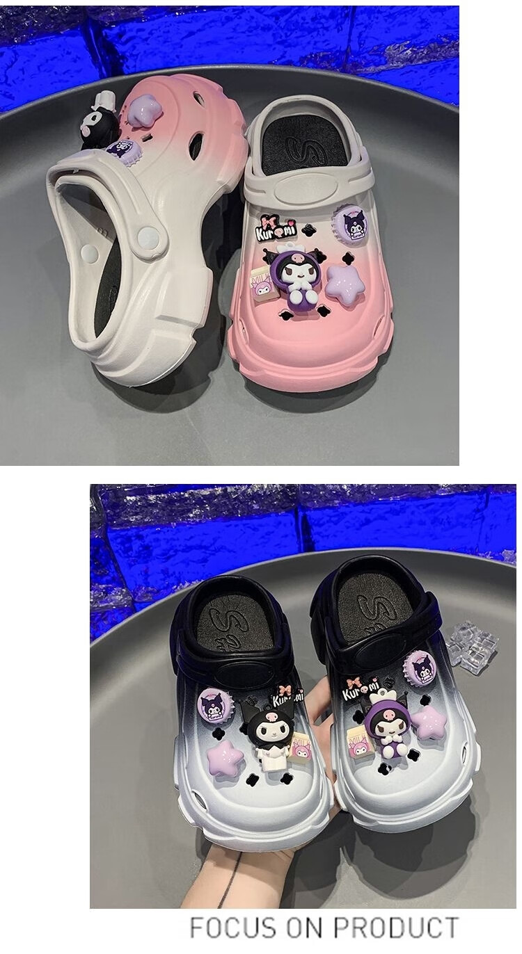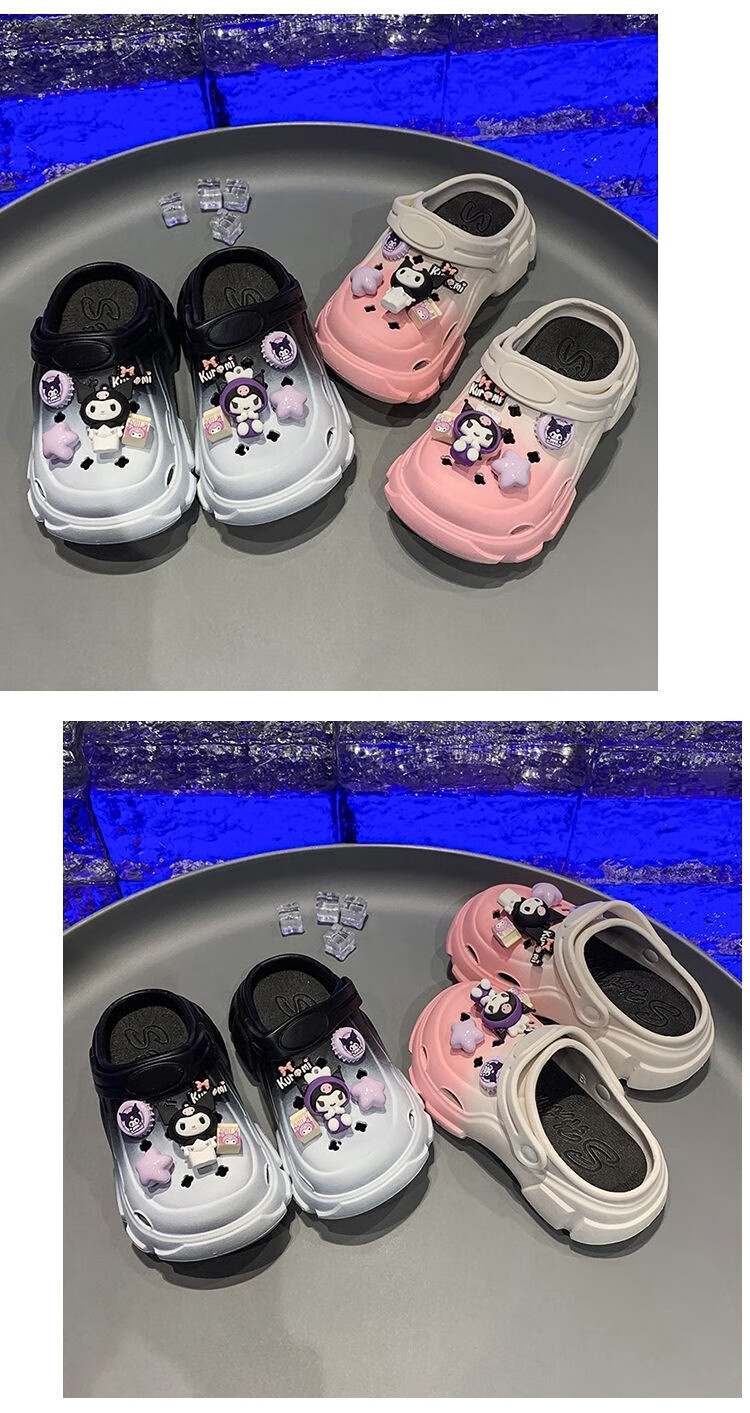 Xianzheyi Children's Slippers Girls Gradient Croc Shoes Summer Style 2024 Kuromi Girls Beach Baotou Sandals Anti-Slip Parent-child Upgraded White Pink 32-33 Inner Length 20