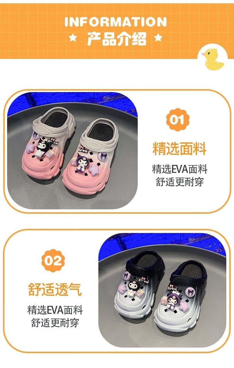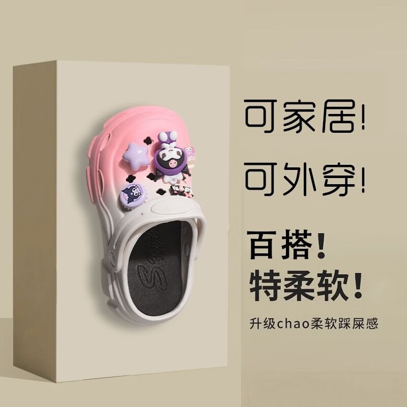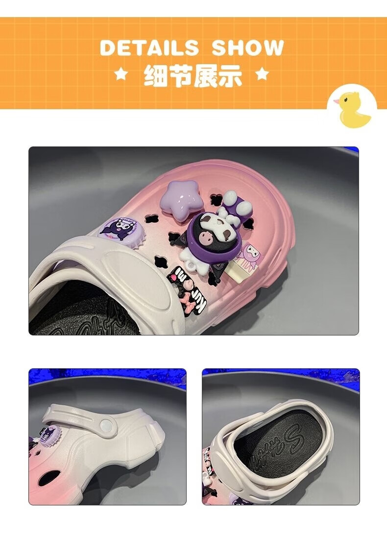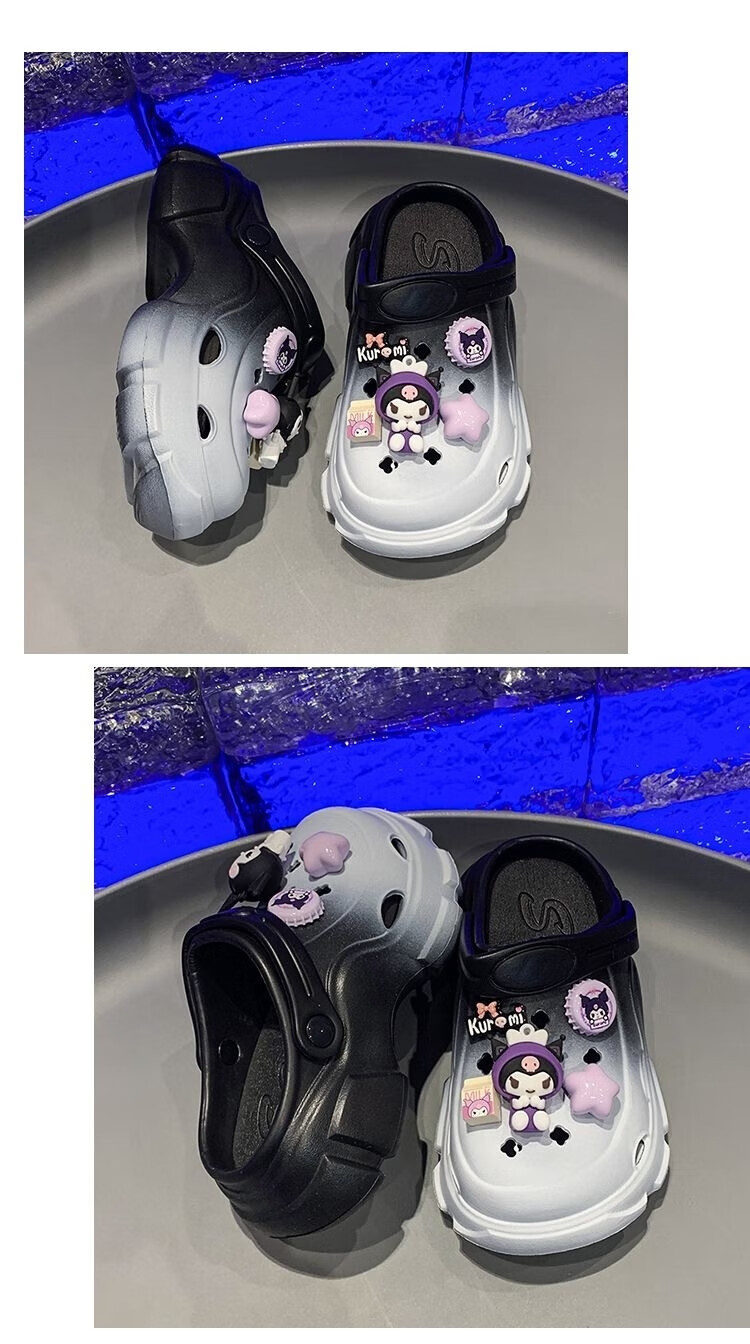 Xianzheyi Children's Slippers Girls Gradient Croc Shoes Summer Style 2024 Kuromi Girls Beach Baotou Sandals Anti-Slip Parent-child Upgraded White Pink 32-33 Inner Length 20
