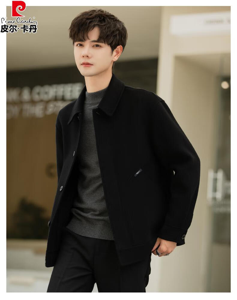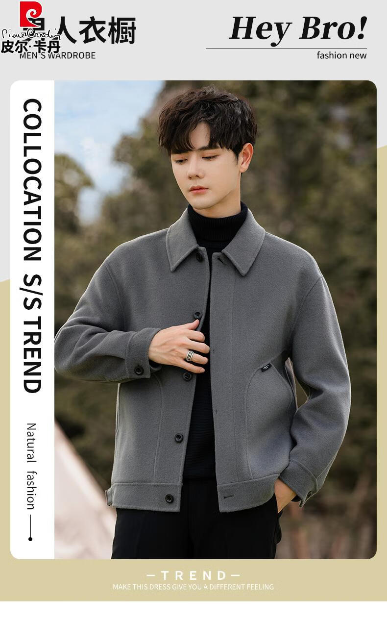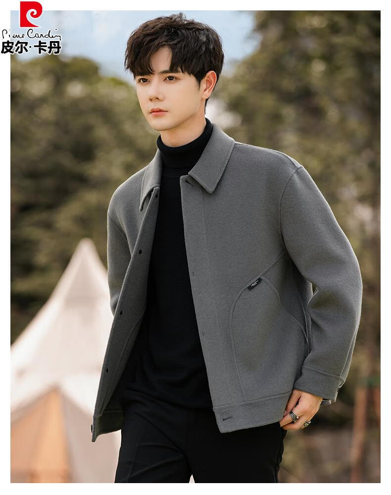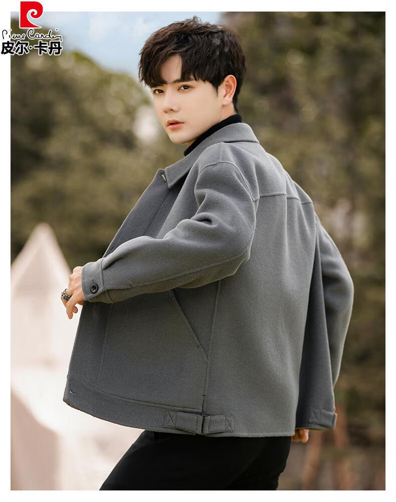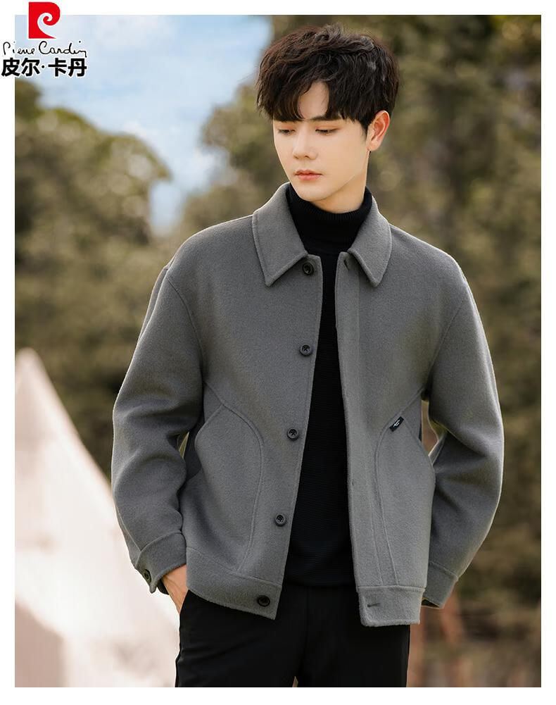 Pierre Cardin woolen jacket men's coat double-sided woolen coat short autumn and winter thickened high-end woolen top men's jade gray M