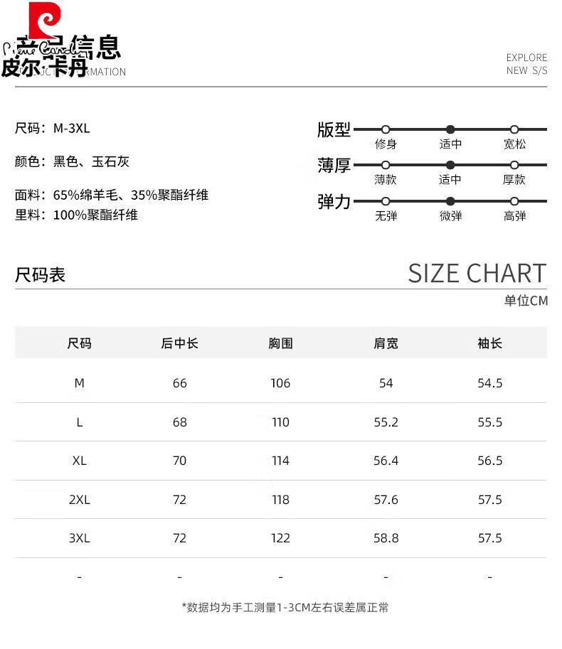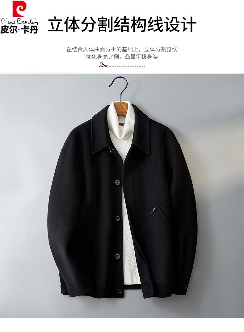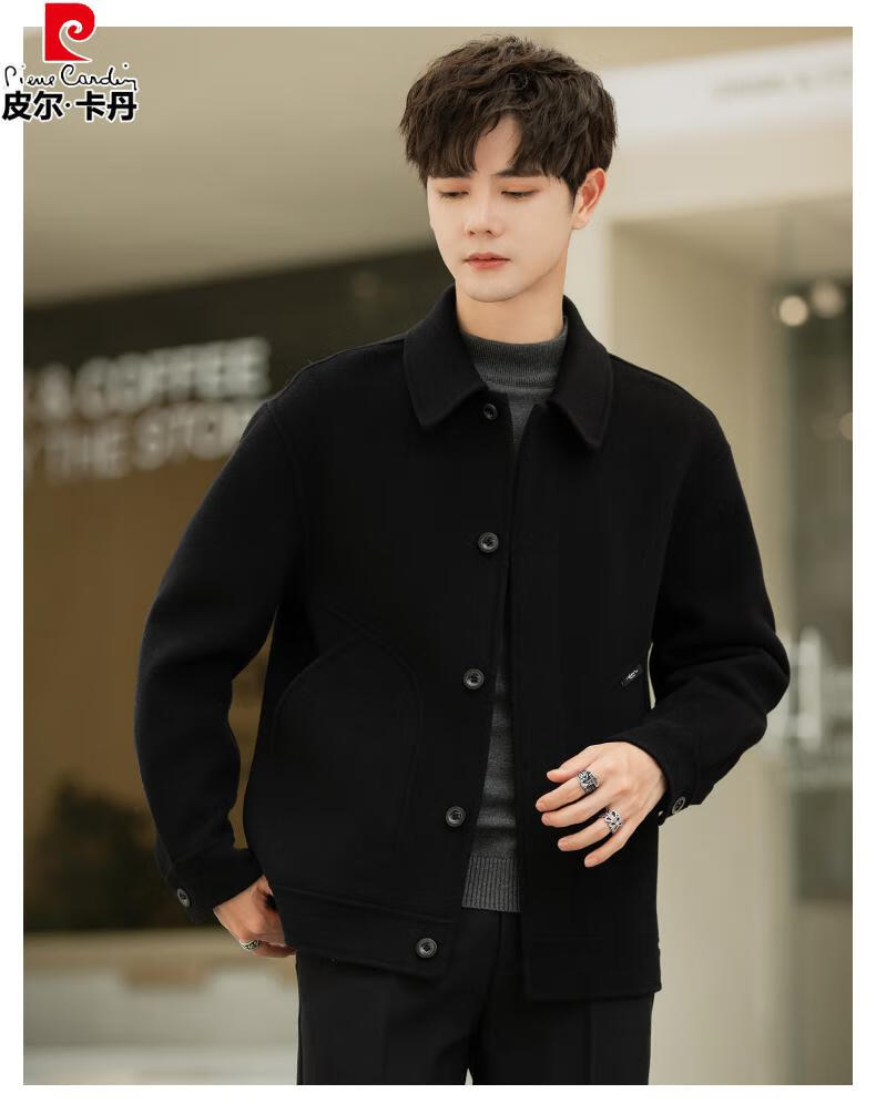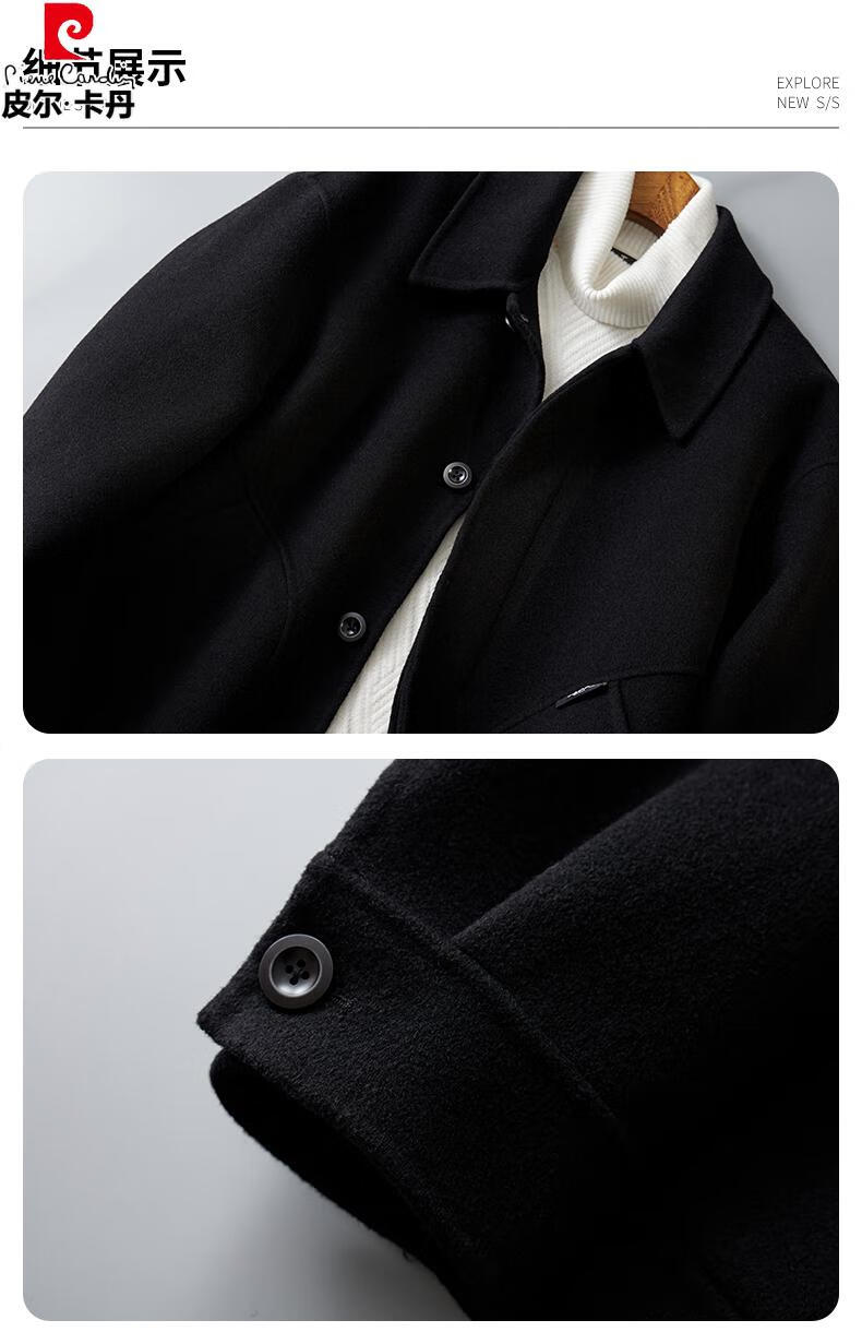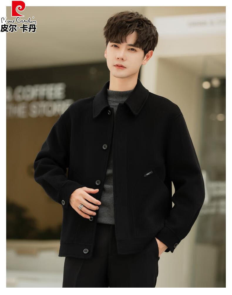 Pierre Cardin woolen jacket men's coat double-sided woolen coat short autumn and winter thickened high-end woolen top men's jade gray M