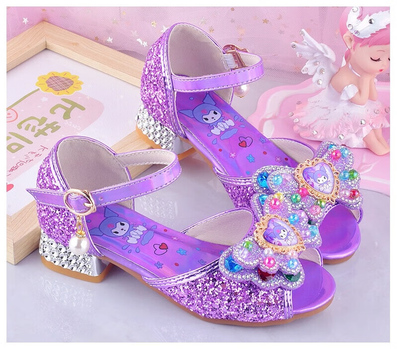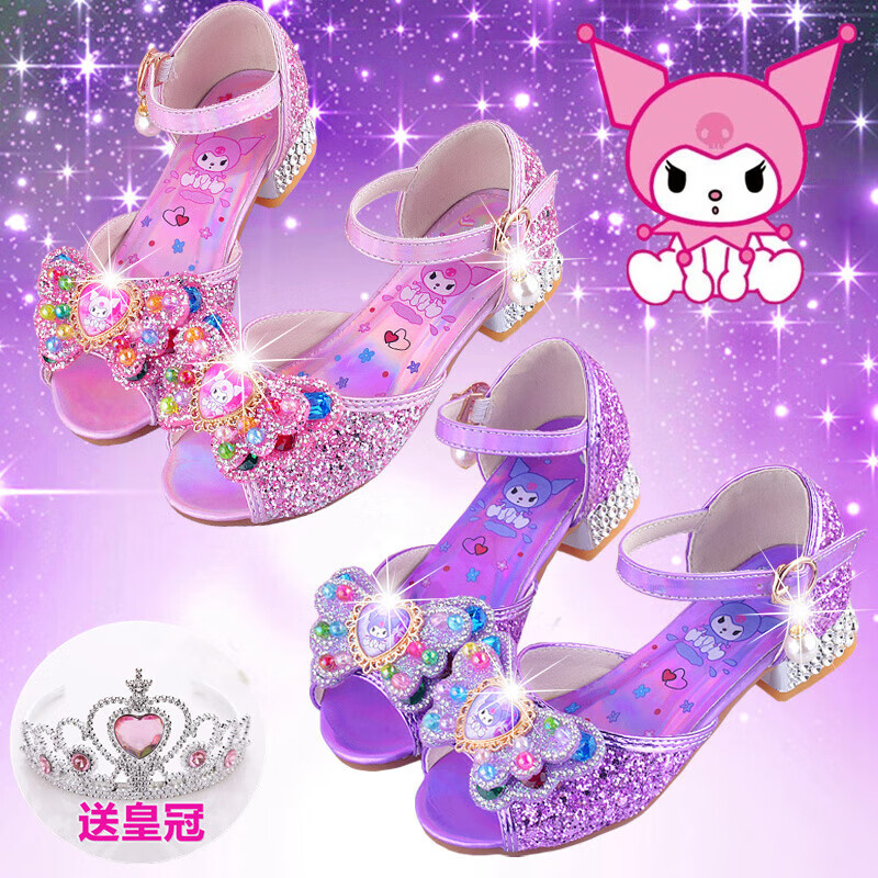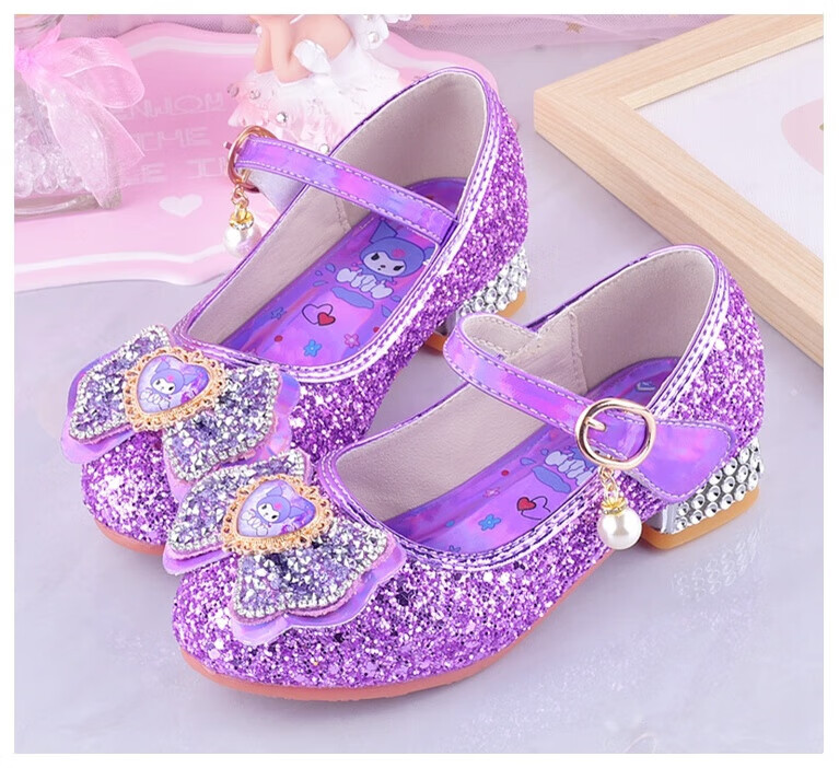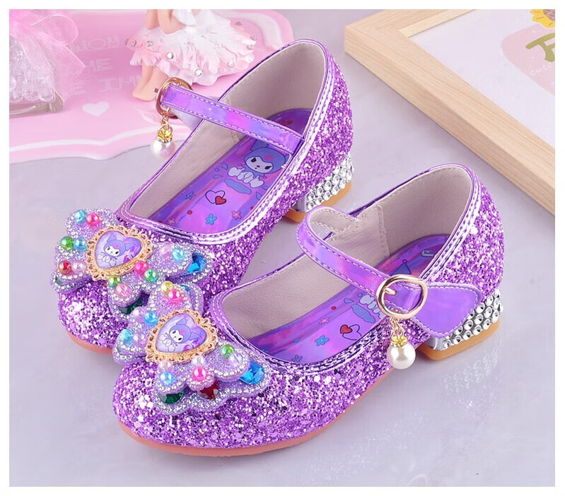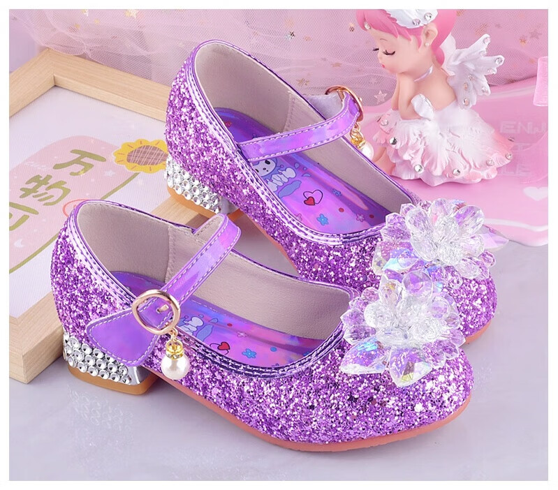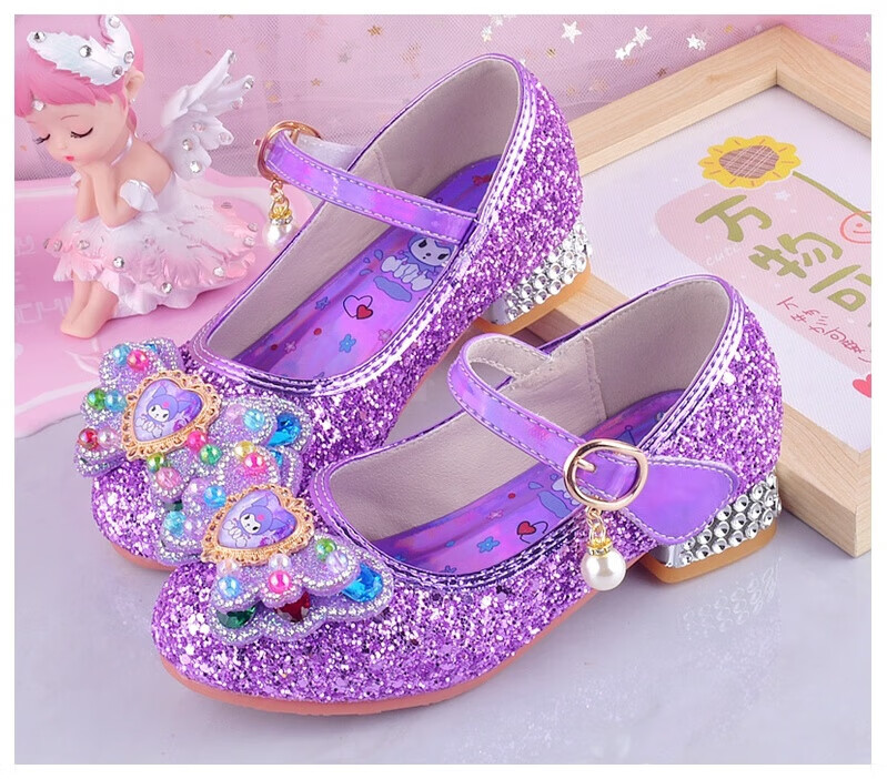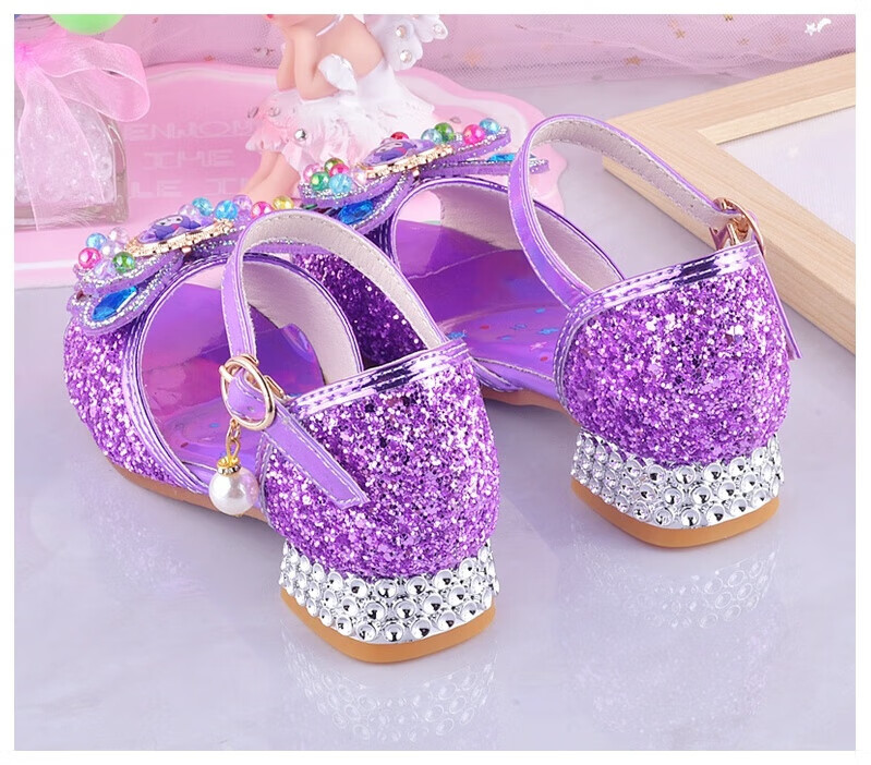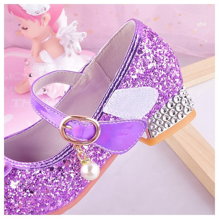 Xianzheyi Purple Kurome Princess Shoes Girls High Heels Spring and Autumn Children's Soft Soled Single Shoes Crystal Shoes Little Girls Leather Shoes Four Seasons/319-4 Purple Size 27 Inner Length 17.5cm