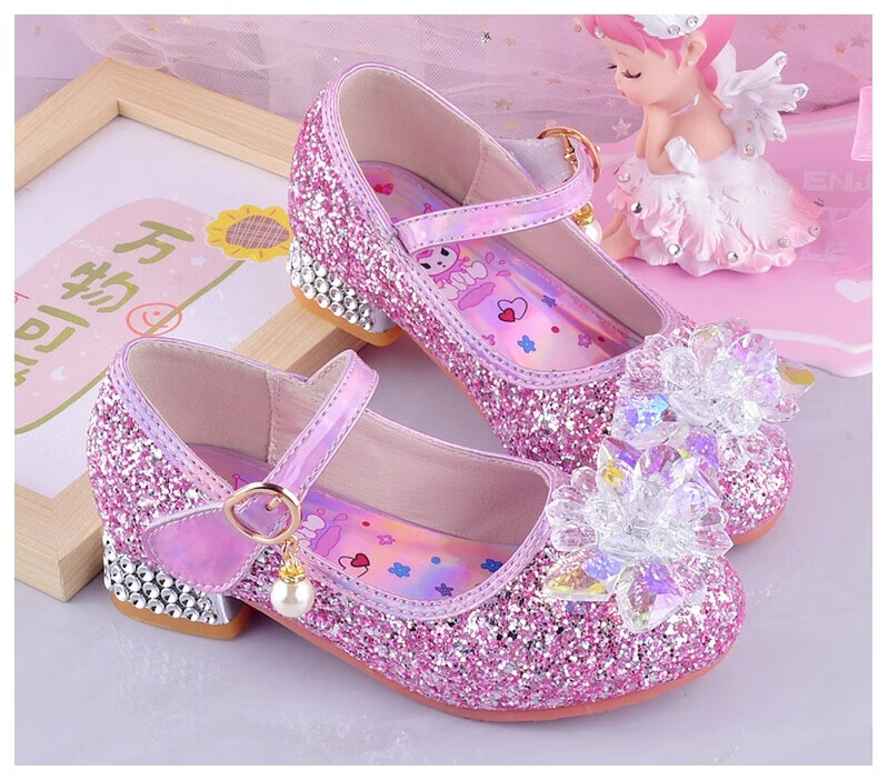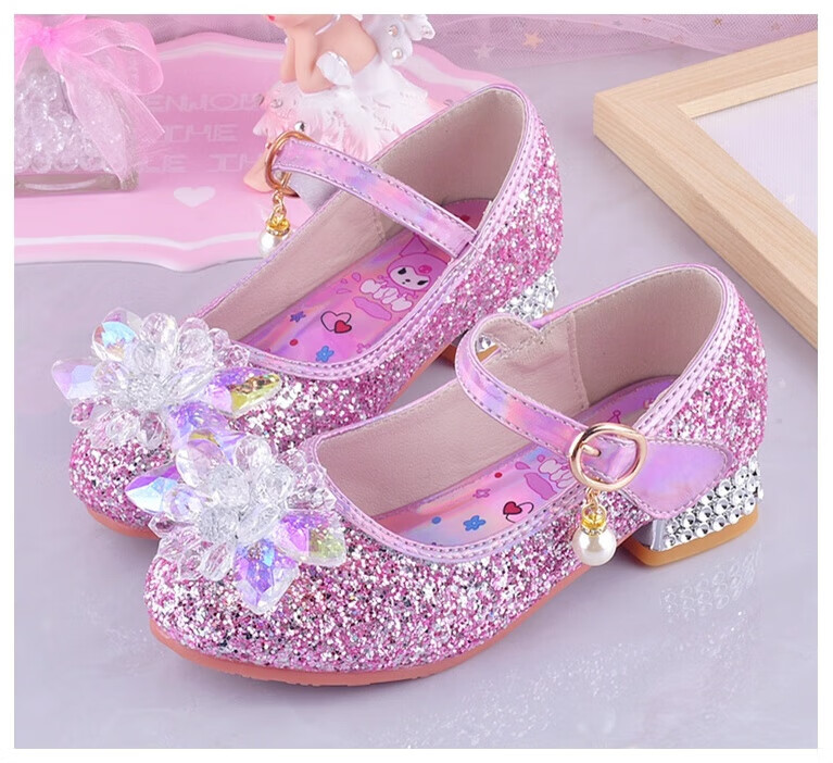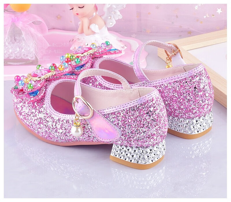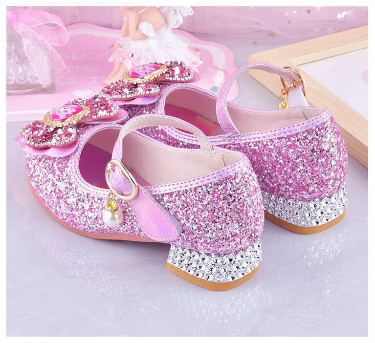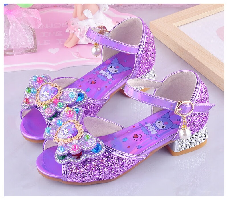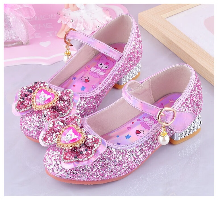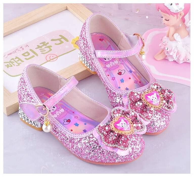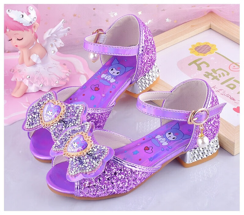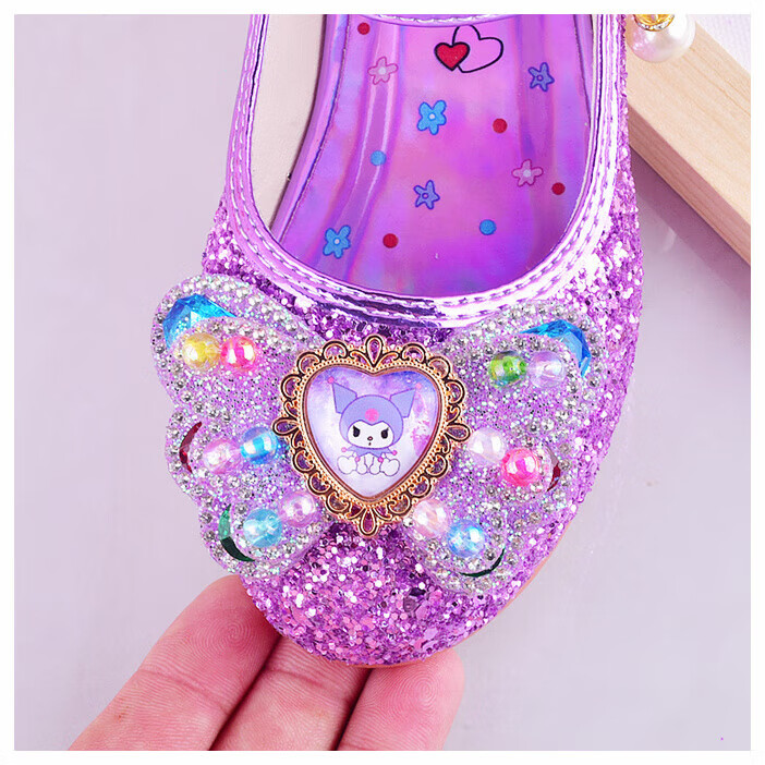 Xianzheyi Purple Kurome Princess Shoes Girls High Heels Spring and Autumn Children's Soft Soled Single Shoes Crystal Shoes Little Girls Leather Shoes Four Seasons/319-4 Purple Size 27 Inner Length 17.5cm