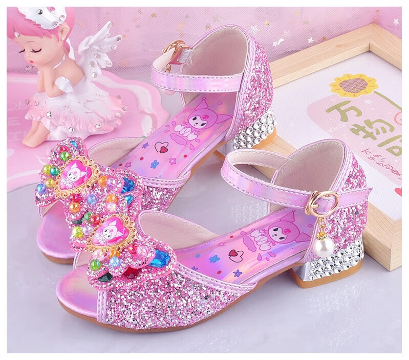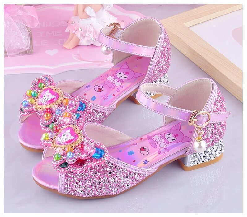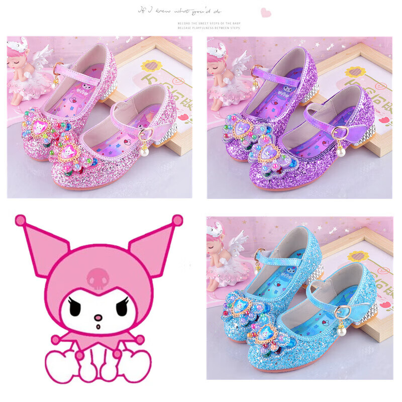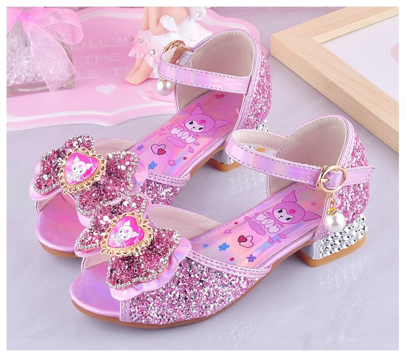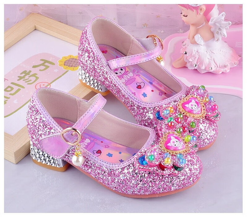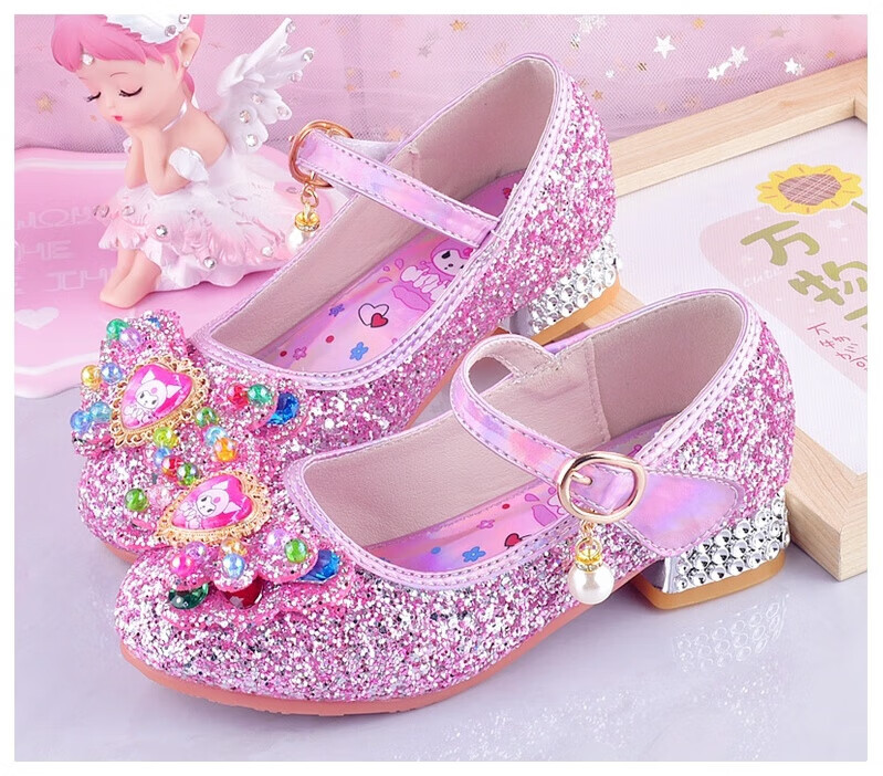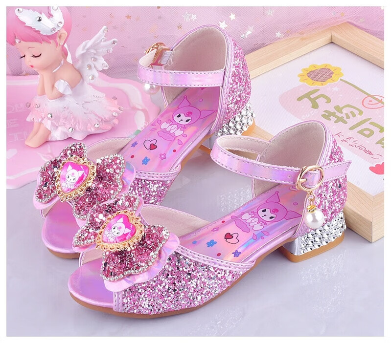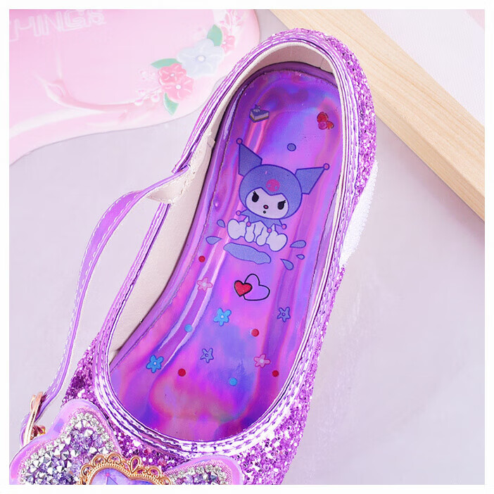 Xianzheyi Purple Kurome Princess Shoes Girls High Heels Spring and Autumn Children's Soft Soled Single Shoes Crystal Shoes Little Girls Leather Shoes Four Seasons/319-4 Purple Size 27 Inner Length 17.5cm