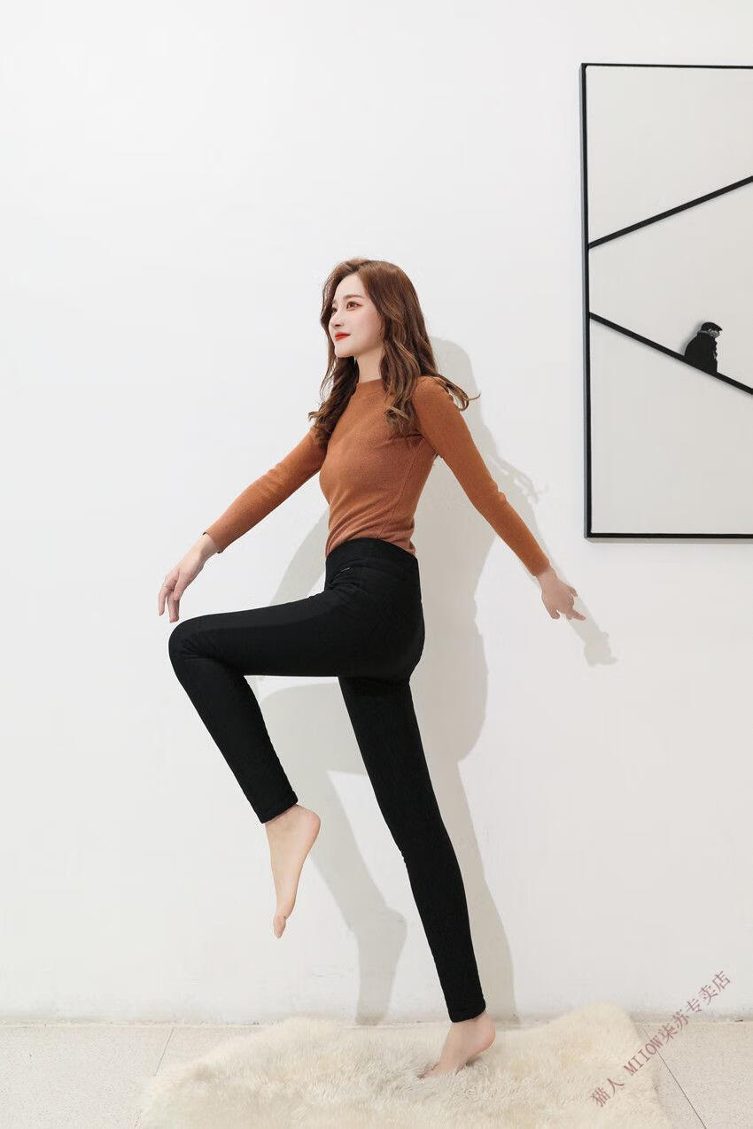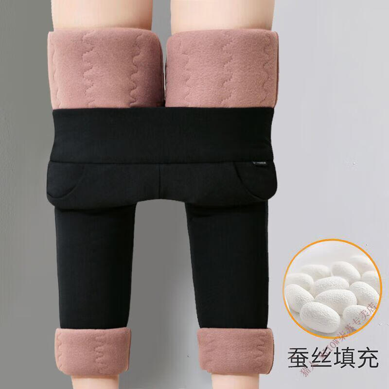 MiiOW silk cotton pants for women, high waist, velvet, thickened, large size, winter, extra thick, slimming, pencil warm pants for small feet, silk cotton pants 800g thick, XL suitable for 123-135 Jin Jin equals 0.5 kg