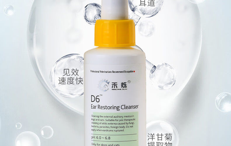 SEEDING SUN SF Express Heshuo D6 Ear Cleansing Liquid Weakly Acidic Pet Dogs and Cats Soothing Ear Canal Control Otitis Package One Bottle of SEEDING SUN + Pavitil Cleansing