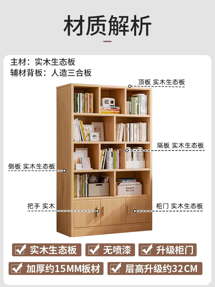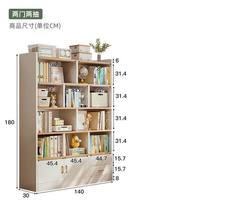 LEADTEK bookcase floor-standing wall bookshelf storage rack student home multi-layer living room cabinet storage cabinet with door Thanksgiving feedback thickened 15mm 80*30*180