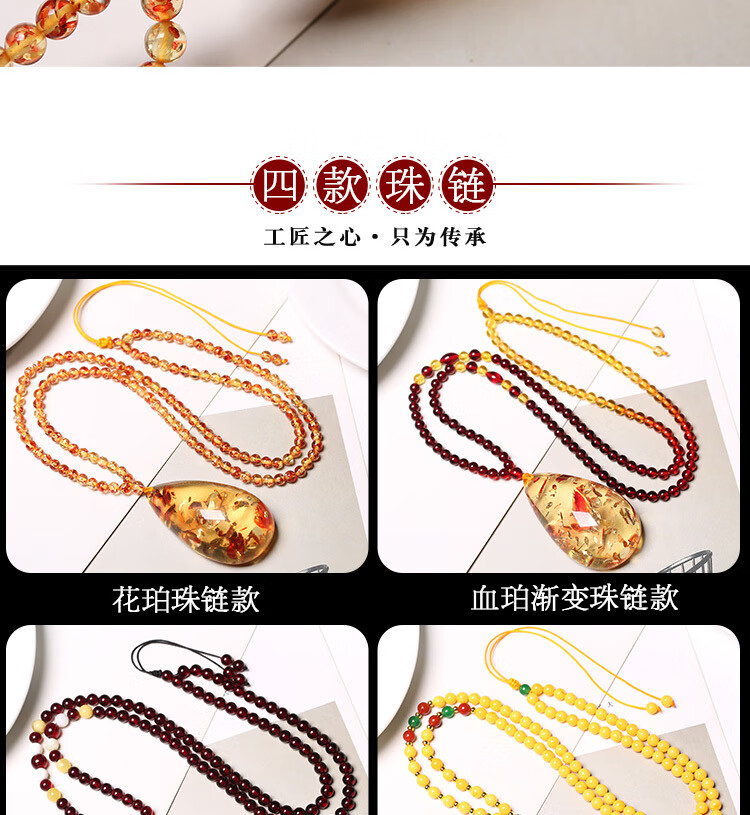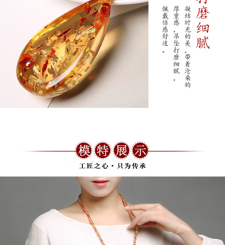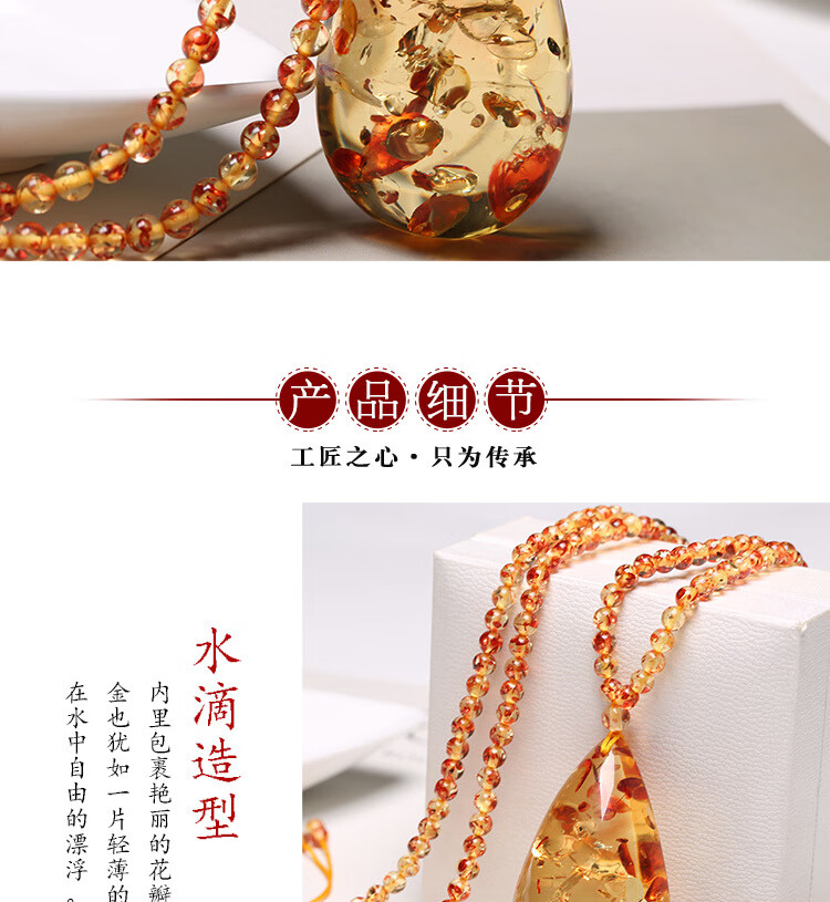 Chengyuanxiang CREORISETIN natural 5A water purified amber drop pendant sweater chain raw mineral beeswax amber necklace pendant women's original stone two-color blood amber bead chain style