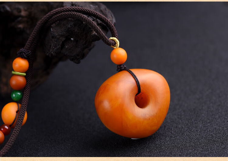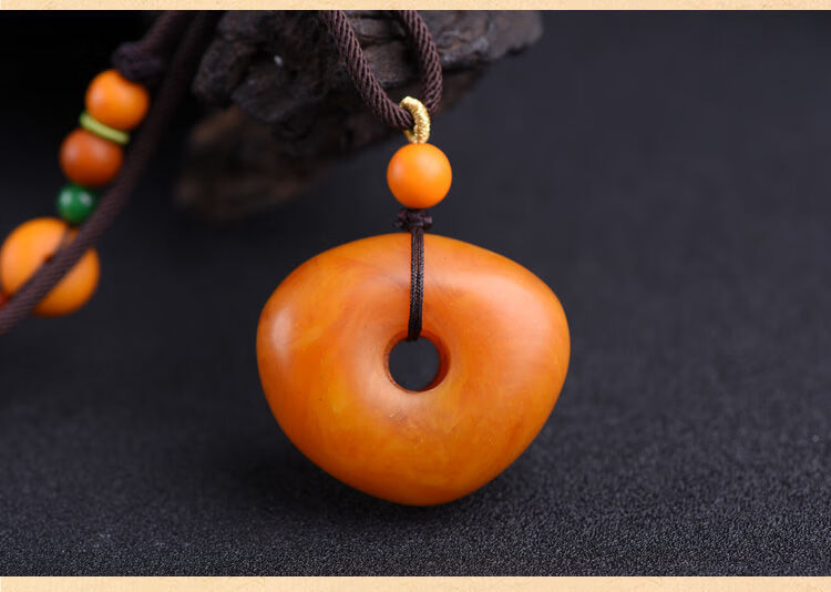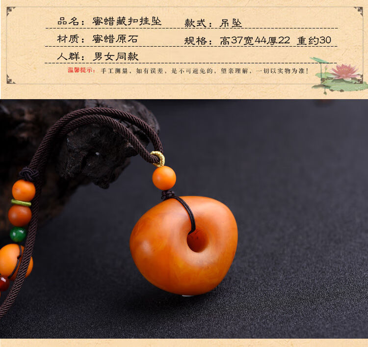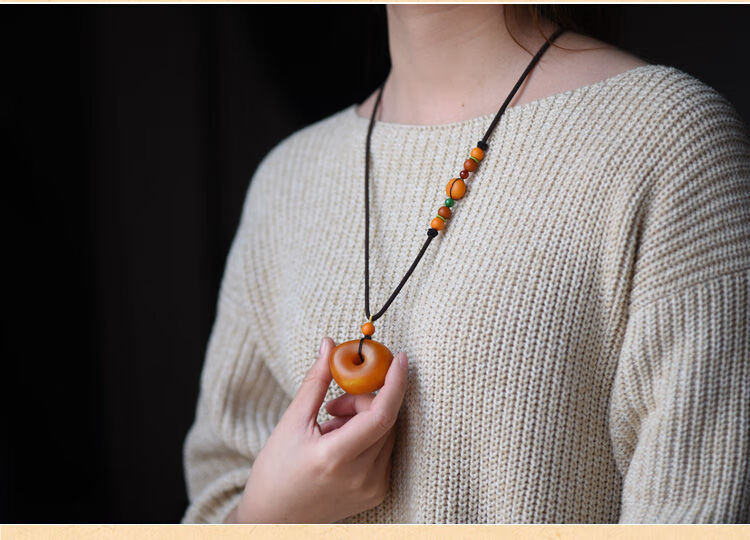 Chengyuanxiang CREORISETIN new customer instant discount natural old beeswax safety buckle pendant Russian raw stone dense wax ethnic style necklace sweater chain orange peel old wax safety buckle sweater pendant total rope length