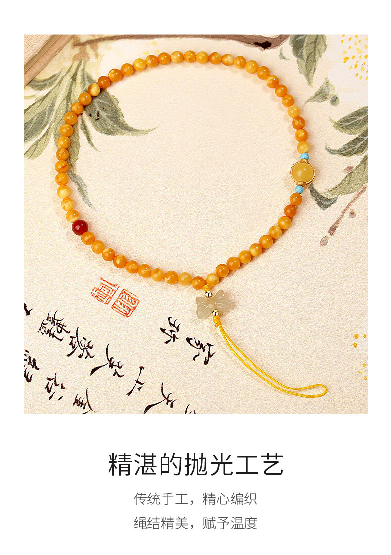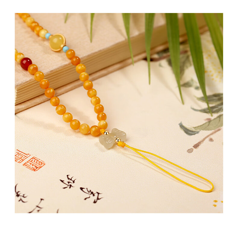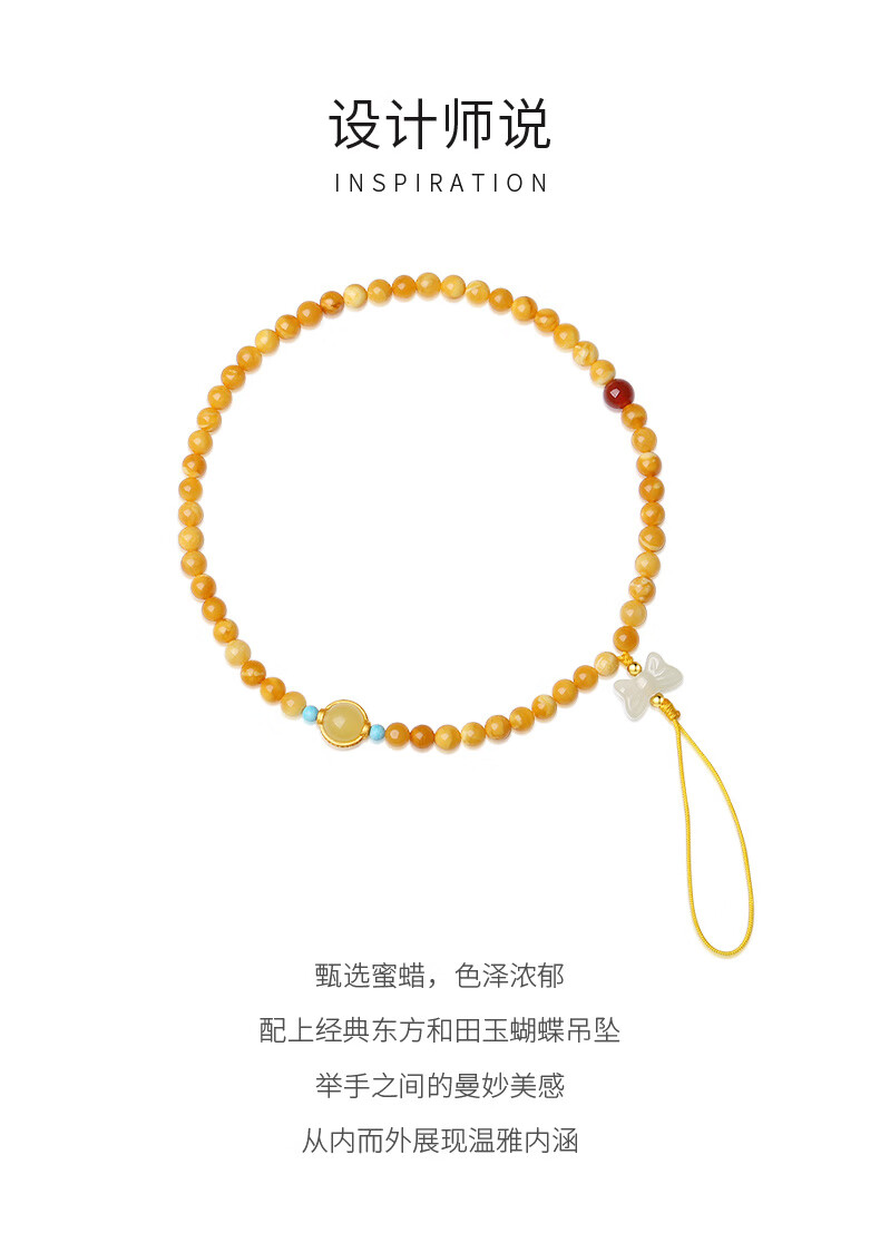 Chengyuanxiang CREORISETIN mobile phone chain beaded hand amber beeswax tortoise shell wrist mobile phone lanyard tourmaline four-leaf clover crystal beaded jewelry mobile phone chain 6mm