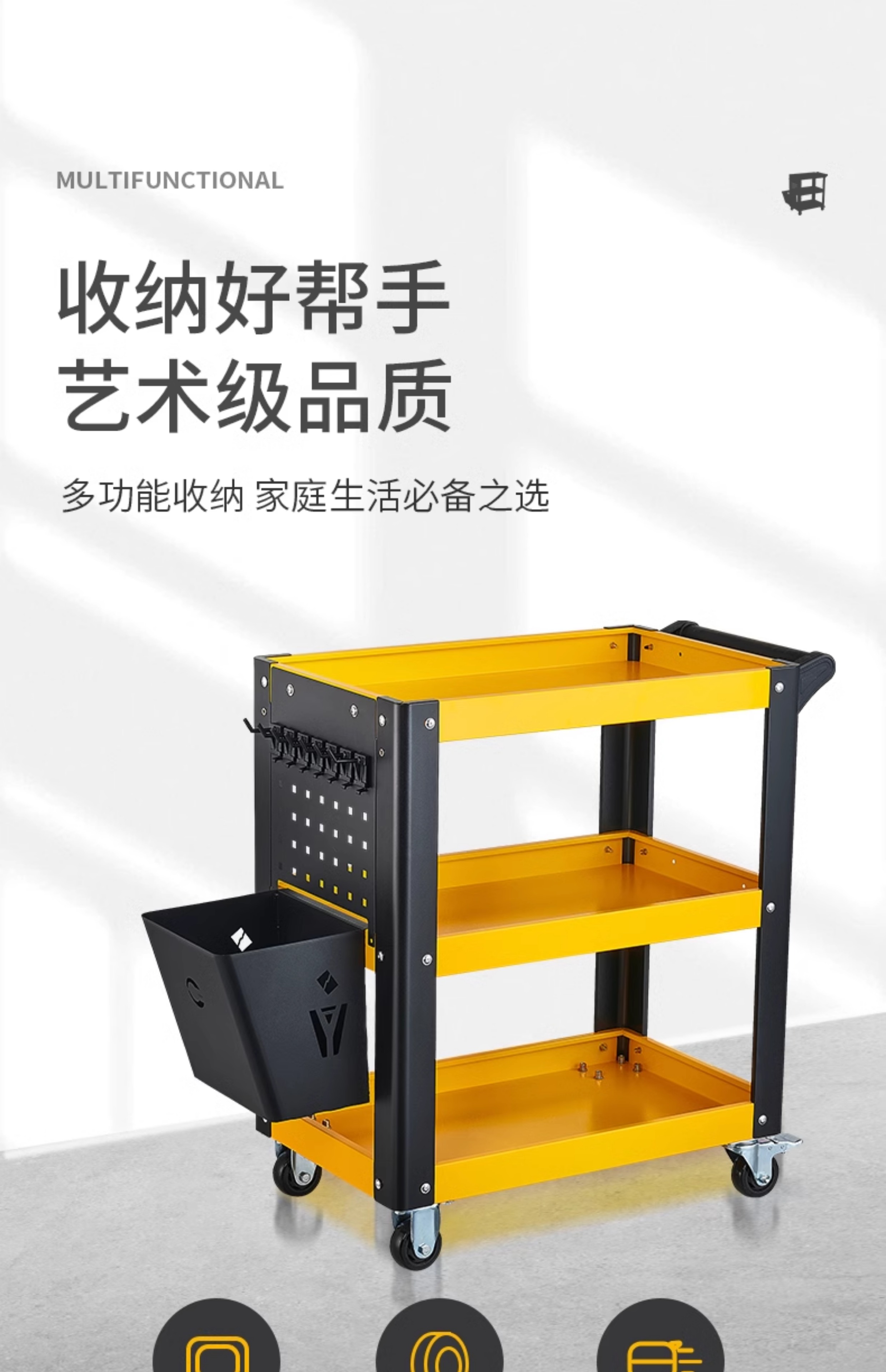 Huili Tool Trolley Thickened Shelf Combination Cabinet Car Repair Parts Storage Workshop Mobile Trolley Matte Black Backplate + Storage Frame Heavy-Duty Three-Layer Tool Trolley Whole Machine 1.0 Material