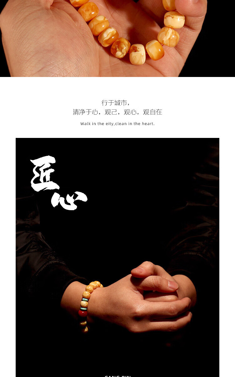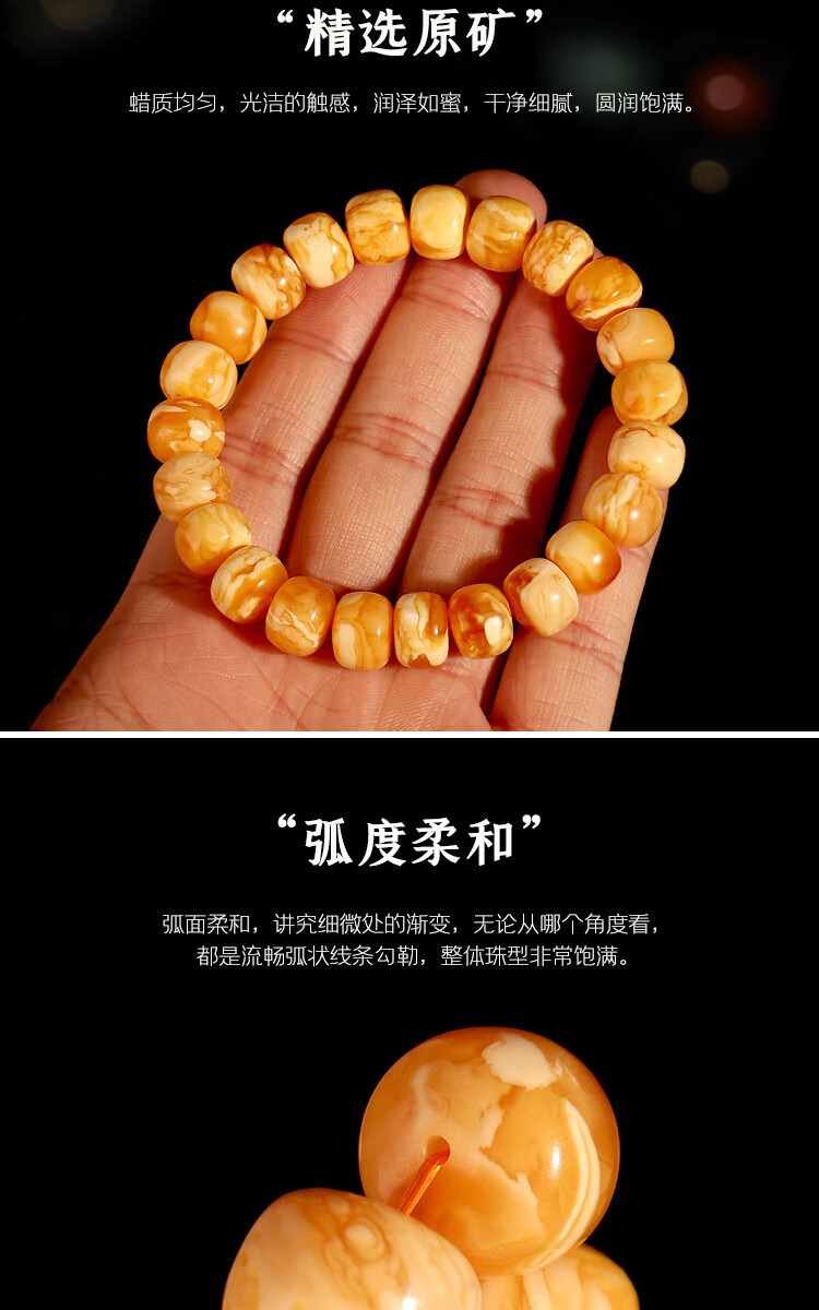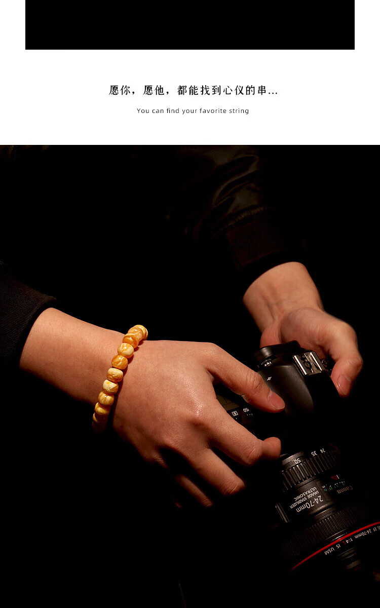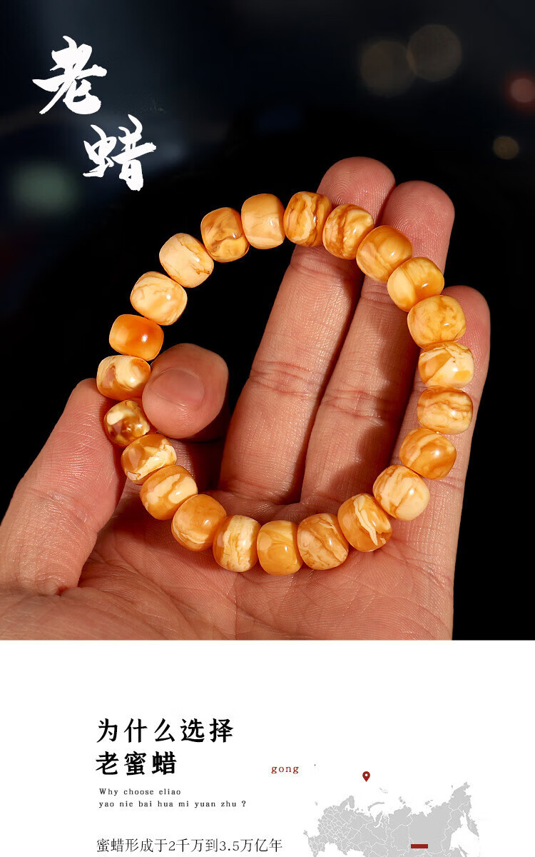 Chengyuanxiang CREORISETIN fidelity raw ore Russian material old beeswax white flower tiger skin pattern old type barrel beads for men and women bracelets Buddha beads bracelet single circle 10mm old type