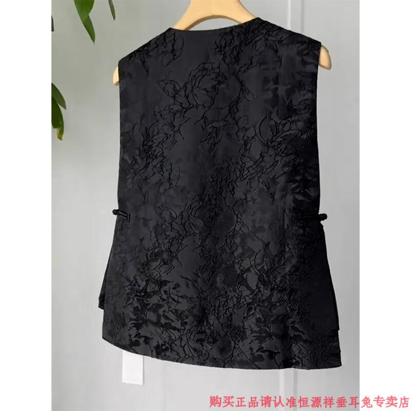 Hengyuanxiang national style high-end black jacquard vest for women summer retro new Chinese style disc button round neck waistcoat jacket black (small quantity in stock) oriental simple luxury style XL recommended 115-130Jin Jin equals 0.5 kg oriental simple luxury style
