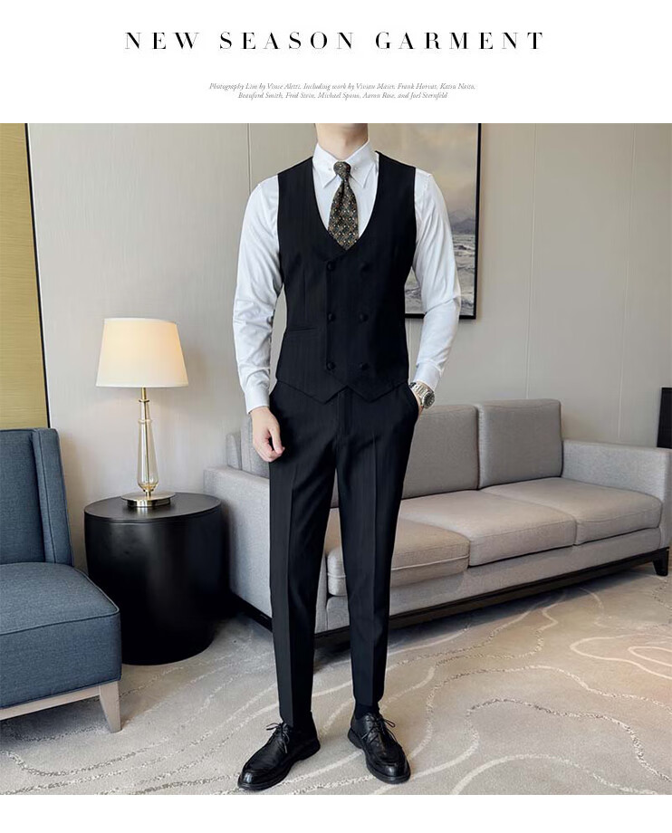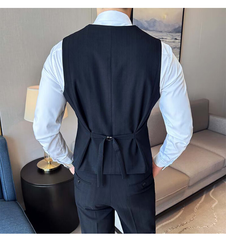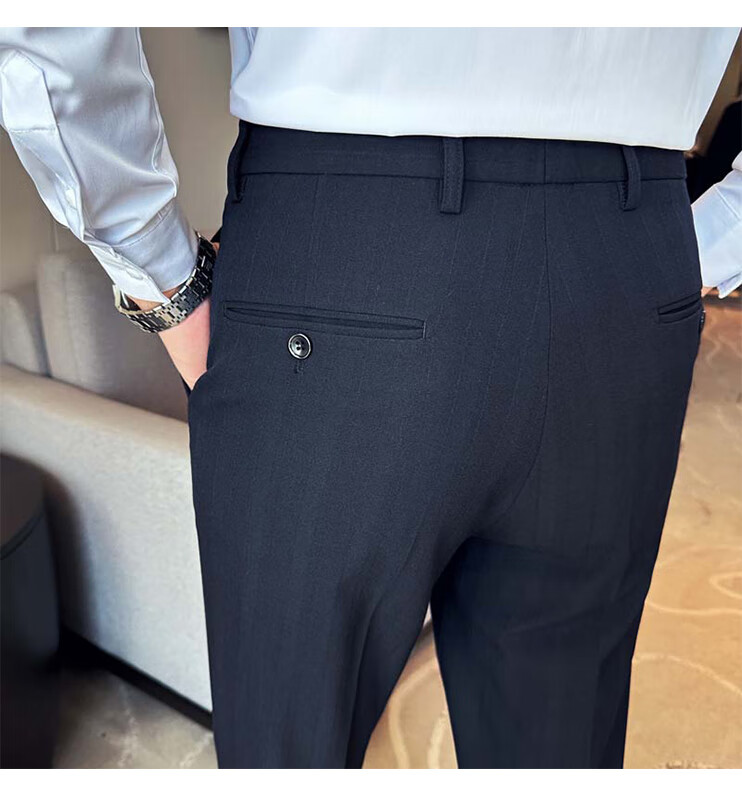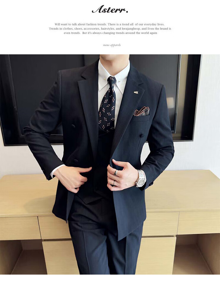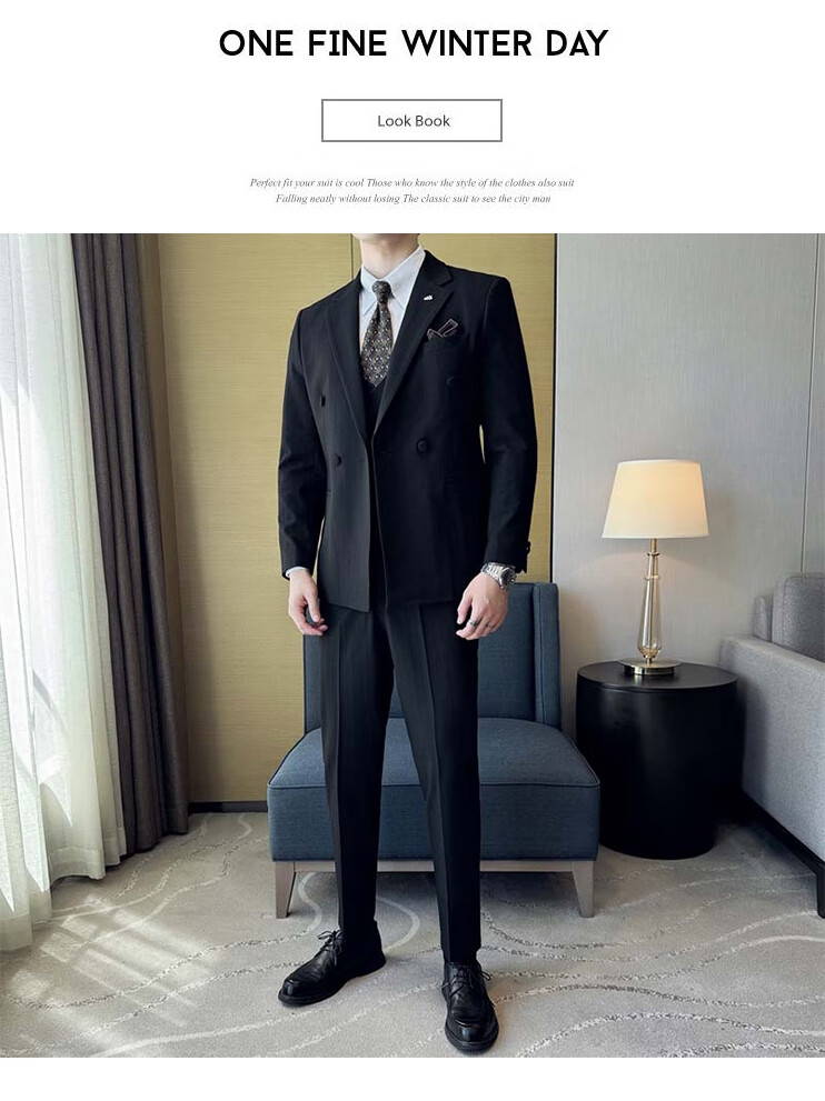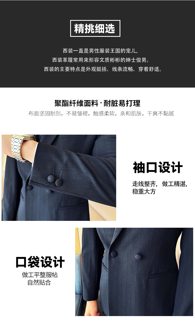 ROMON Light luxury haute couture groom wedding suit male British slim dress business formal striped suit dark coffee color # (suit + trousers) L