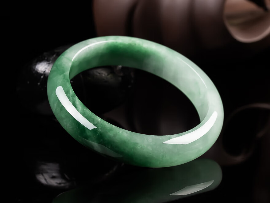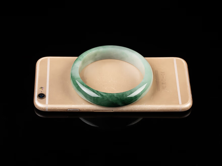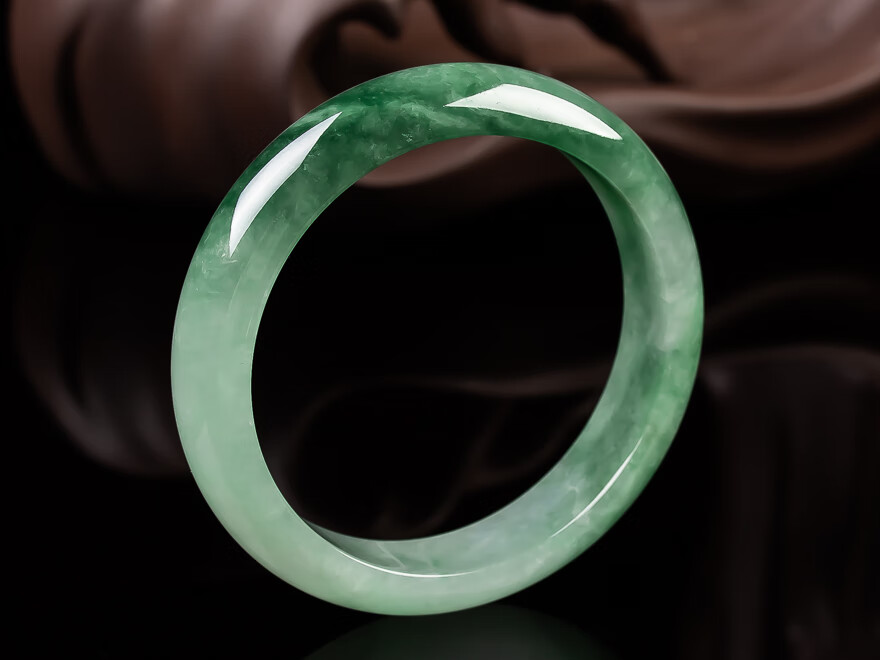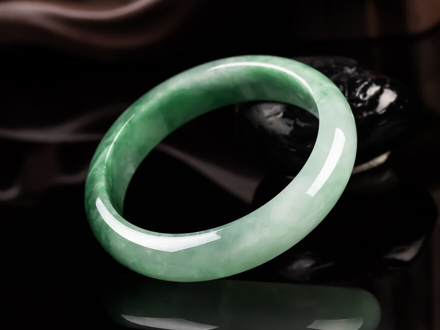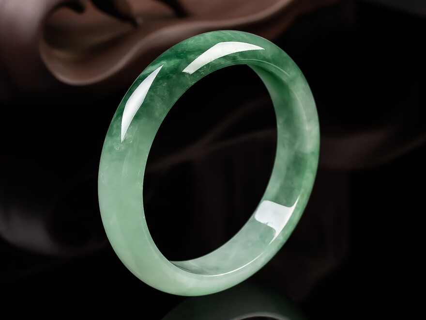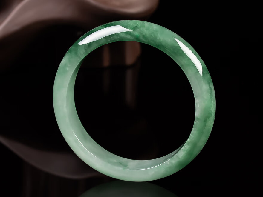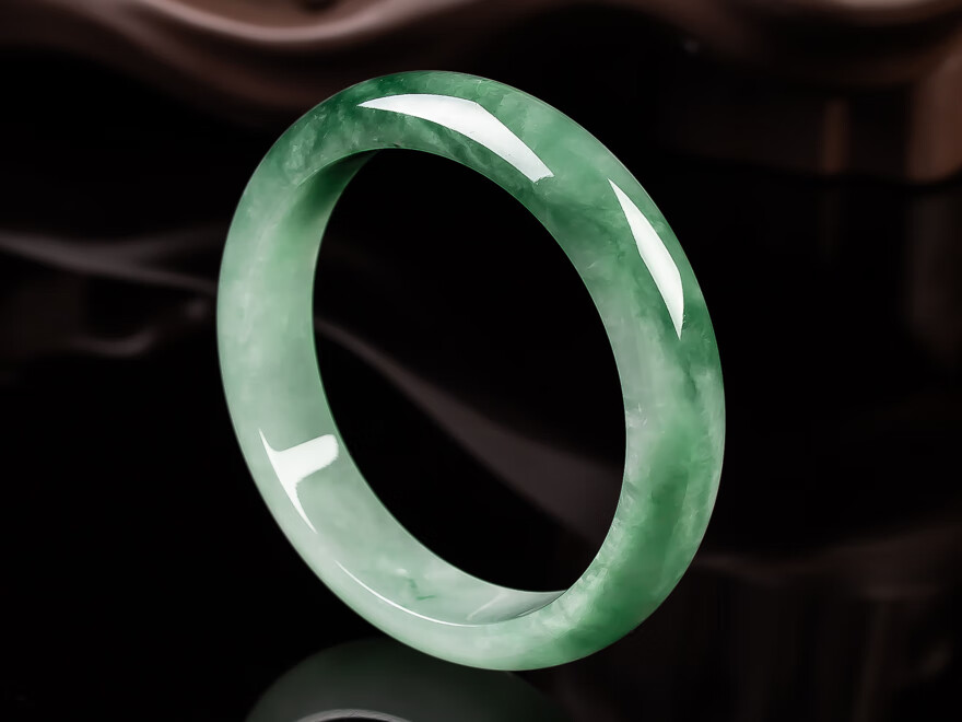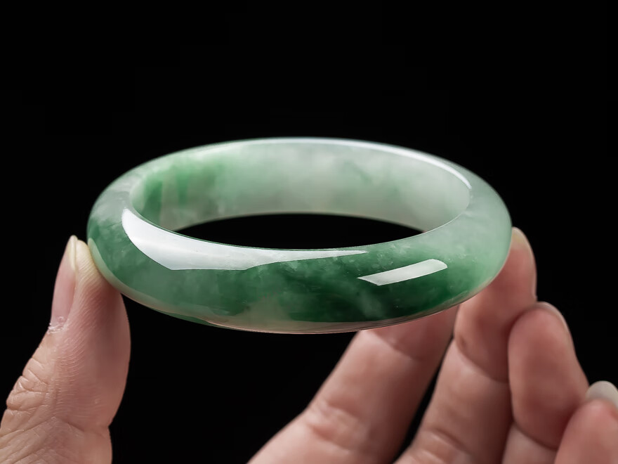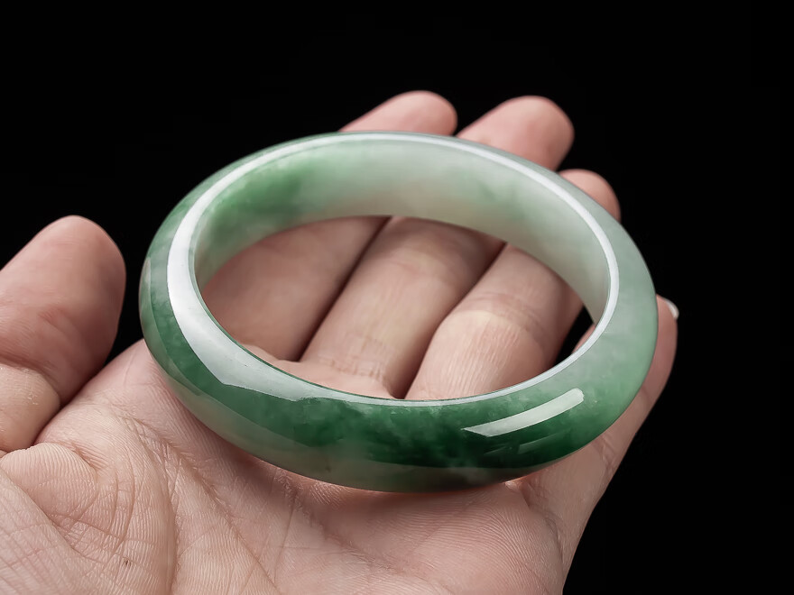 Private oil green half mountain and half water jadeite bracelet for women Burmese ice waxy jadeite (processed) jade bracelet as a gift for mother. The inner diameter of the bracelet is 54-55mm.