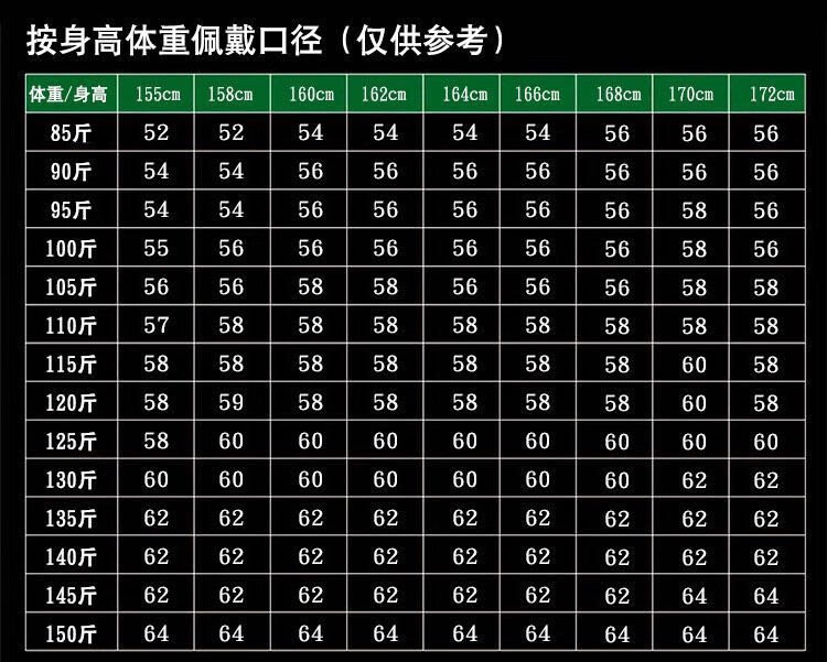 China (cm) 165 / 88-90 170 / 96-98 175 / 108-110 180 / 118-122 185 / 126-130