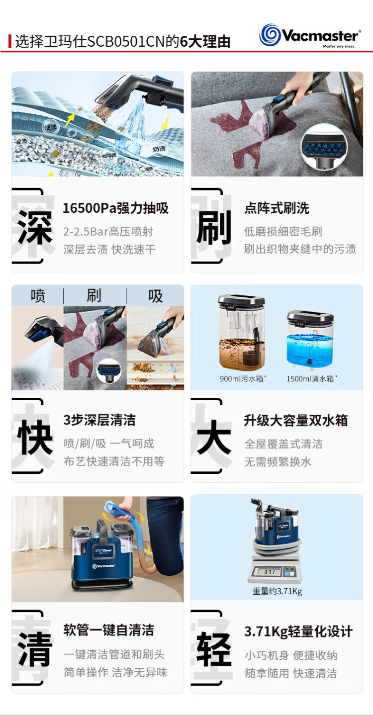 Vacmaster American Vacmaster fabric sofa cleaning machine Home soft carpet mattress curtain cleaning machine Technology cloth sofa fabric car multi-functional spray and suction all-in-one machine Fabric sofa carpet mattress pet cleaning machine