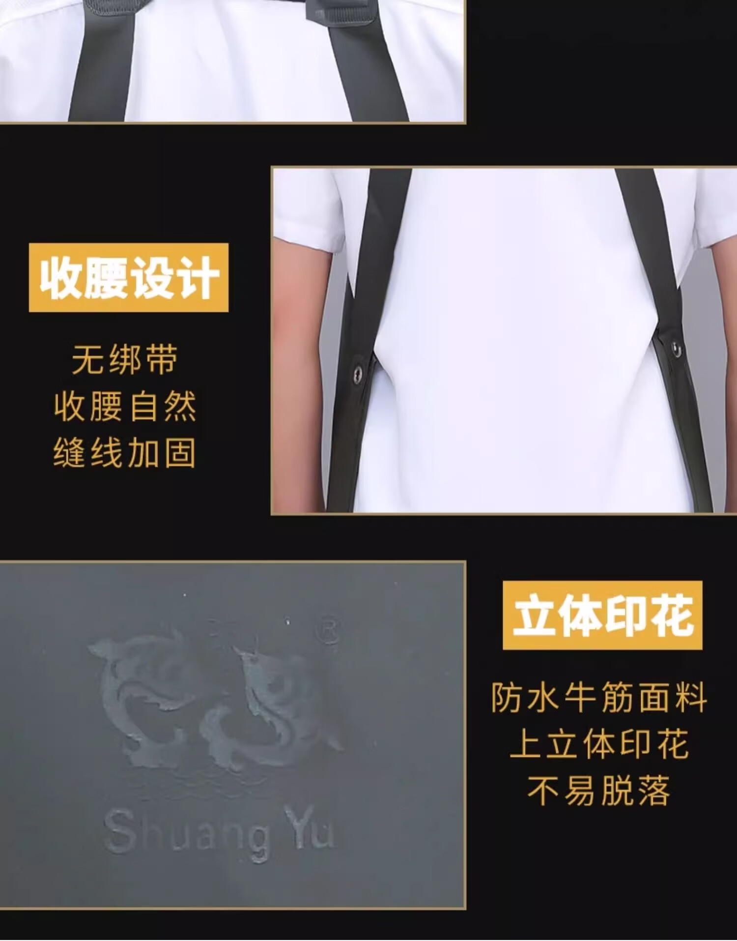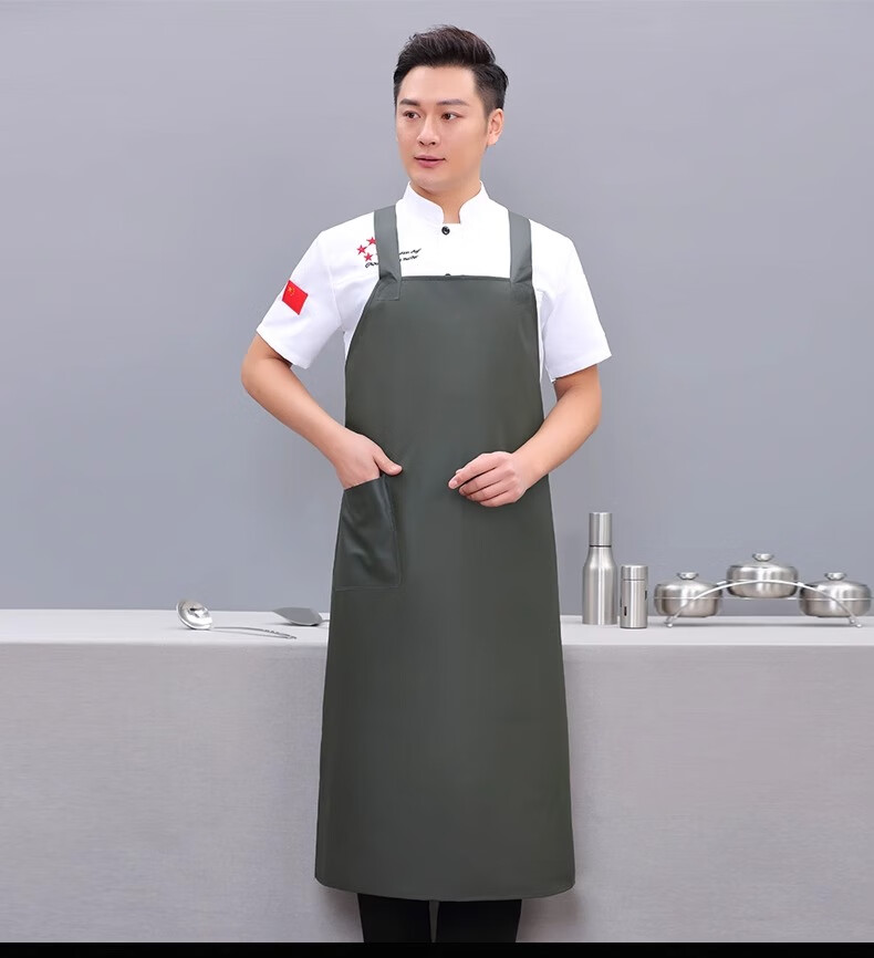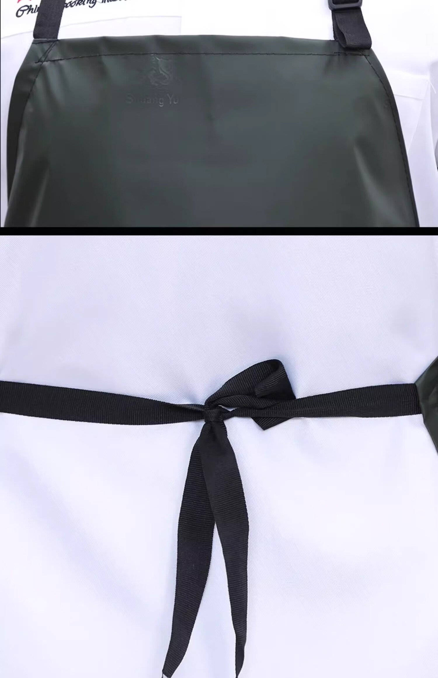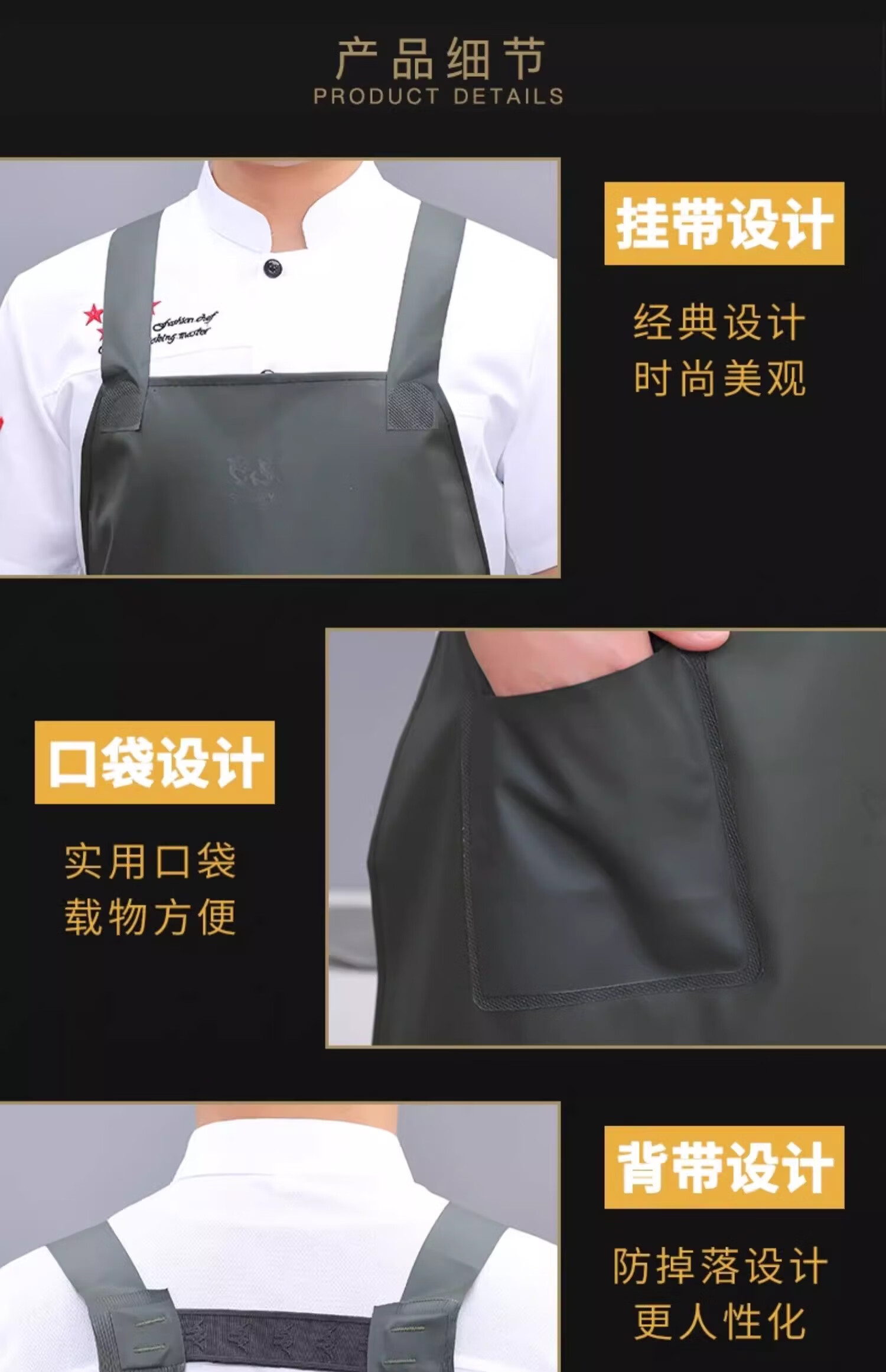 Huicai shirt beef tendon waterproof apron for aquatic products PU soft leather meal restaurant kitchen dishwashing fish butchering overalls apron SC plastic shoulder apron gray