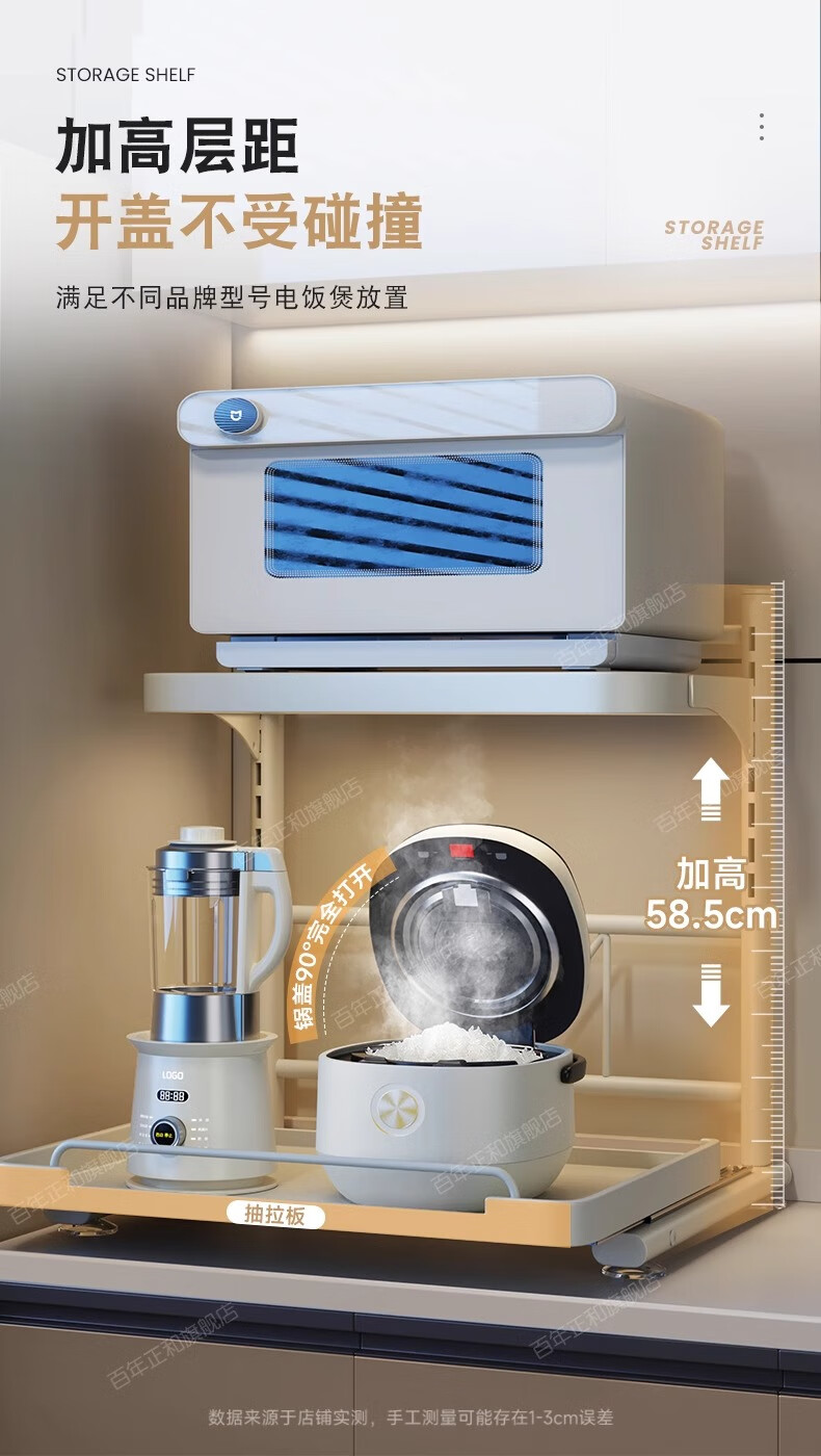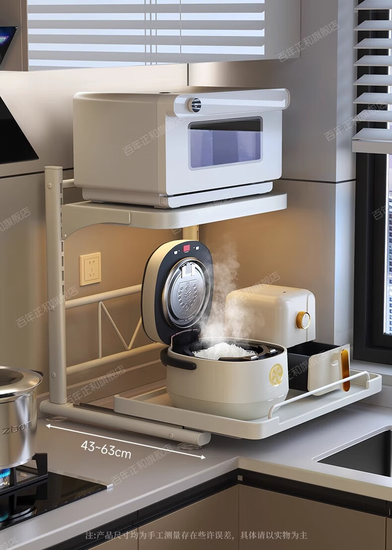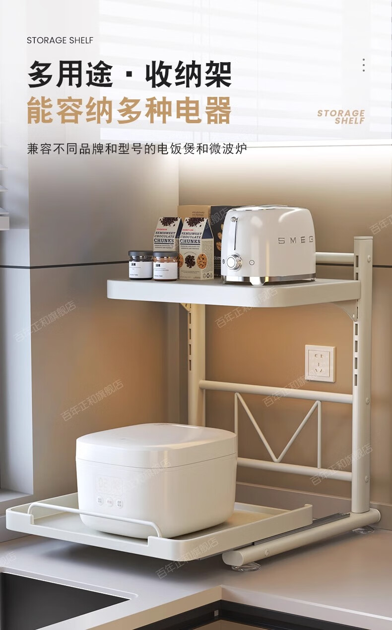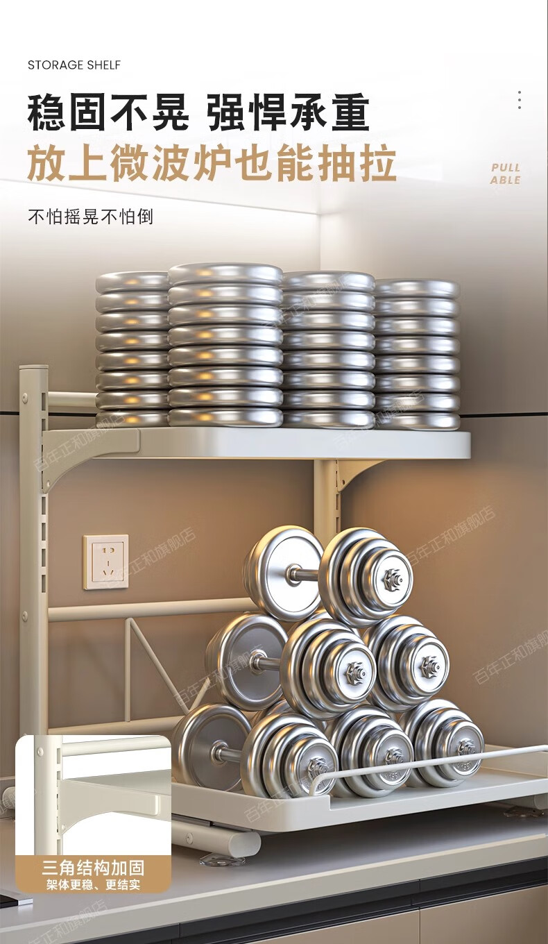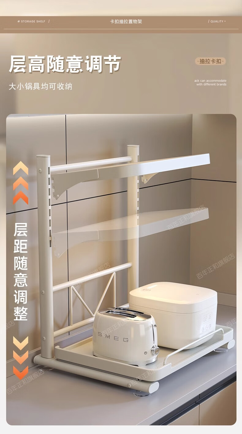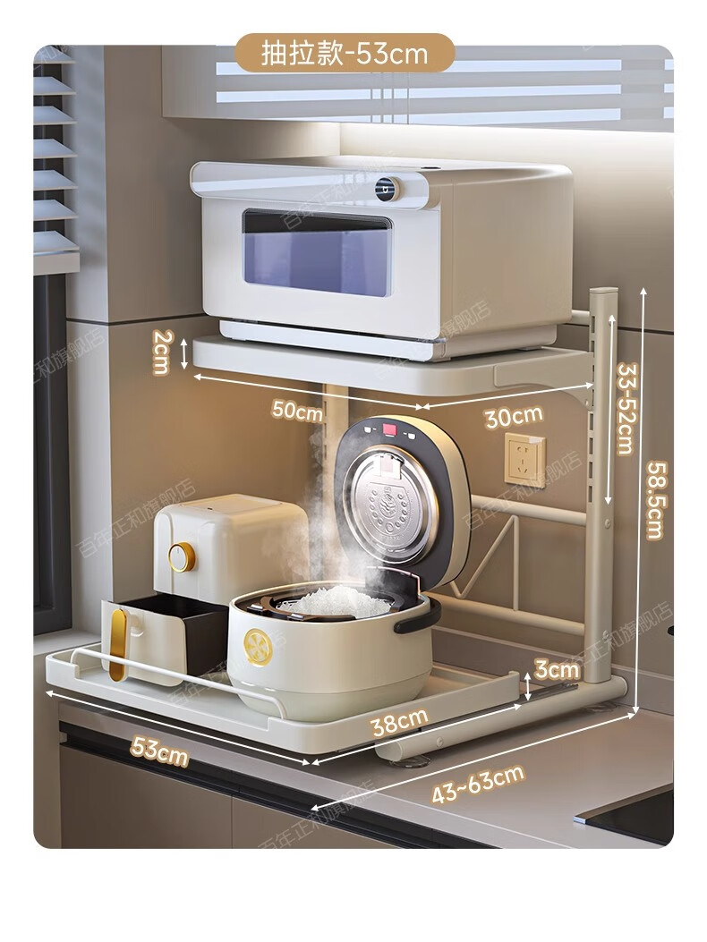 Century-old Zhenghe kitchen storage rack countertop microwave oven rack pull-out oven rack household multi-layer kitchen storage rack 53cm milk white with pull-out height adjustable