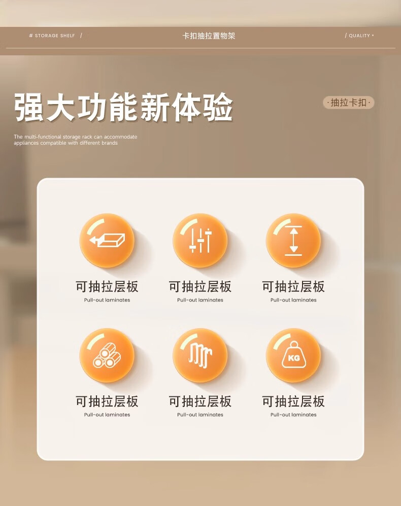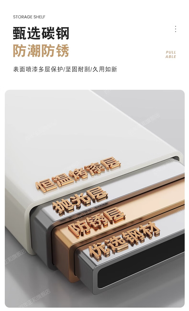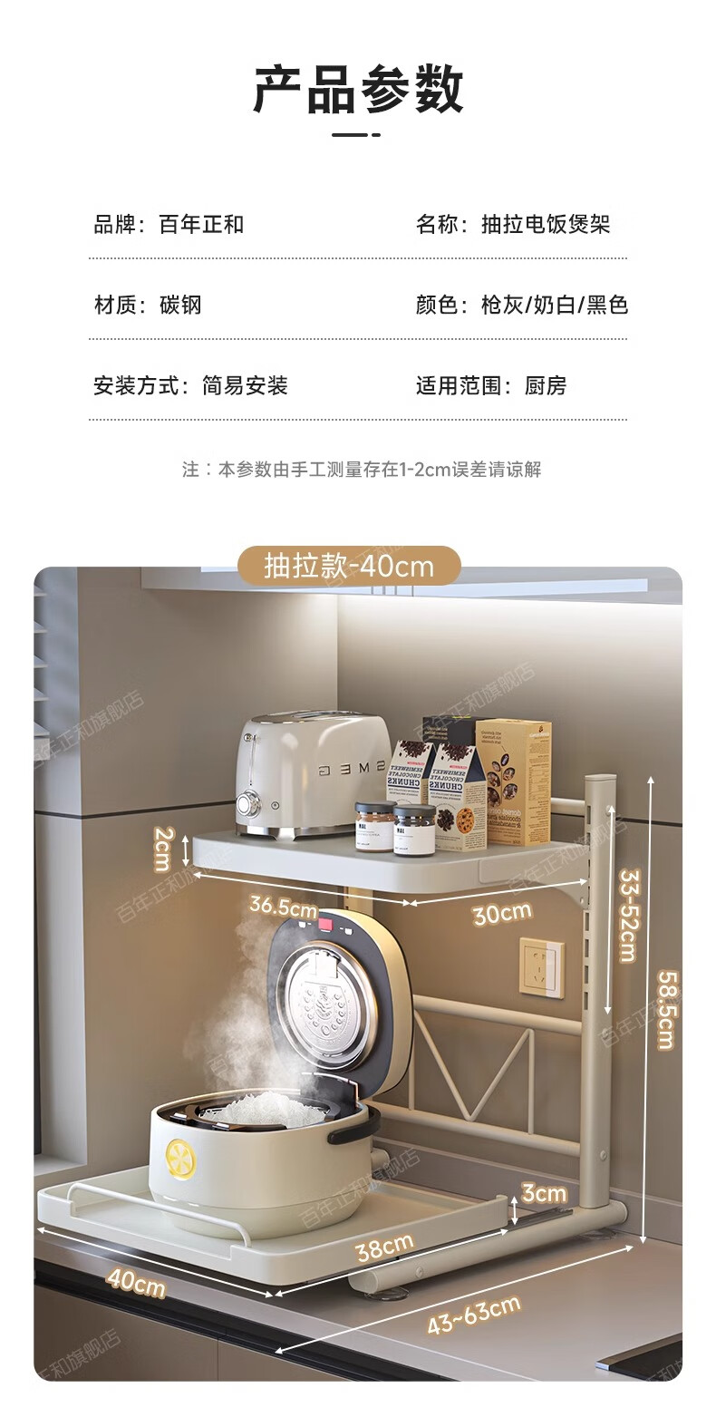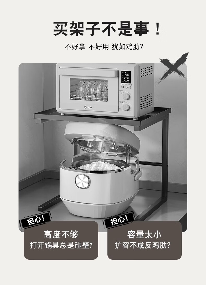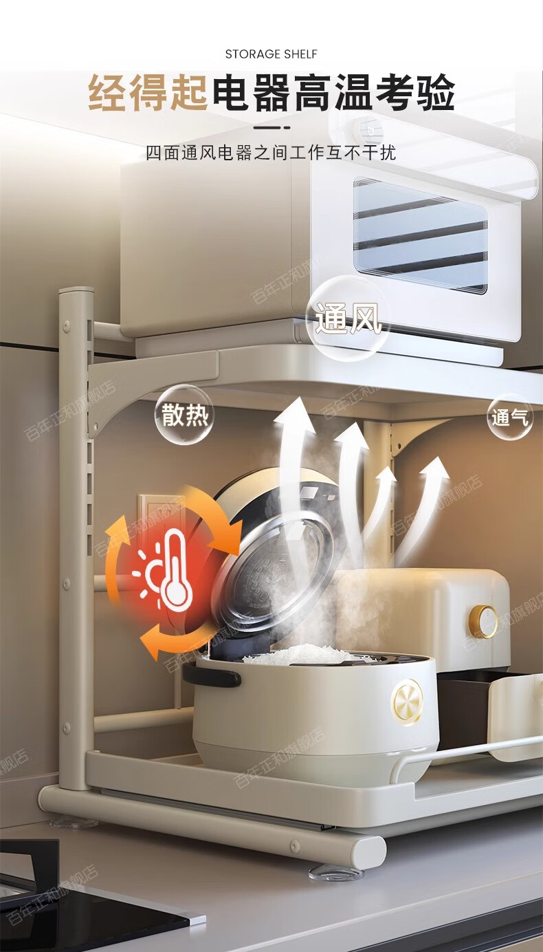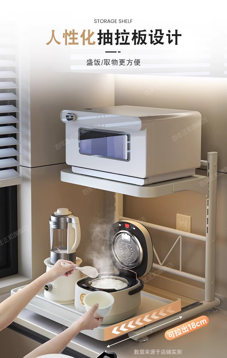 Century-old Zhenghe kitchen storage rack countertop microwave oven rack pull-out oven rack household multi-layer kitchen storage rack 53cm milk white with pull-out height adjustable