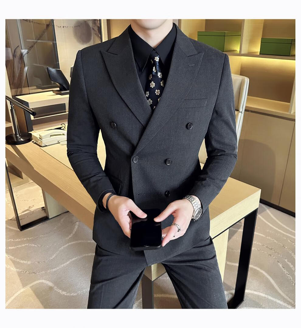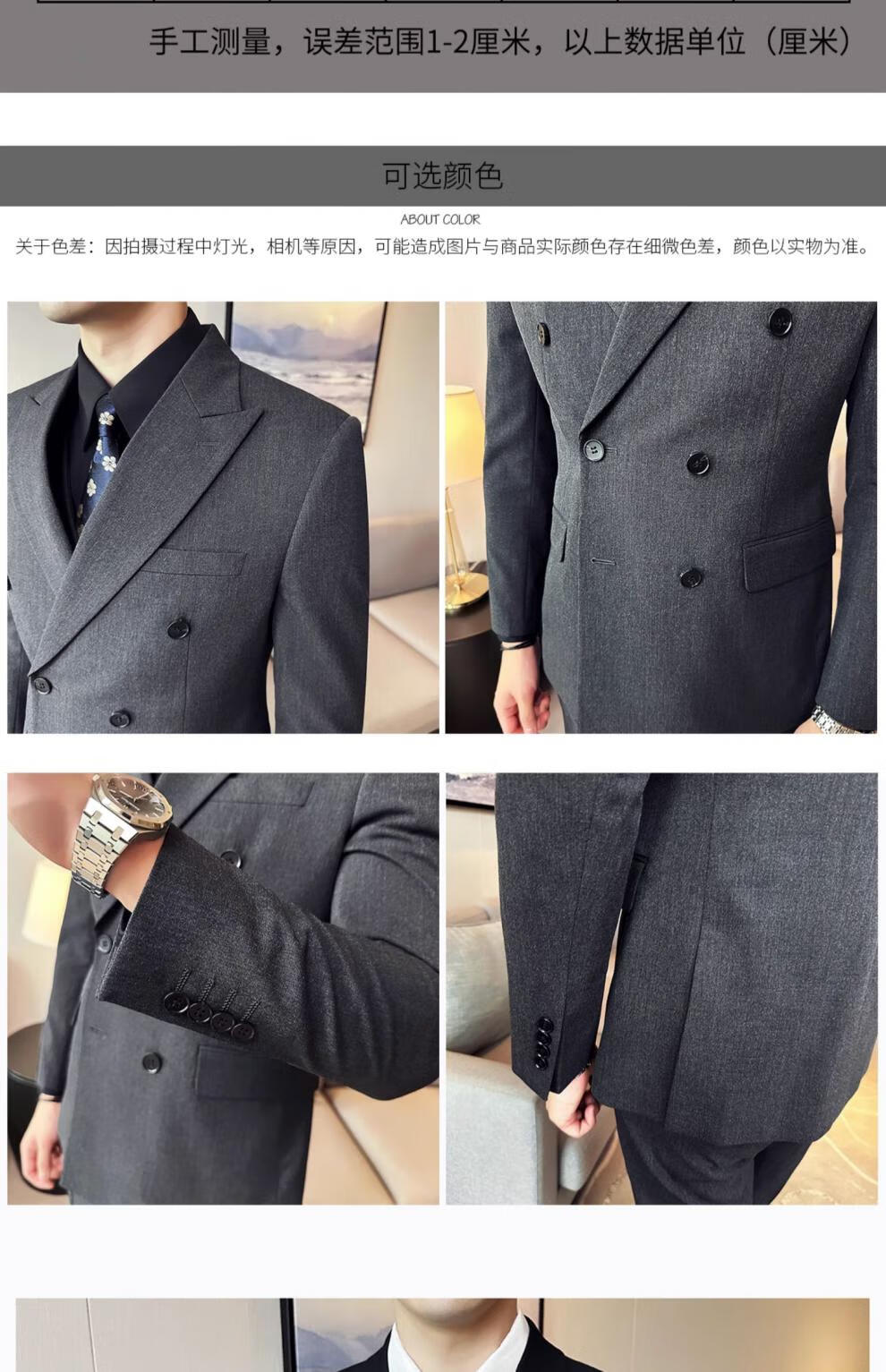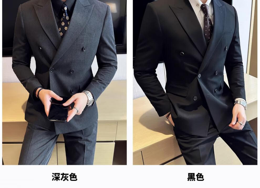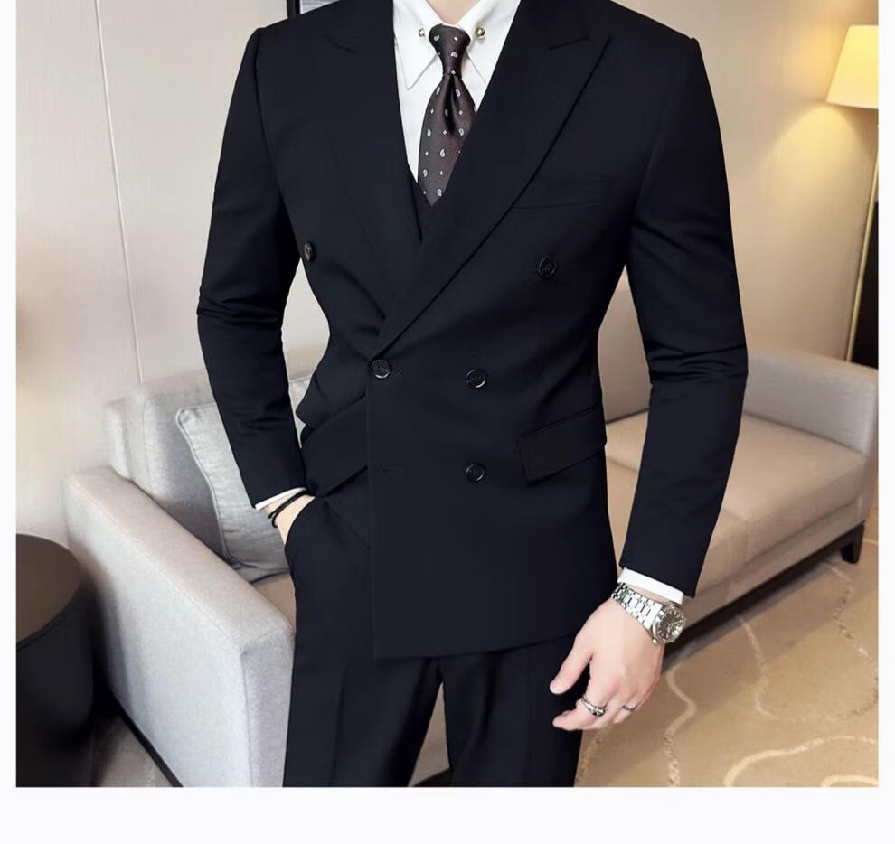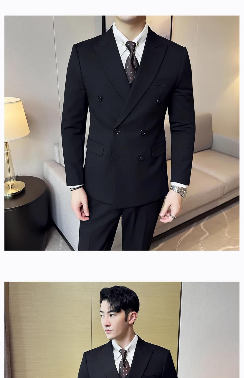 ROMON high-end double-breasted suit men's Korean version slim-fit groom's wedding dress sense business casual suit jacket black suit XL
