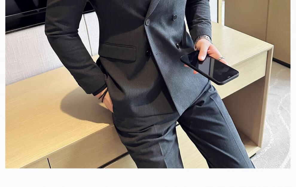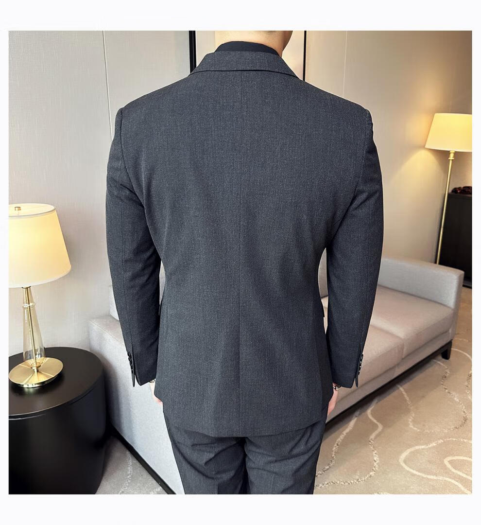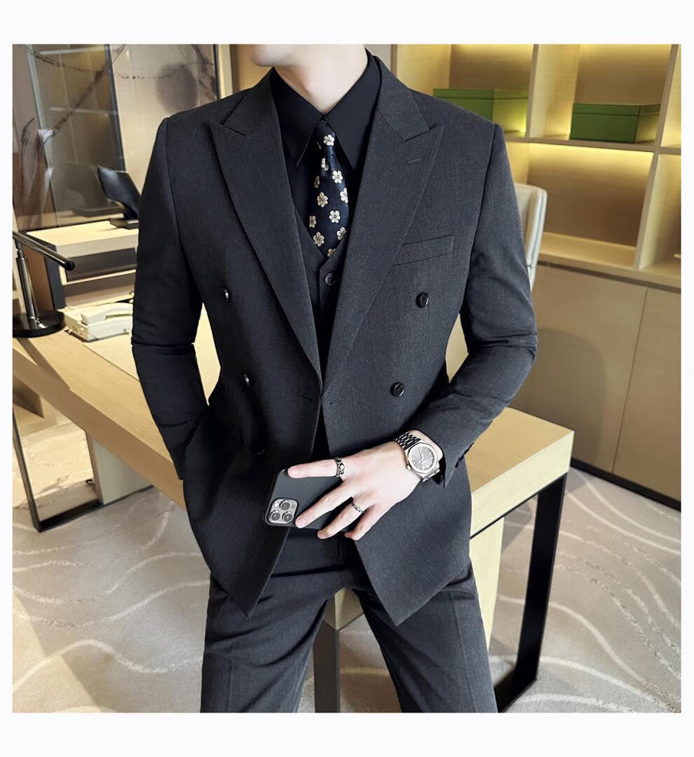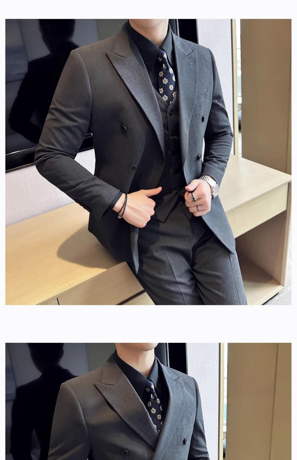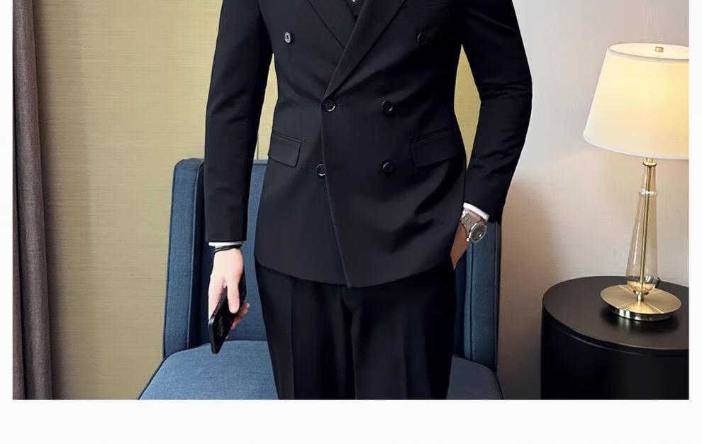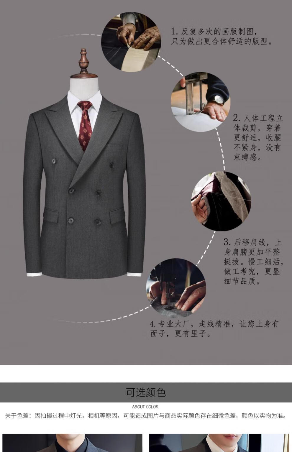 ROMON high-end double-breasted suit men's Korean version slim-fit groom's wedding dress sense business casual suit jacket black suit XL