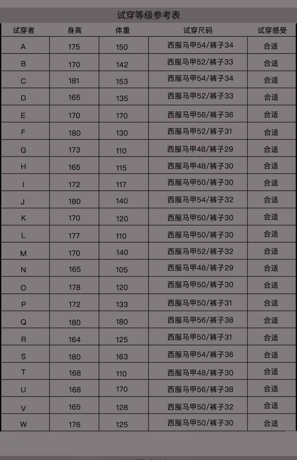 China (cm) 160-165/84-86 165-170 / 88-90 167-172 / 92-96 168-173 / 98-102 170-176 / 106-110