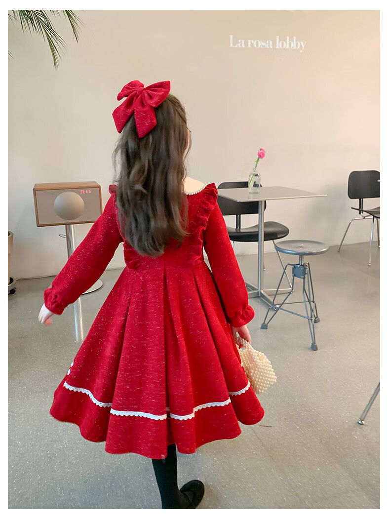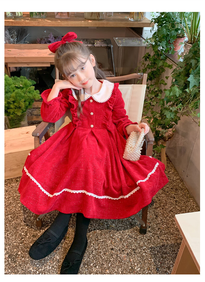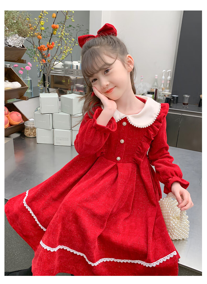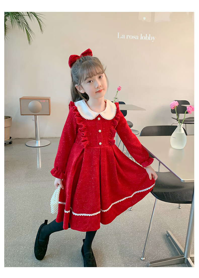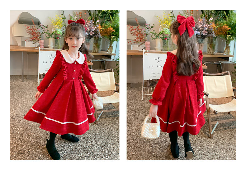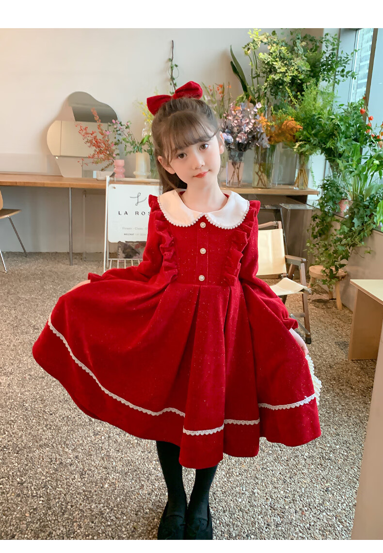 Anneyol girls autumn and winter dress 2026 new autumn and winter little girl princess dress autumn children's long-sleeved skirt red velvet 130