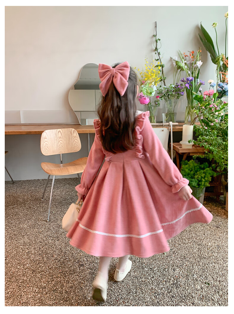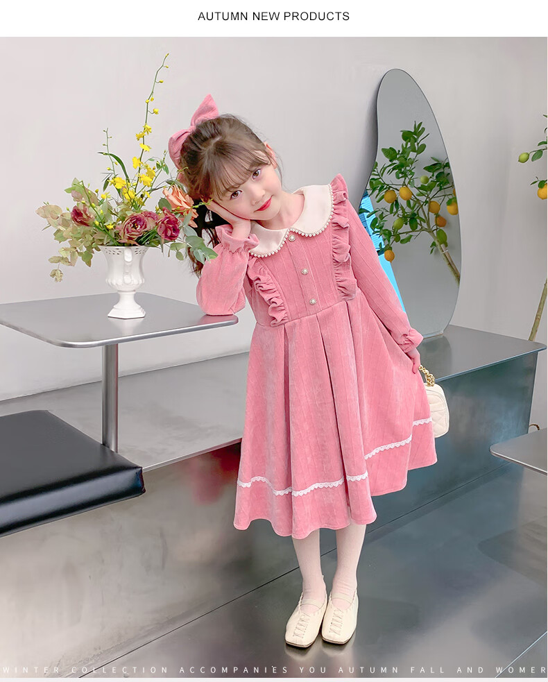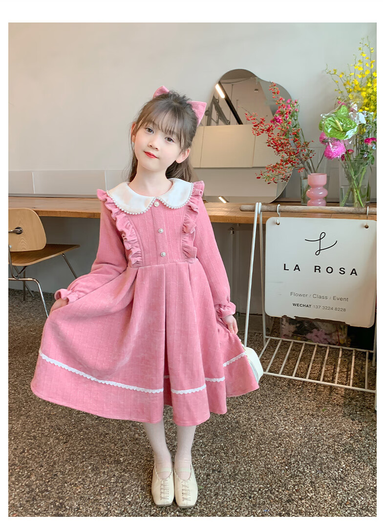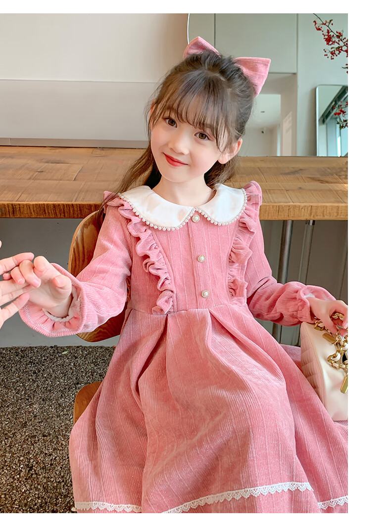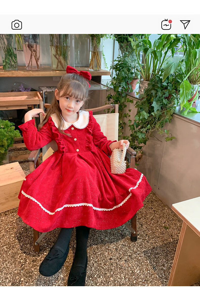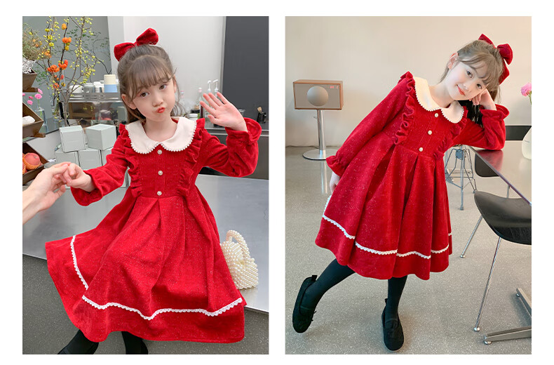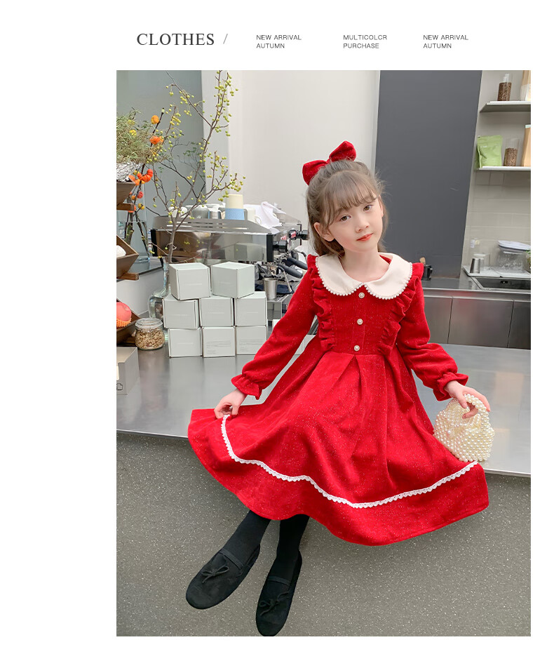 Anneyol girls autumn and winter dress 2026 new autumn and winter little girl princess dress autumn children's long-sleeved skirt red velvet 130