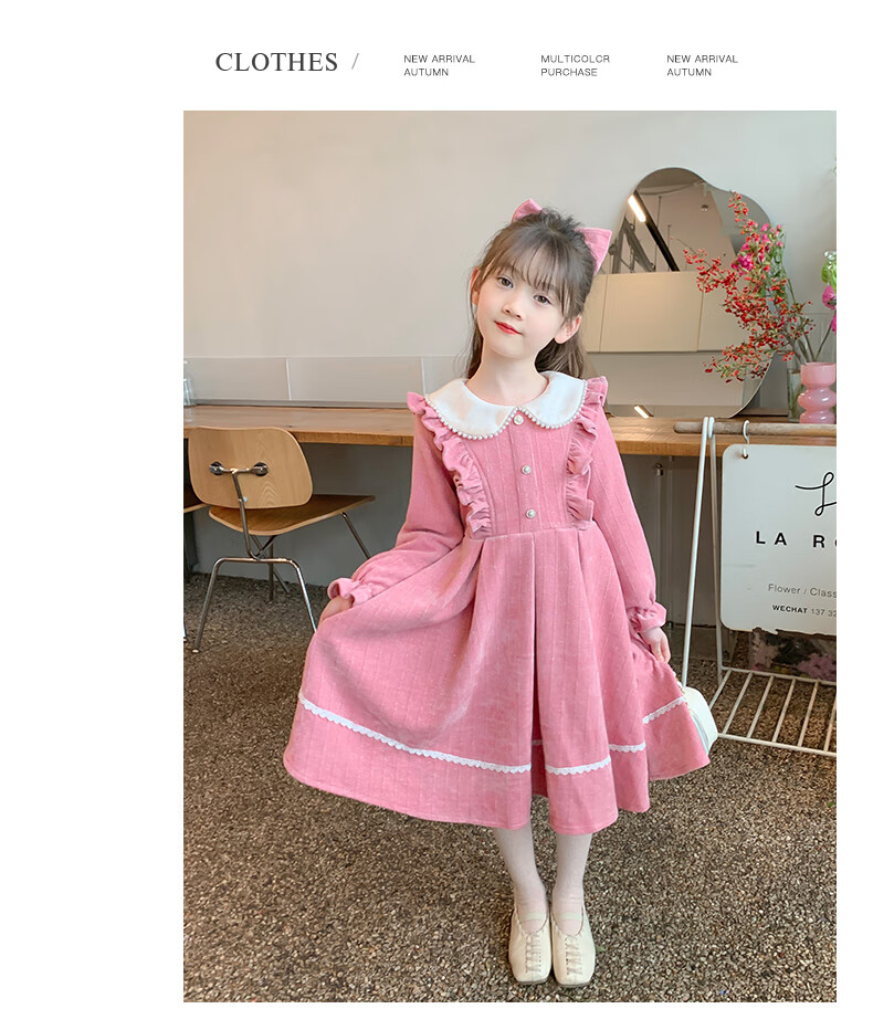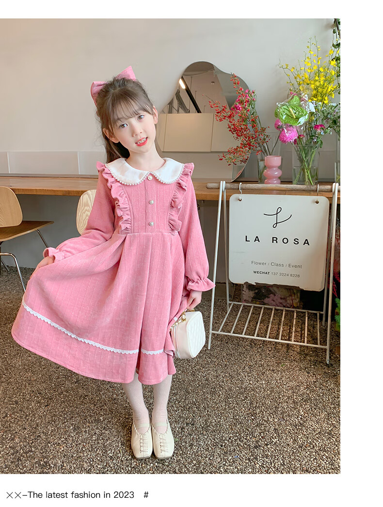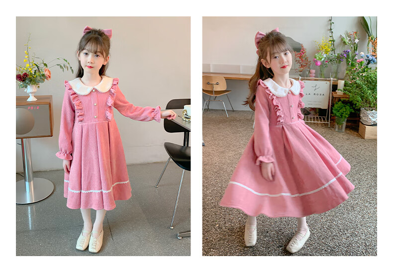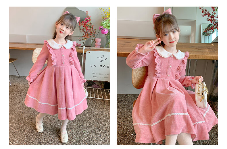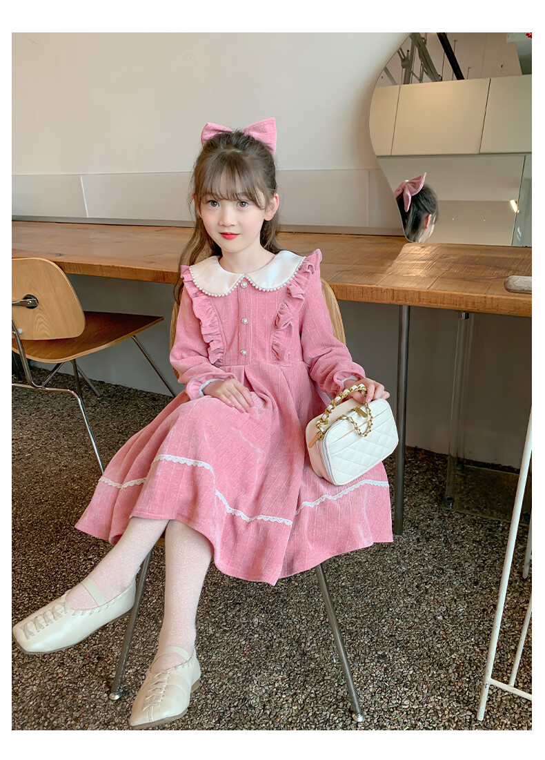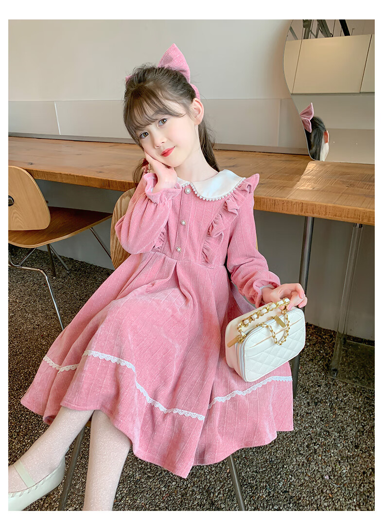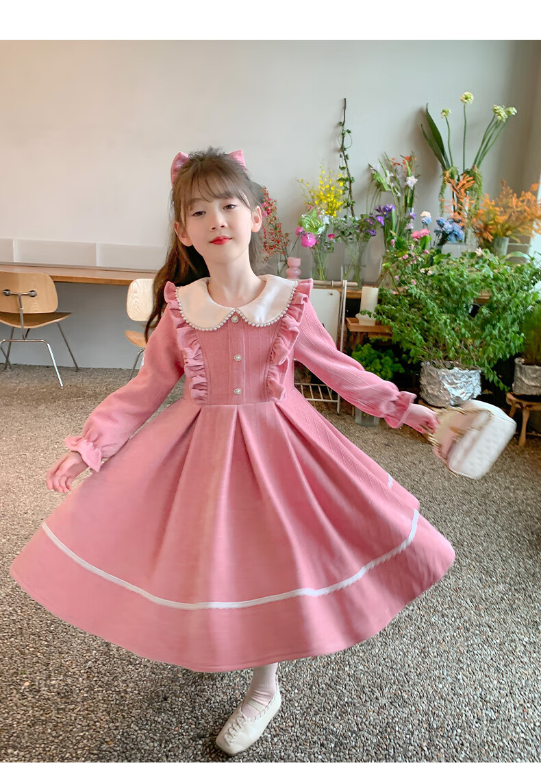 Anneyol girls autumn and winter dress 2026 new autumn and winter little girl princess dress autumn children's long-sleeved skirt red velvet 130