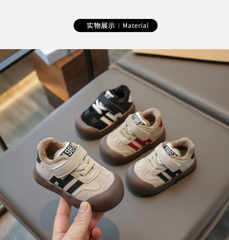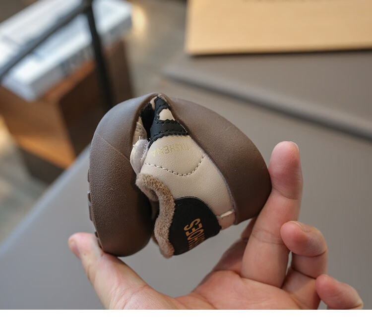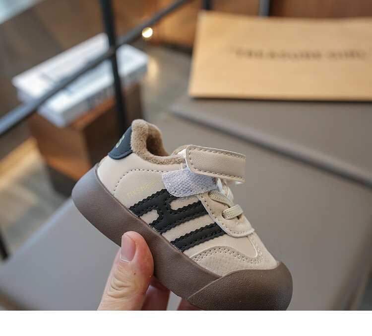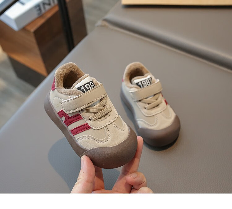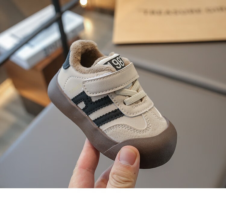 G.DUCKKIDS Little Yellow Duck Infant Cotton Shoes Winter New Baby Shoes Men's Sports Shoes Plus Velvet Toddler Shoes for Girls 1 to 3 Years Old Beige 25 Inner Length 15.5cm