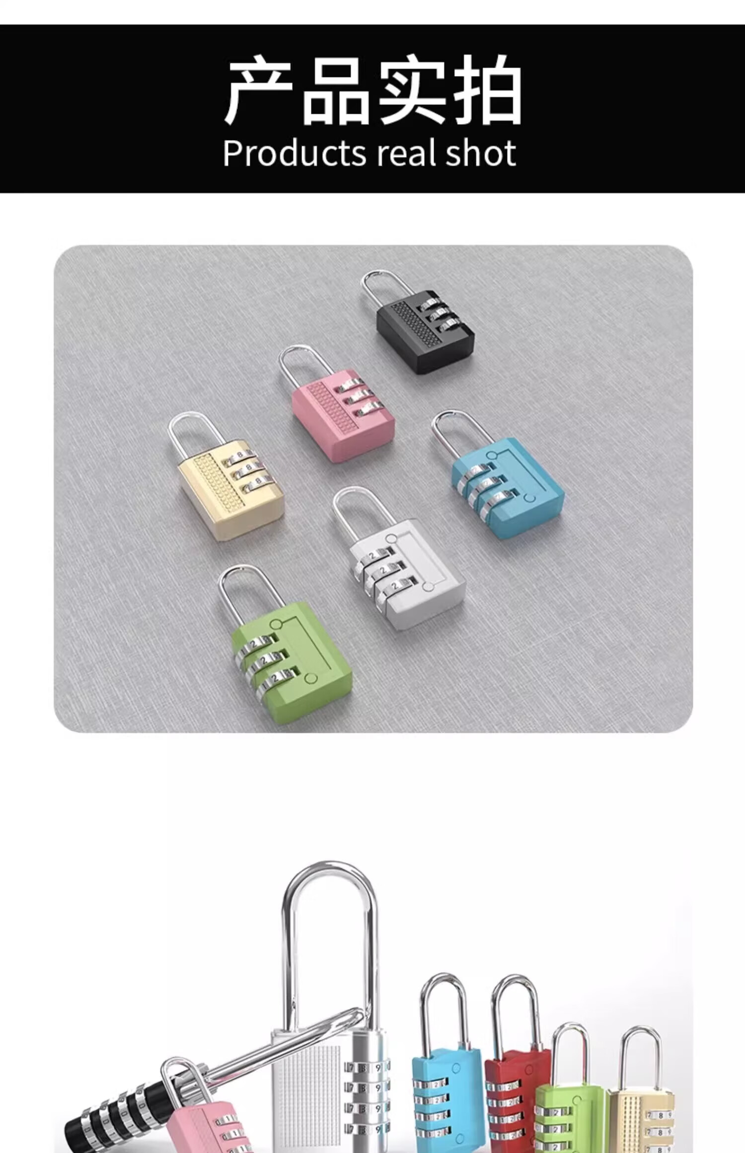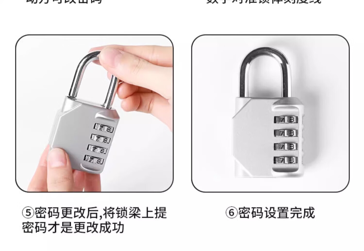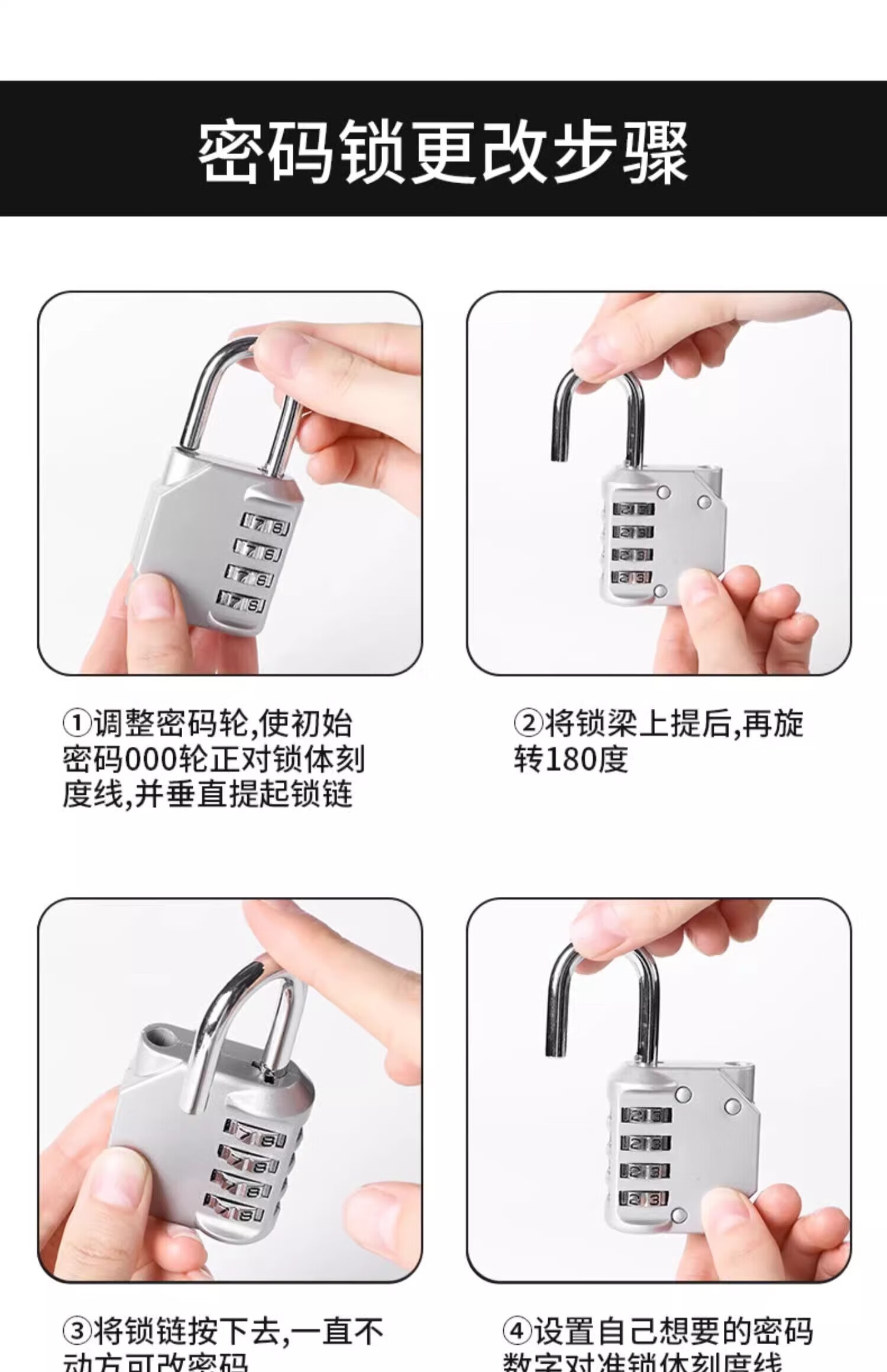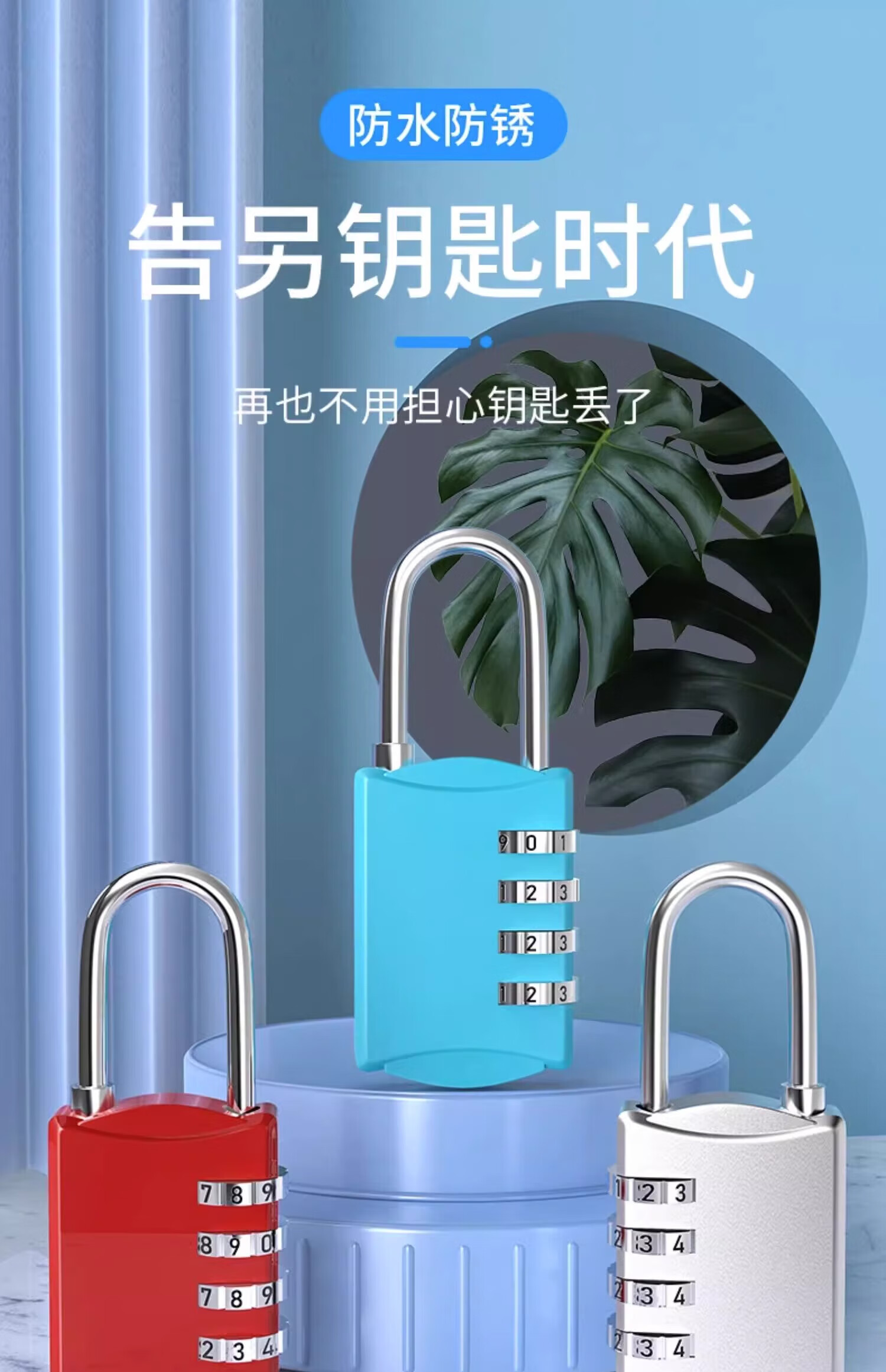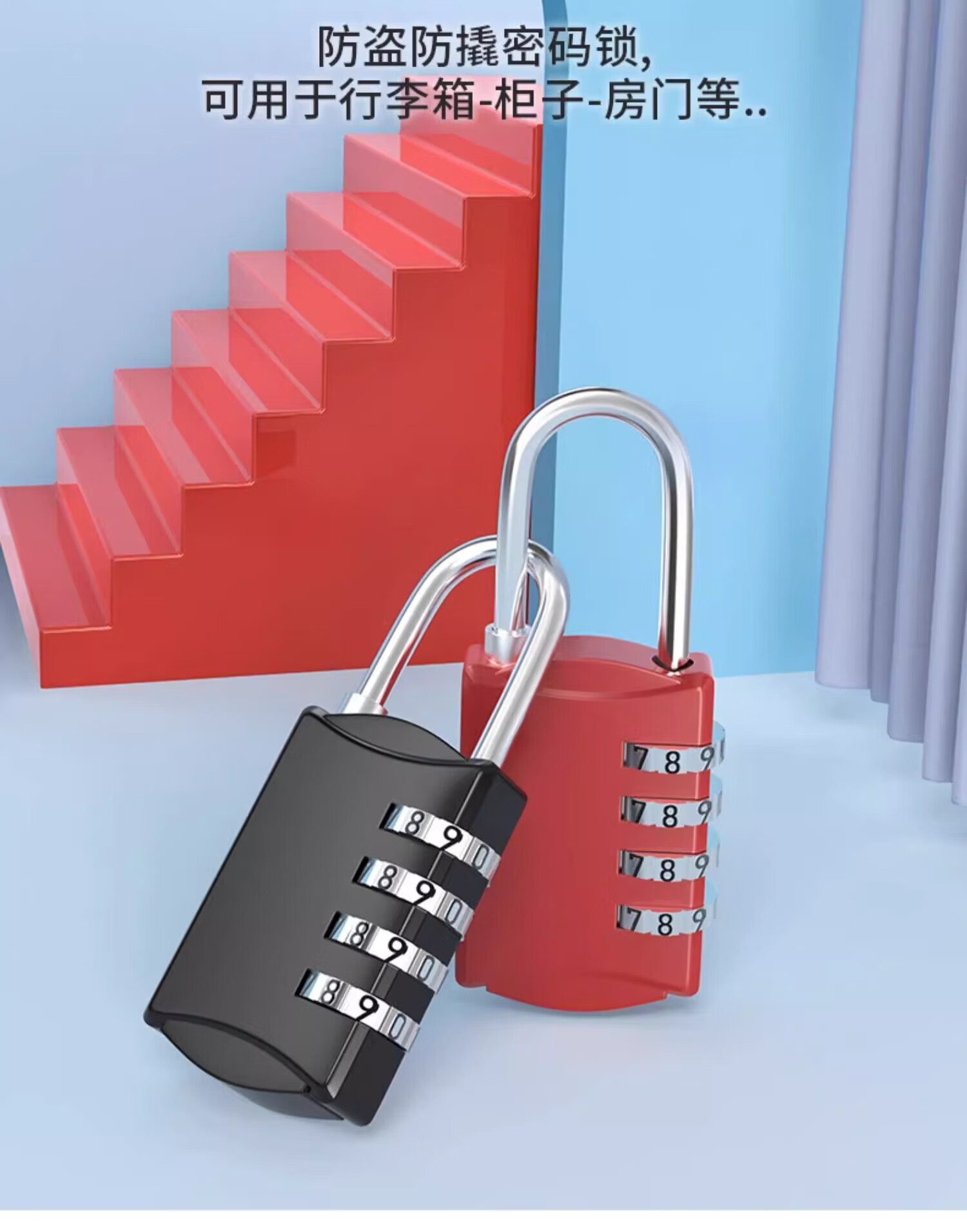 Metal combination lock, small padlock, anti-theft lock, suitcase, household cabinet, mini small lock, lock set, red No. 3 four-digit combination lock