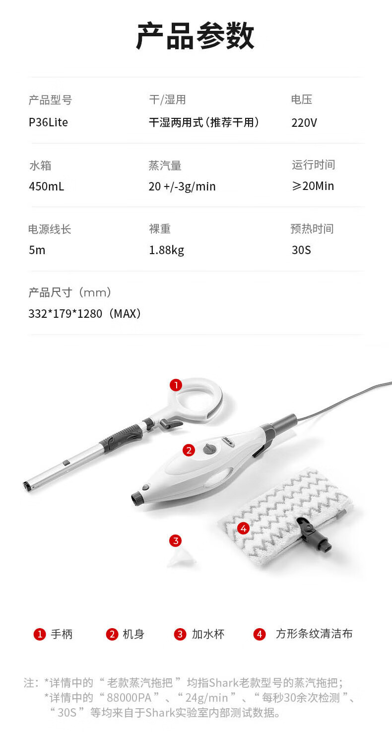 Shark new product Shark steam mop p4air non-wireless high temperature sterilization steam cleaner P36lite P36lite high configuration (send 3 pieces of cloth)