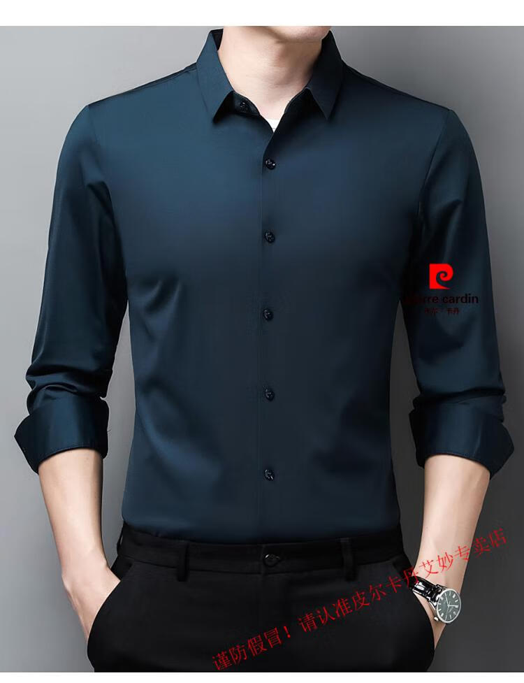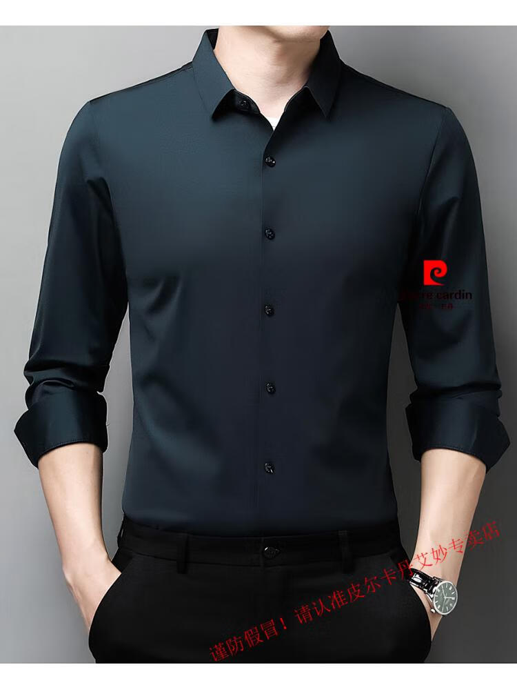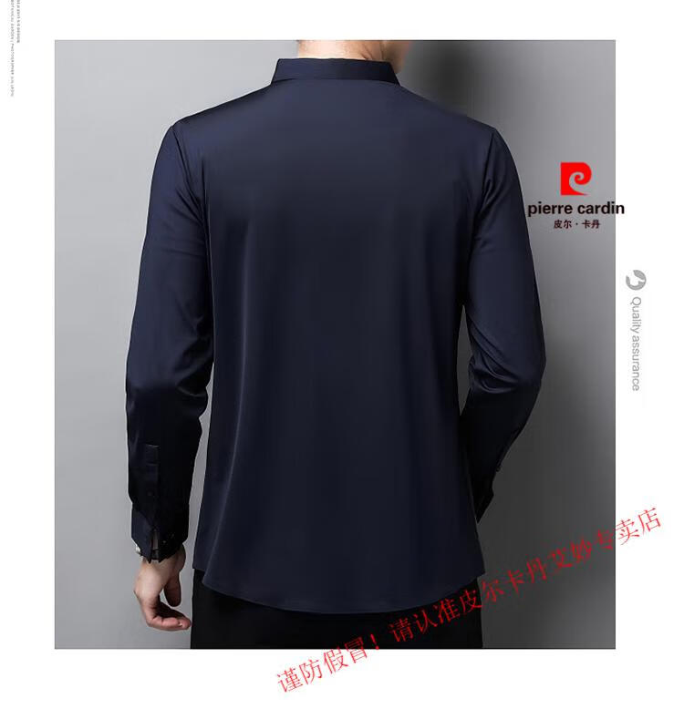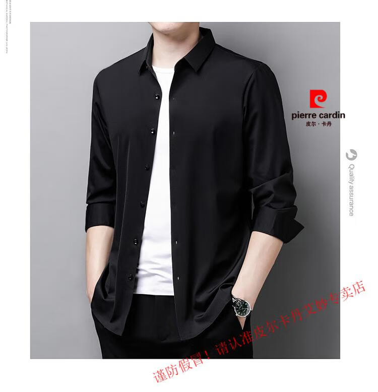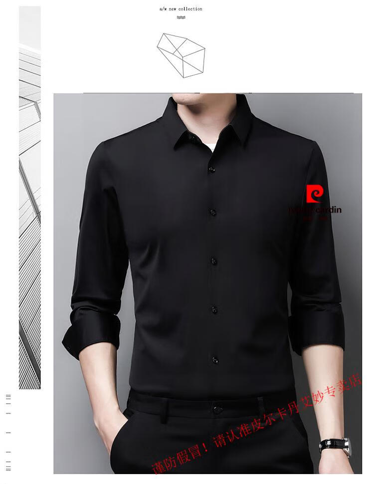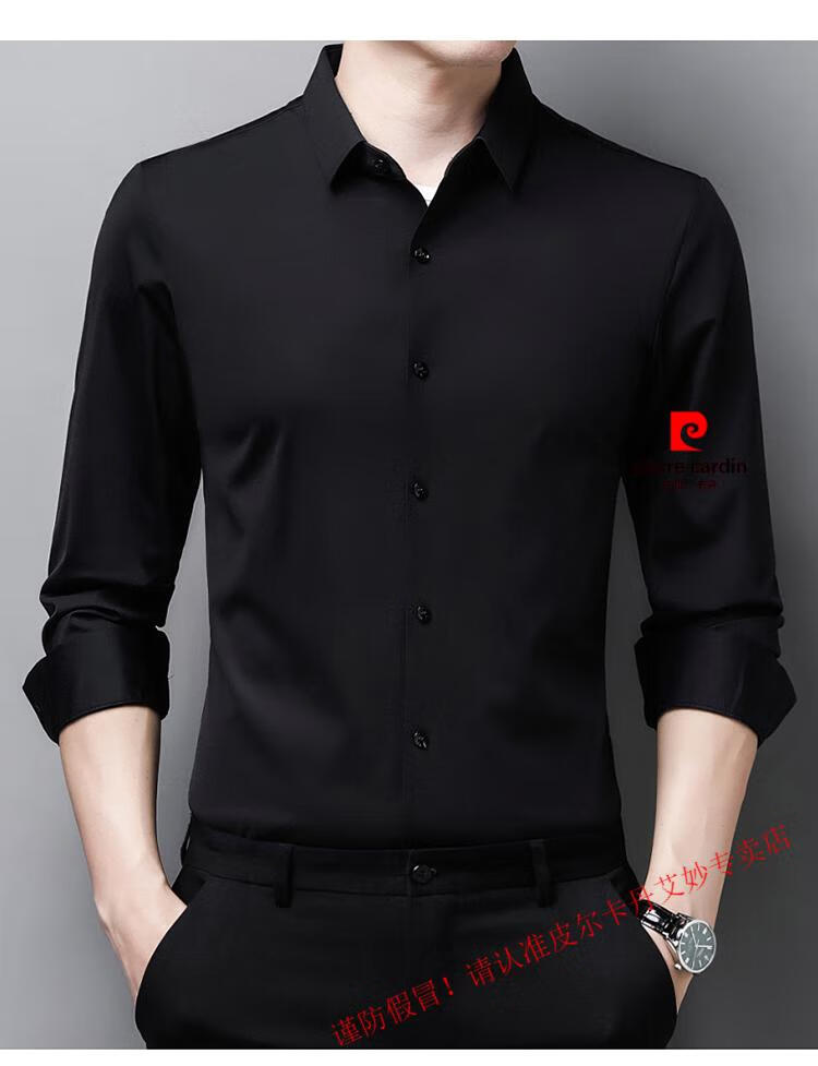 Pierre Cardin mulberry silk delicate skin-friendly long-sleeved shirt men's spring and autumn new style seamless no-iron anti-wrinkle silk shirt black 175/XL135-155Jin Jin equals 0.5 kg