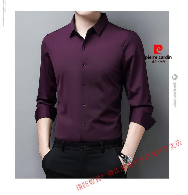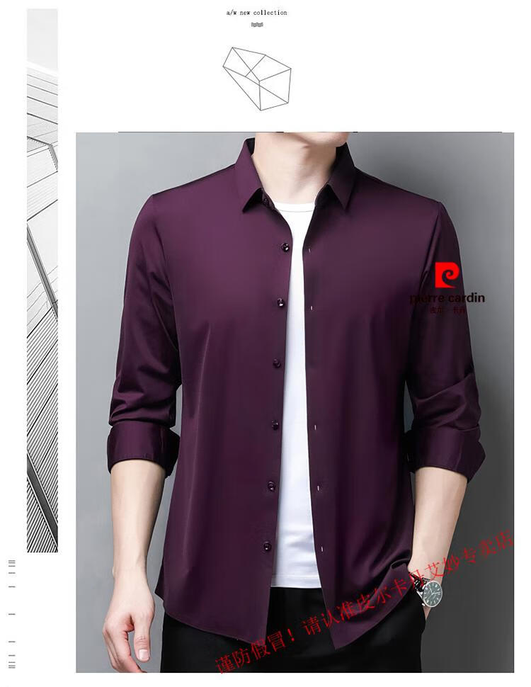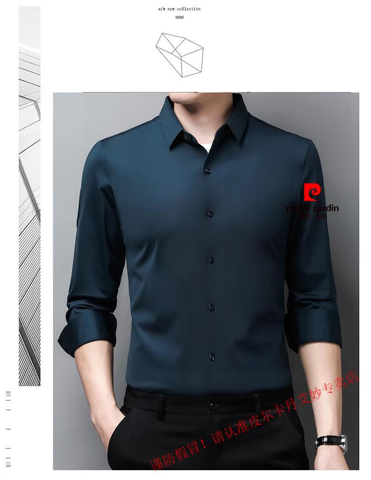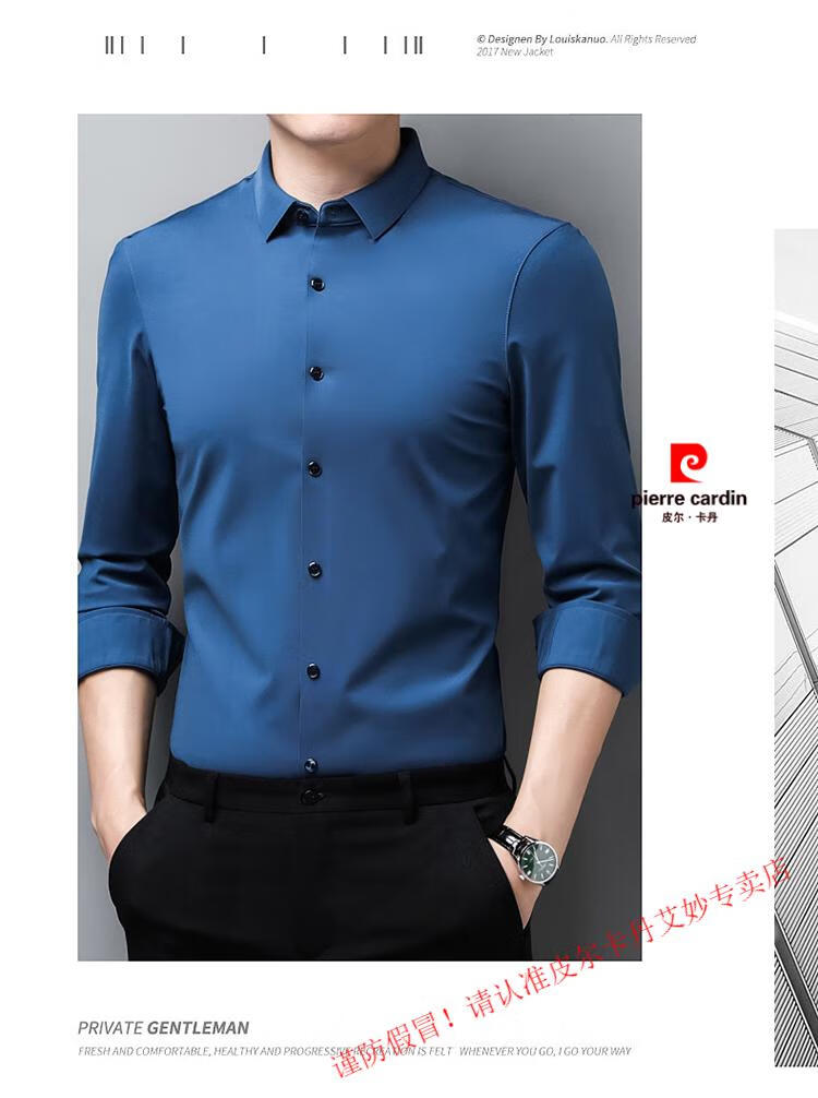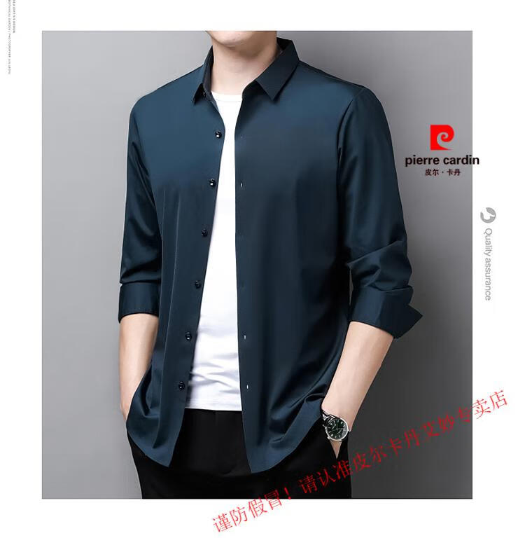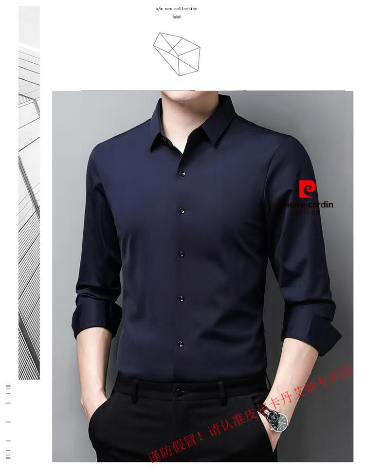 Pierre Cardin mulberry silk delicate skin-friendly long-sleeved shirt men's spring and autumn new style seamless no-iron anti-wrinkle silk shirt black 175/XL135-155Jin Jin equals 0.5 kg