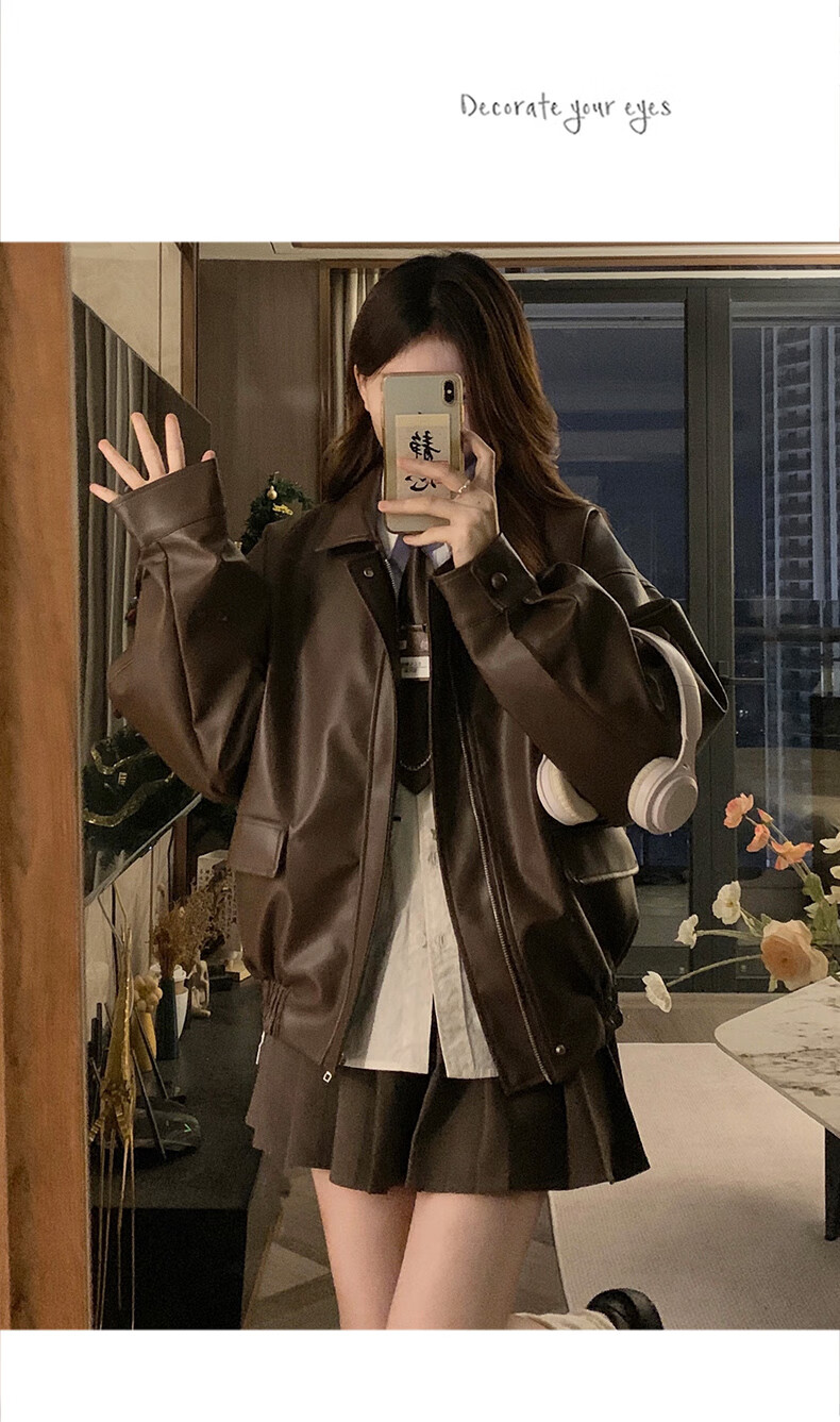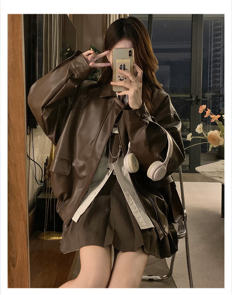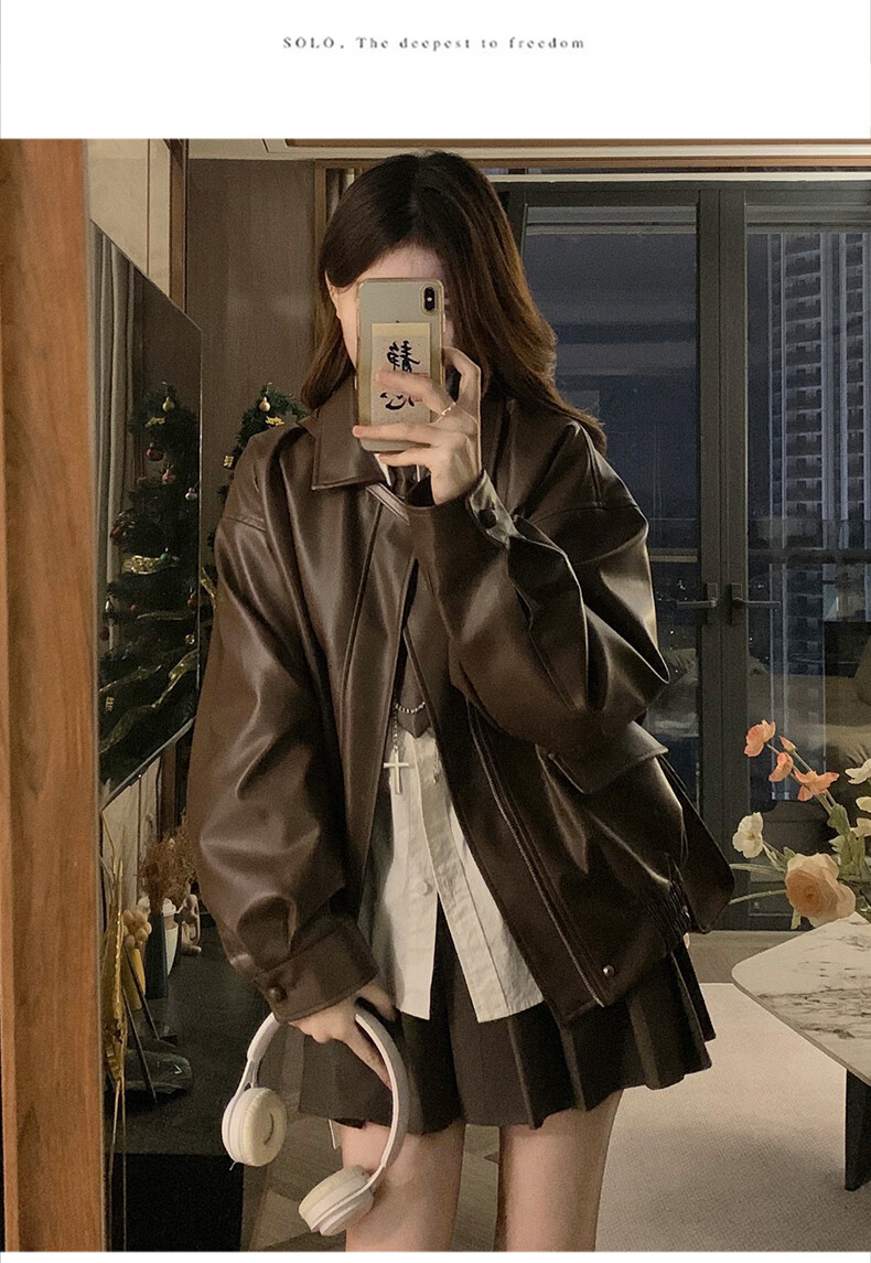 森莲娜(SENLIANNA)2025年春秋冬季最新款皮衣短外套女士装休闲高档时尚开衫上衣服 黑色 M 105-115斤