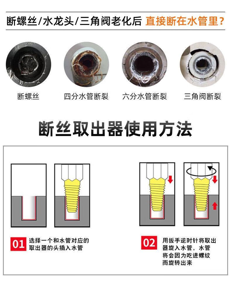 Faucet broken wire extractor triangle valve universal tap anti-thread anti-wire water pipe broken pipe broken head screw wire breaker faucet 4/6 points universal type wire extractor + booster rod