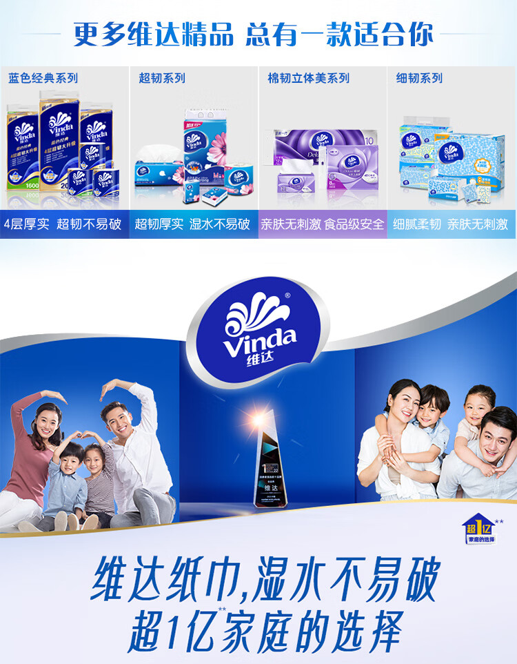Vinda thin tough handkerchief paper portable paper towel napkin toilet paper facial tissue 3 layers 8 pieces * 20 pack