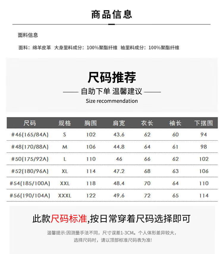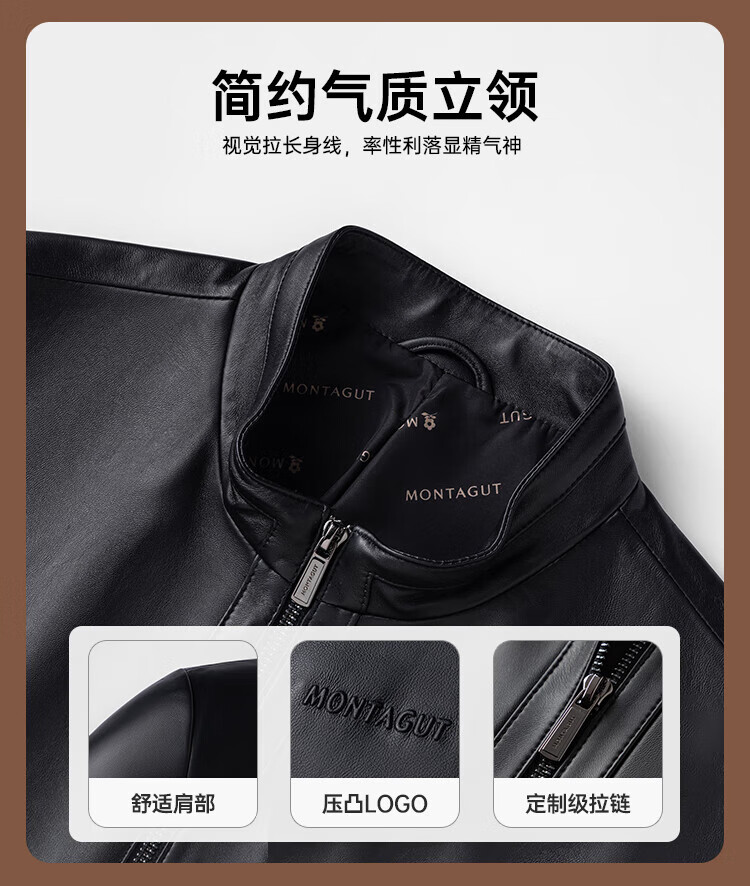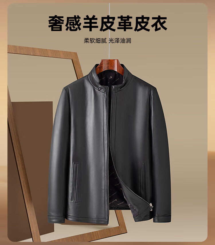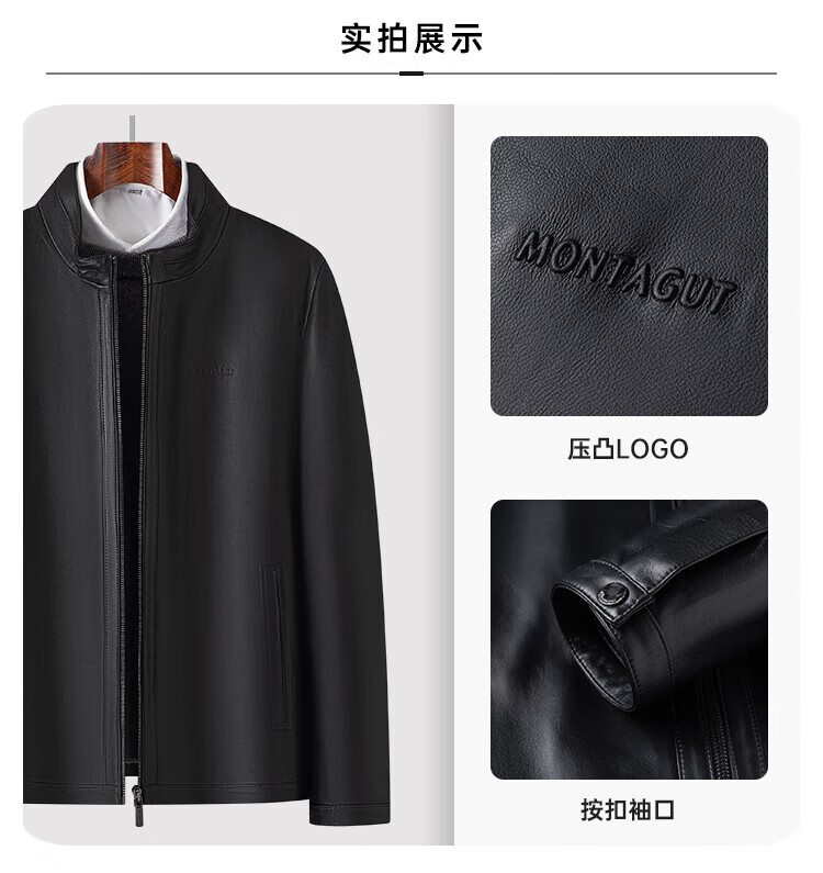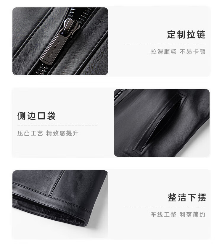 Montagut Sheepskin/Delicate and Soft Leather Jacket Men's Genuine Leather Men's Motorcycle Leather Jacket Autumn New Black M 48