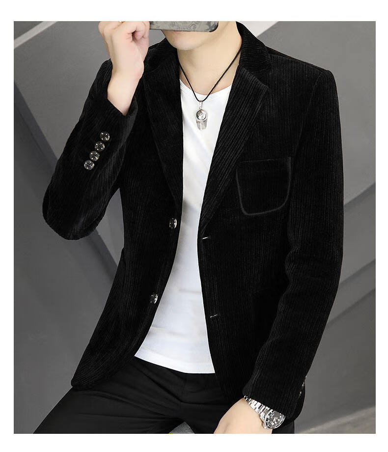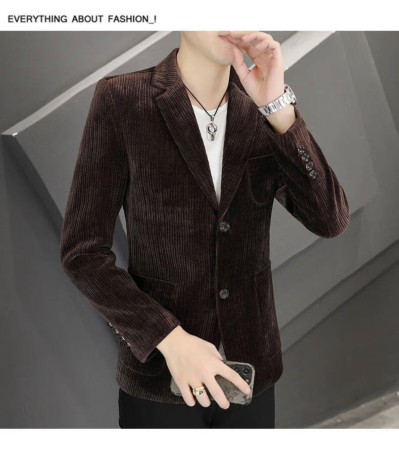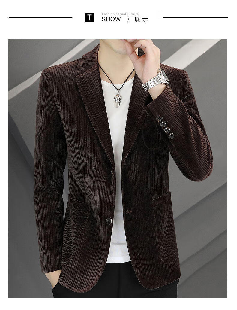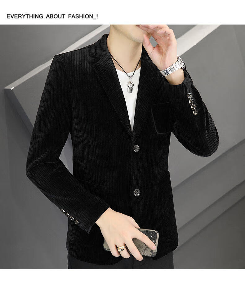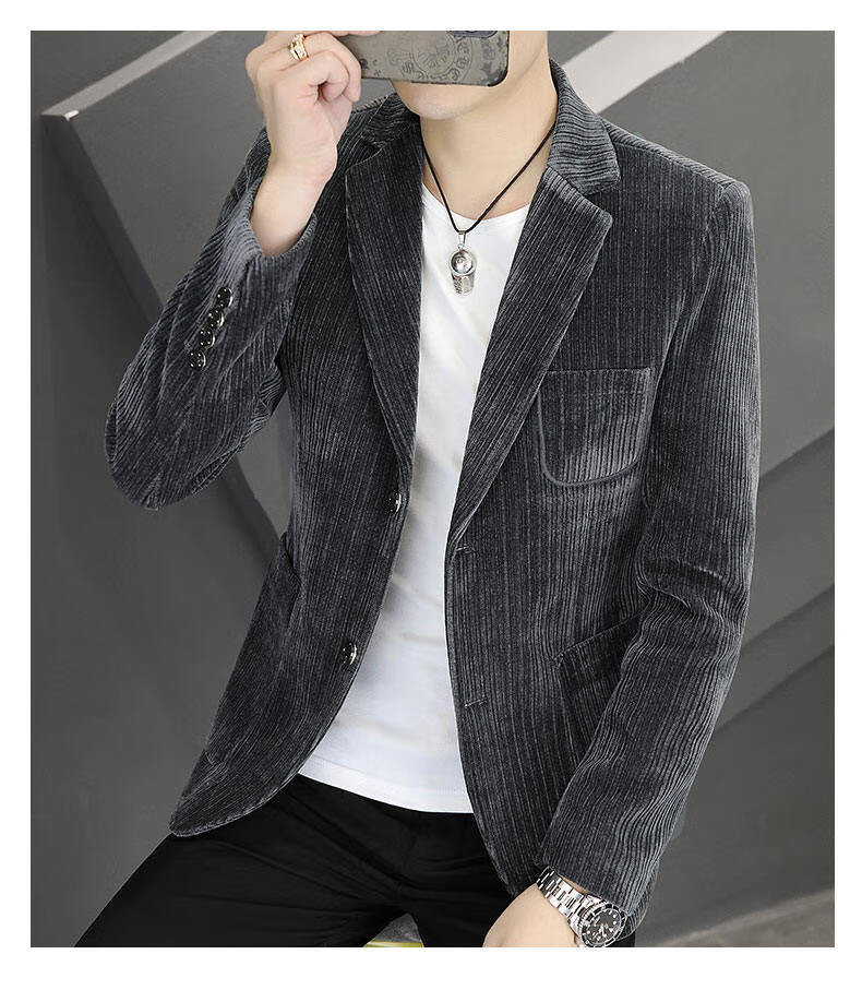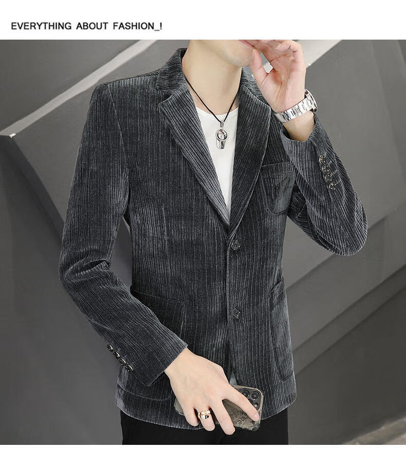 An Chuxia Spring and Autumn Men's Suit Jacket Korean Style Slim Corduroy Suit Men's Trendy Handsome Casual Single Suit Top Gray XL